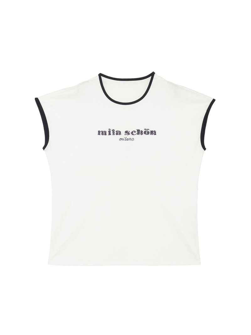 ビーズ使いロゴ七分袖Tシャツ