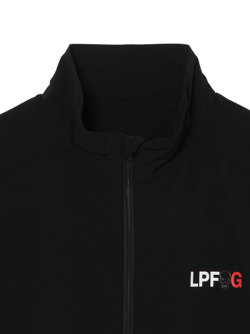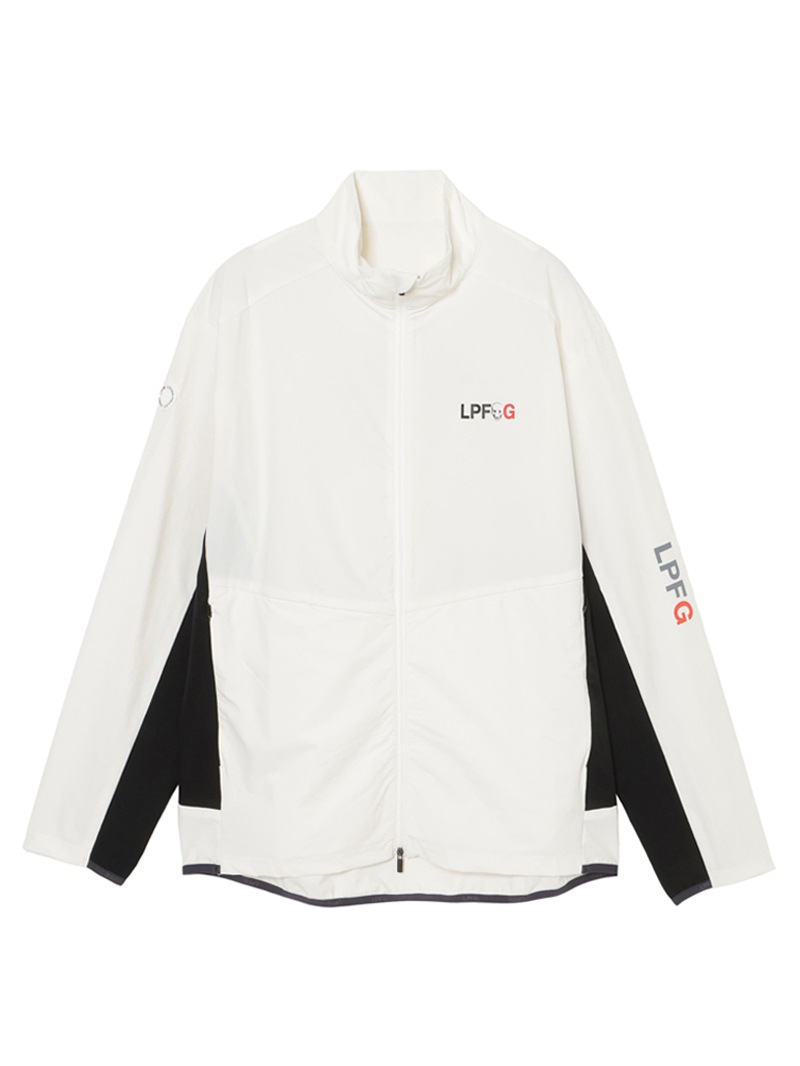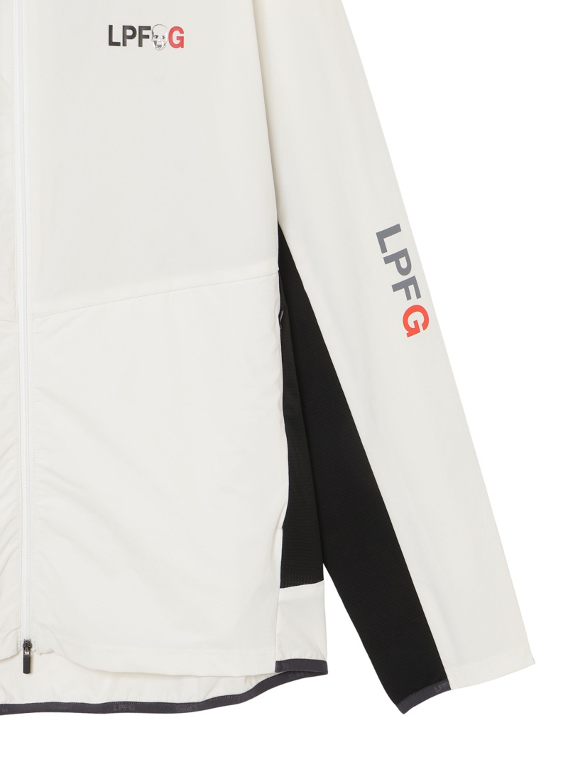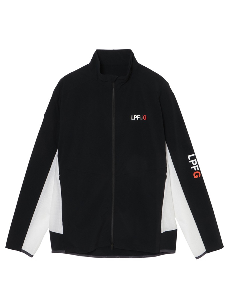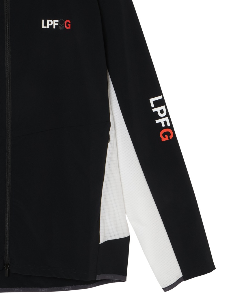 LPFGのメンズジップジャケット。滑らかな肌触りと高いストレッチ性を併せ持つアクティブな素材で、快適な着心地。LPFGロゴを反転させて、背中にデザイン。70デニールのハイマルチナイロン糸にポリウレタンをブレンドした糸を使用し、キックバックに非常に優れた2WAYストレッチ性、ハリ感を備え、UVカット、接触冷感、防シワ、撥水と多機能を備えた素材。