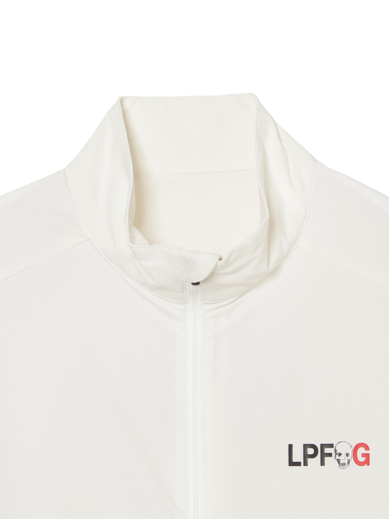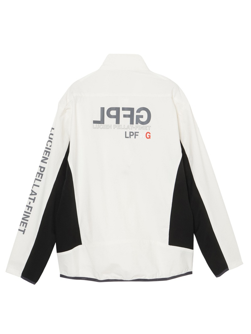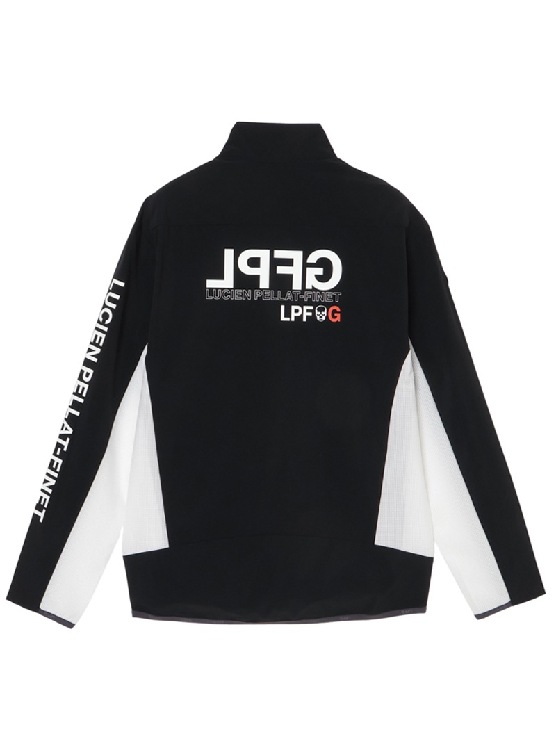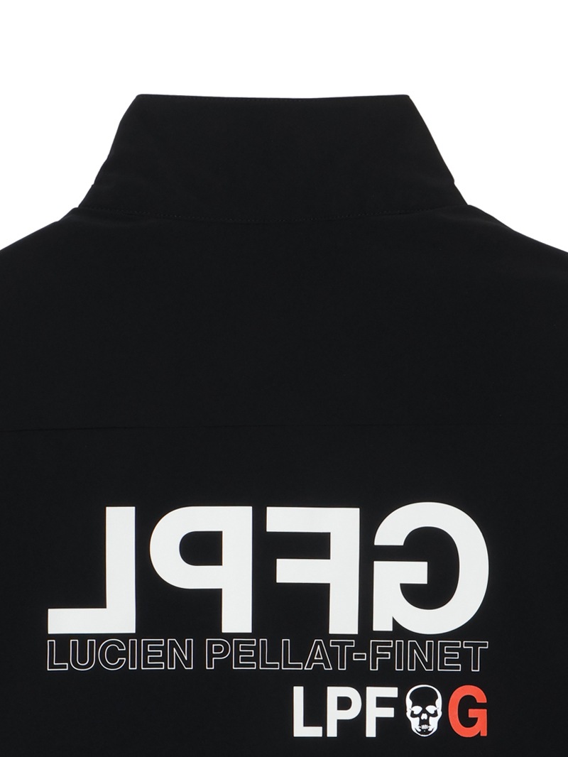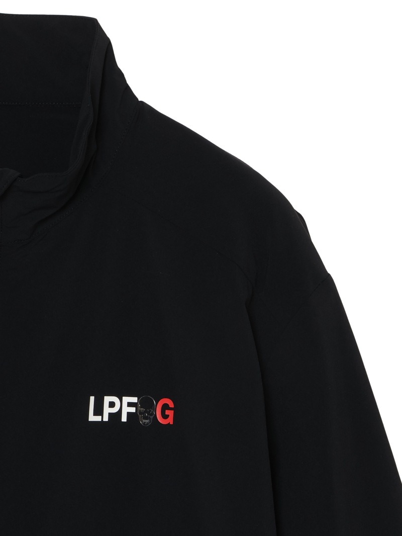 LPFGのメンズジップジャケット。滑らかな肌触りと高いストレッチ性を併せ持つアクティブな素材で、快適な着心地。LPFGロゴを反転させて、背中にデザイン。70デニールのハイマルチナイロン糸にポリウレタンをブレンドした糸を使用し、キックバックに非常に優れた2WAYストレッチ性、ハリ感を備え、UVカット、接触冷感、防シワ、撥水と多機能を備えた素材。