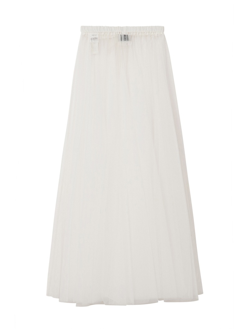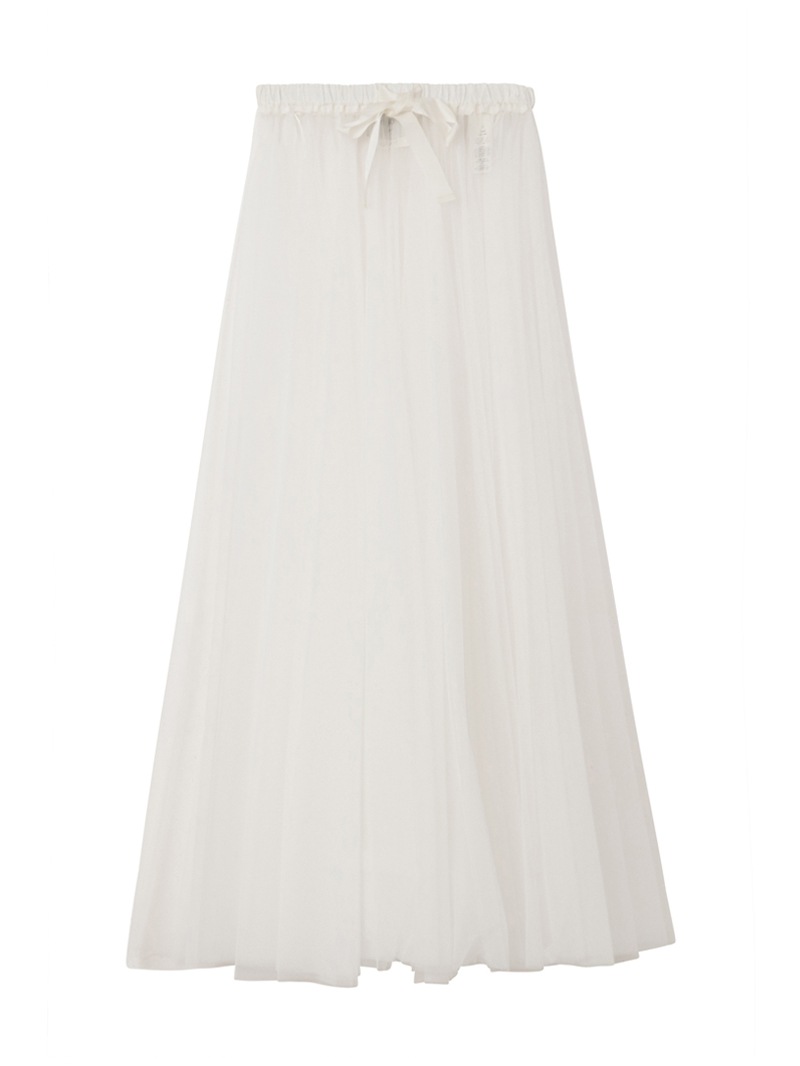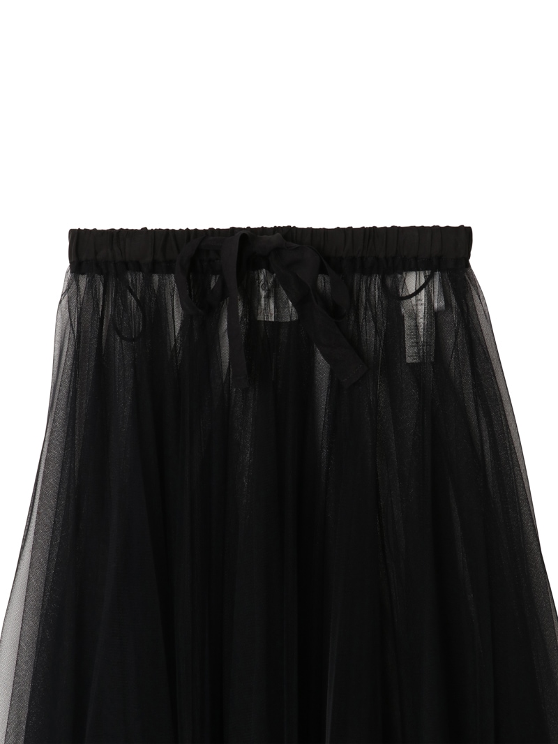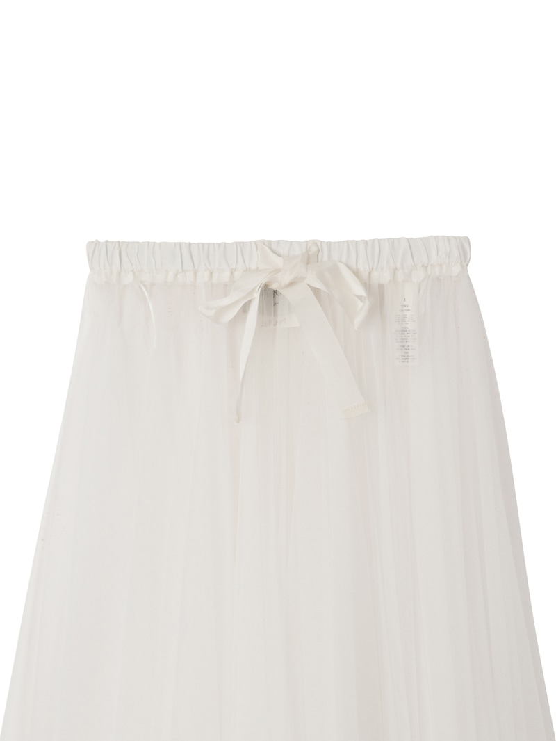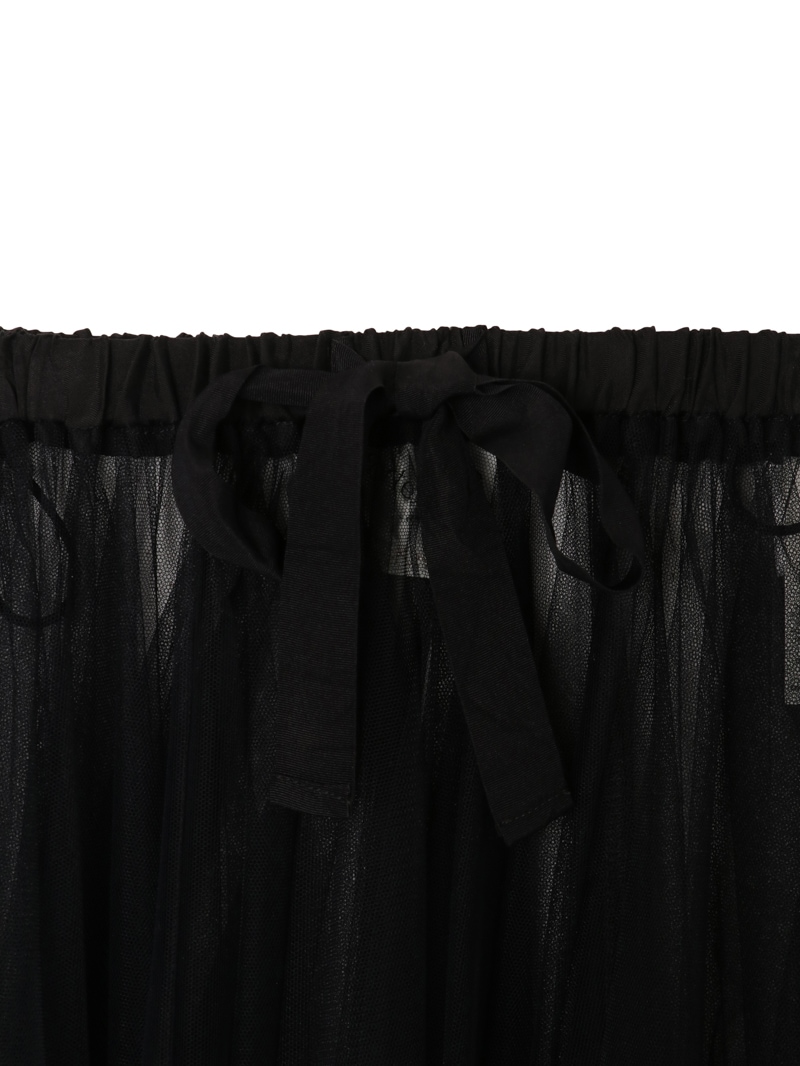 チュールスカートは、フェミニンスタイルにおける永遠の定番アイテム。ウエストは太めリボンのドローストリング仕様です。インナーにハイライズショーツがセットされています。