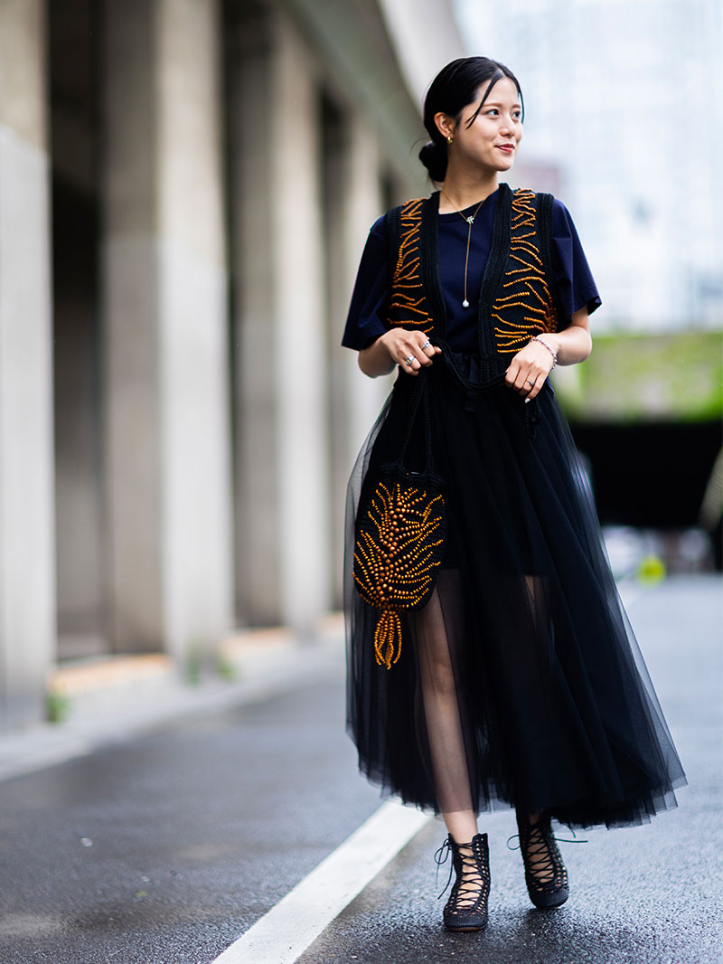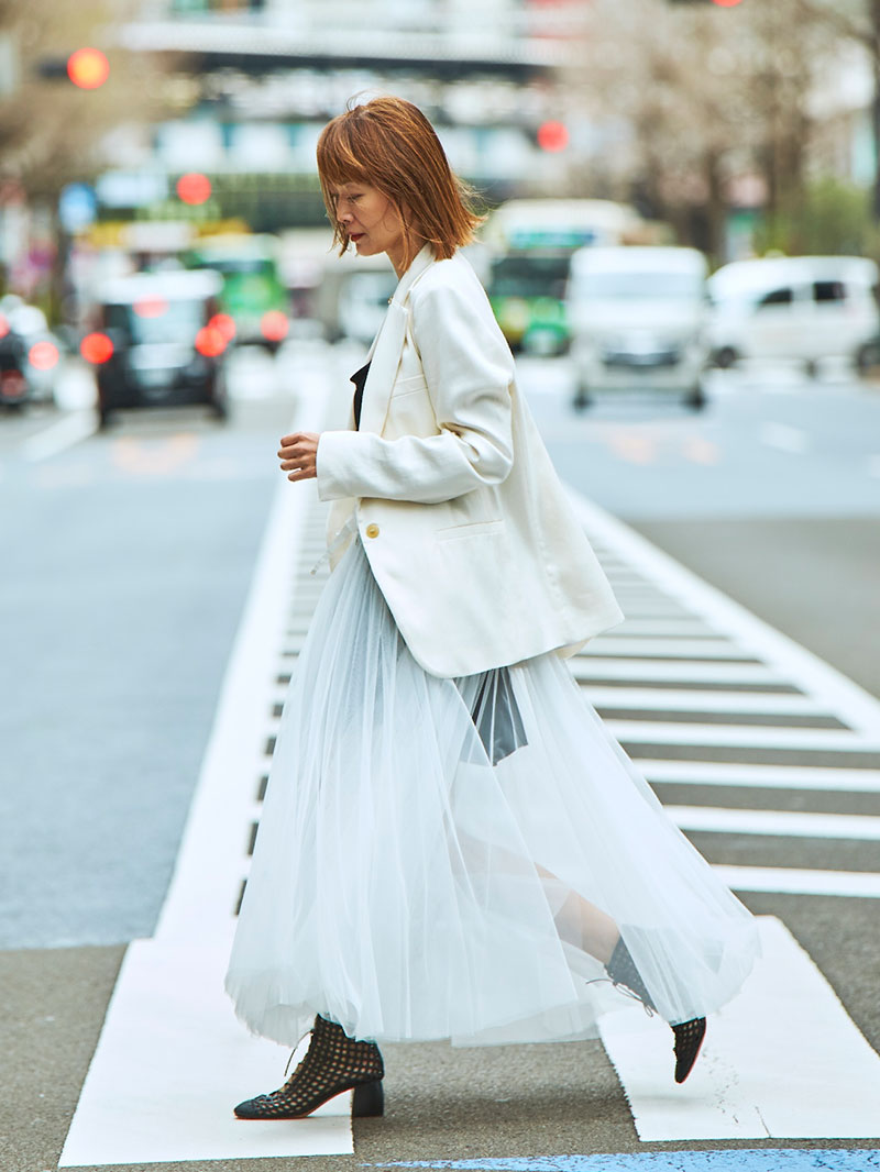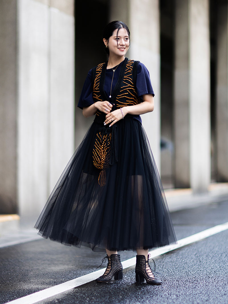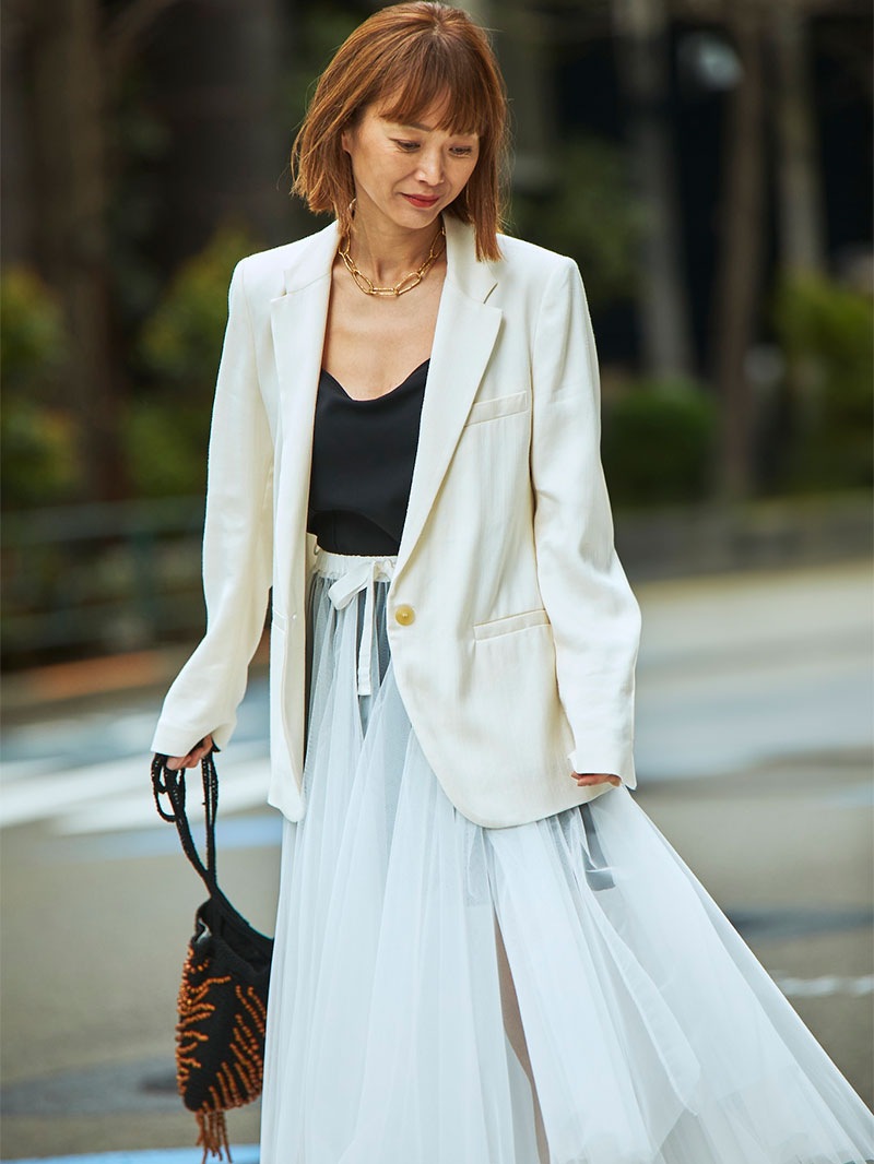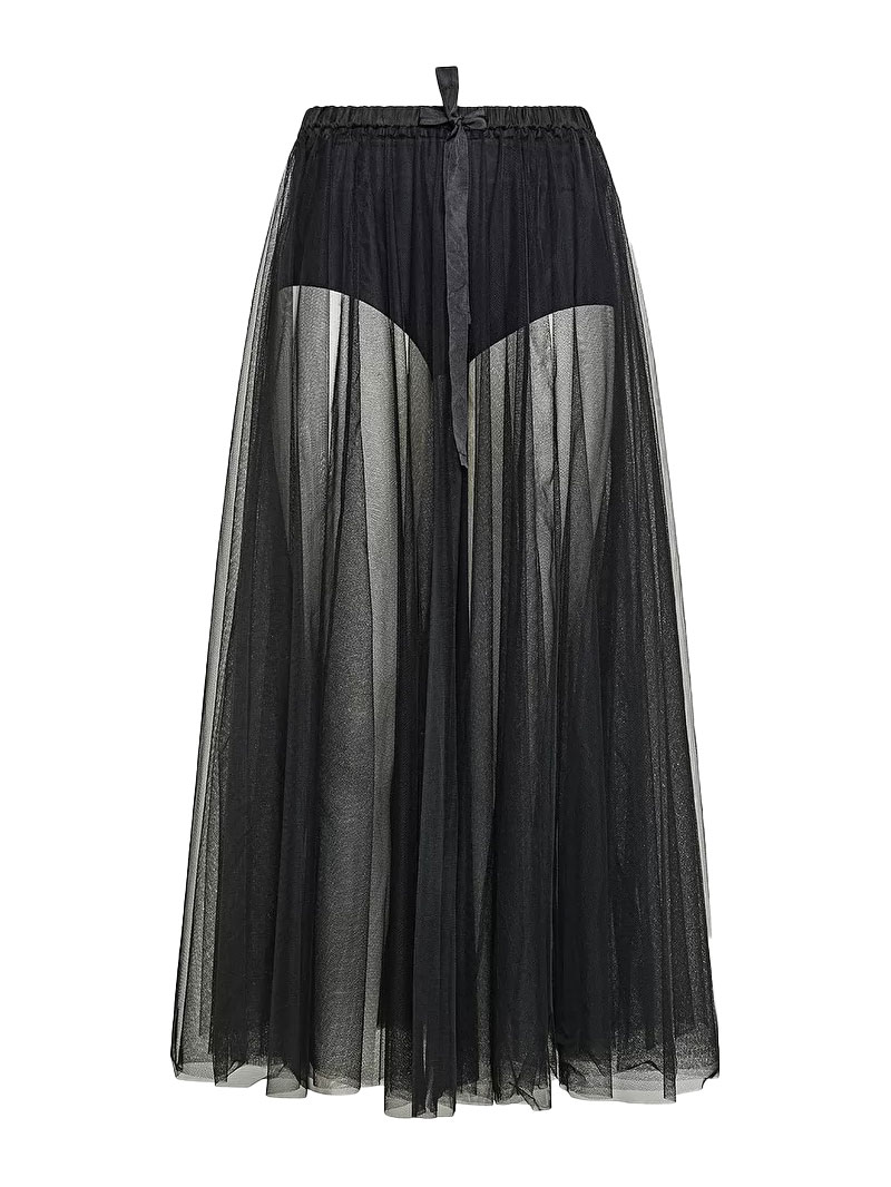 チュールスカートは、フェミニンスタイルにおける永遠の定番アイテム。ウエストは太めリボンのドローストリング仕様です。インナーにハイライズショーツがセットされています。
