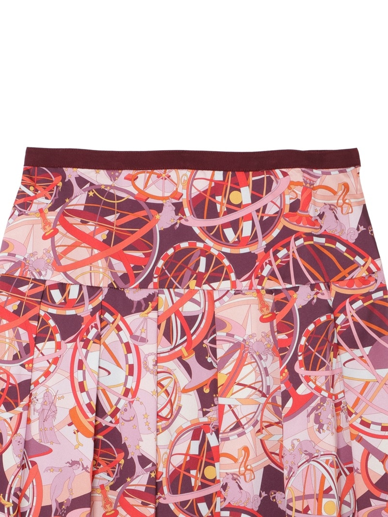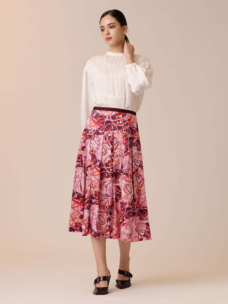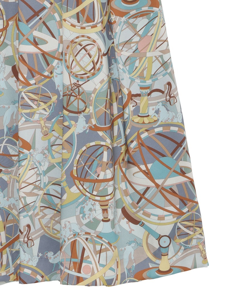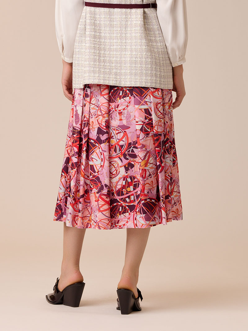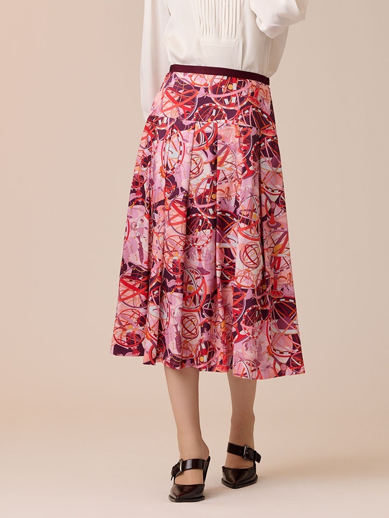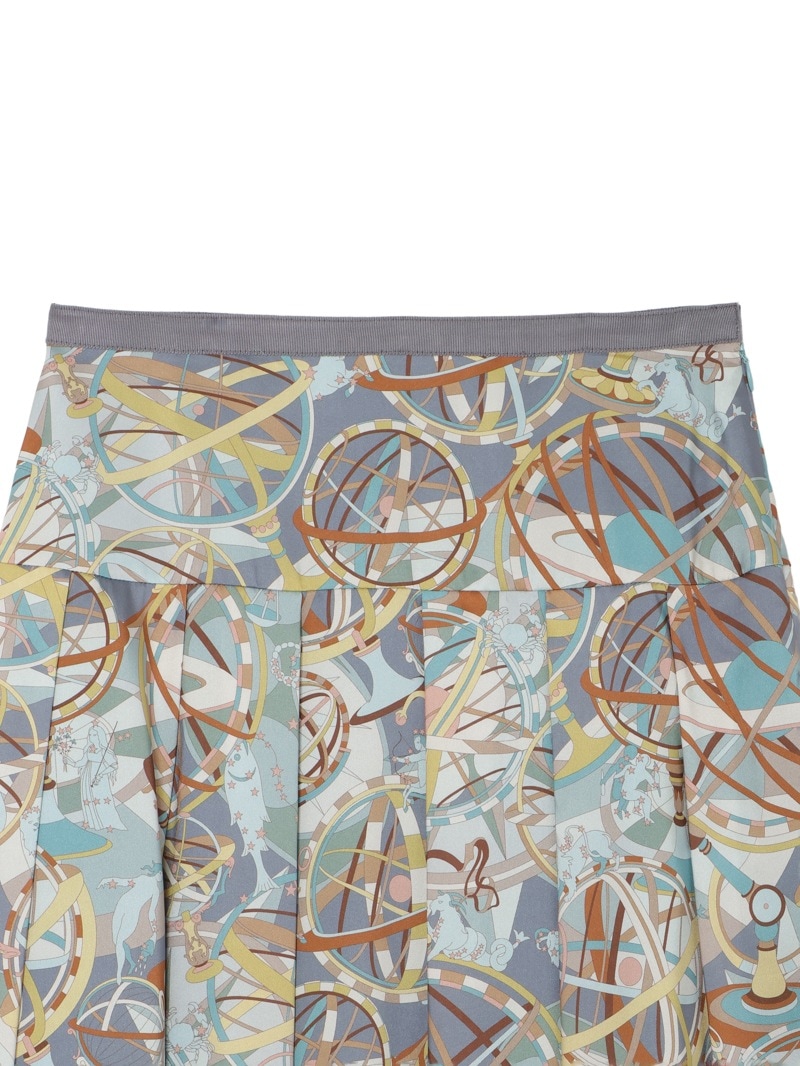 光沢感のあるツイル素材に、精緻な柄行のRATTI社の星座プリントで表現したタックスカート。RATTI社は1945年にアントニオ・ラッティにより設立され、芸術的なプリント柄が世界中のメゾンから評価されているイタリアの高級プリントメーカーです。