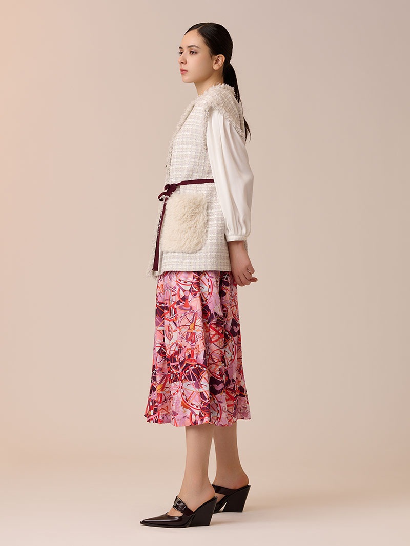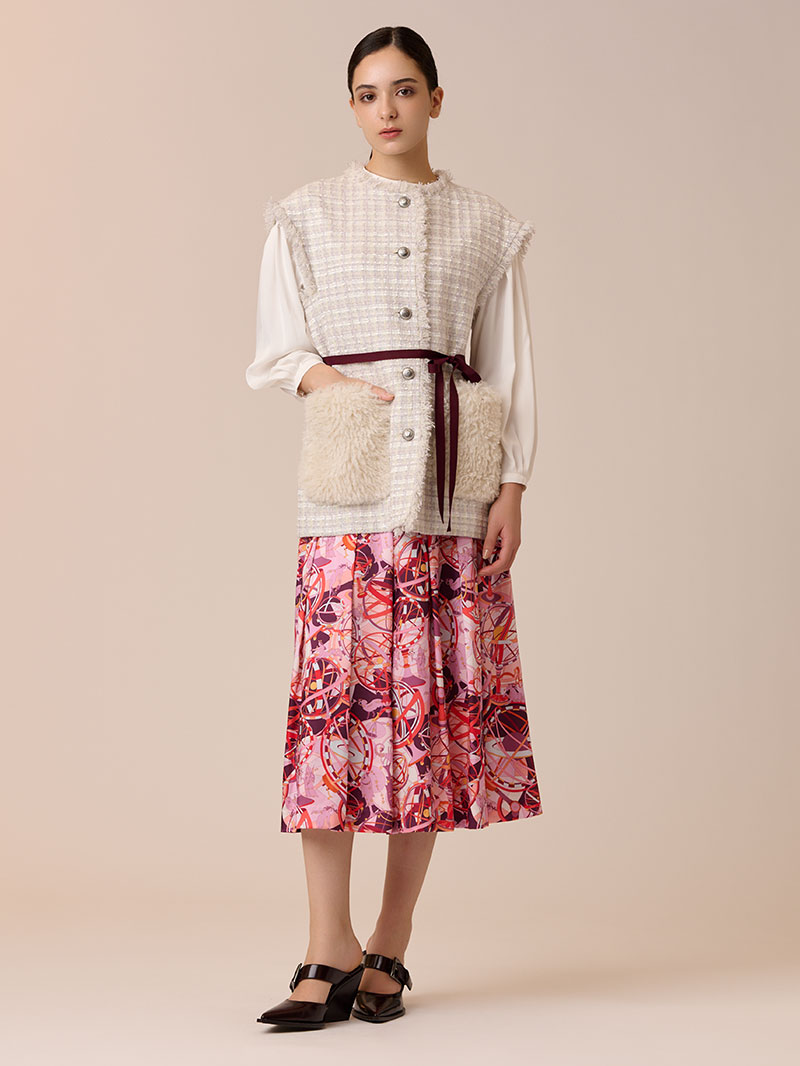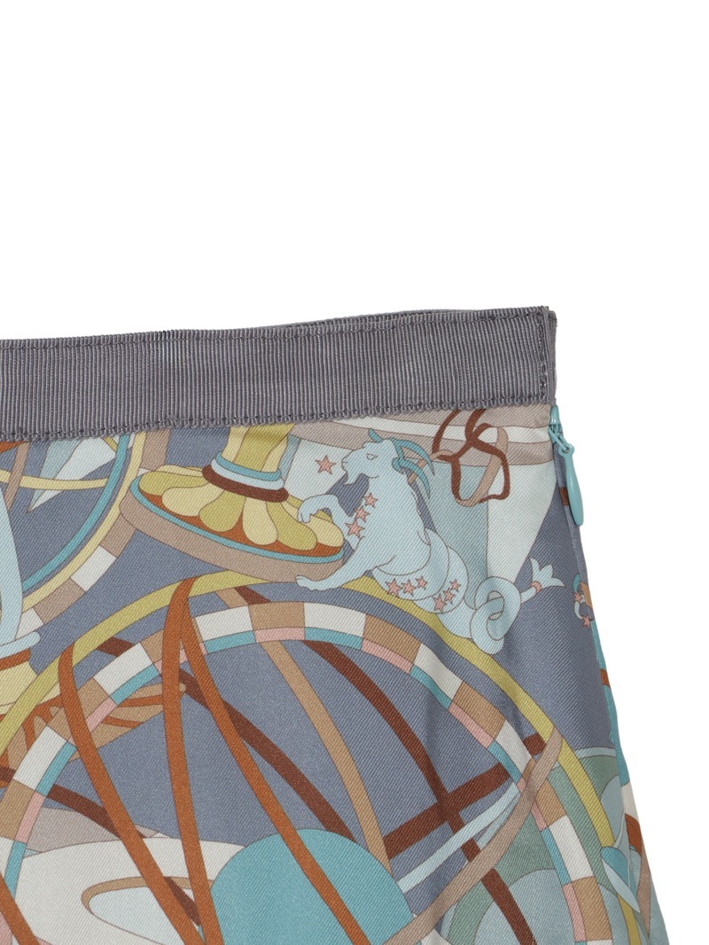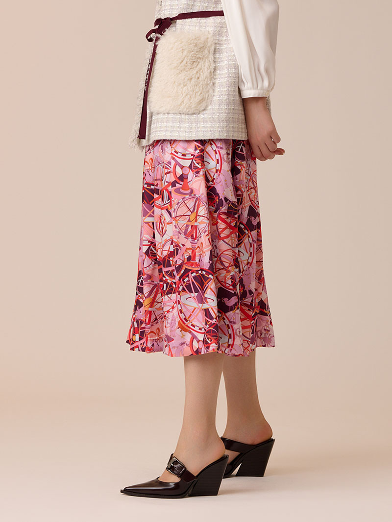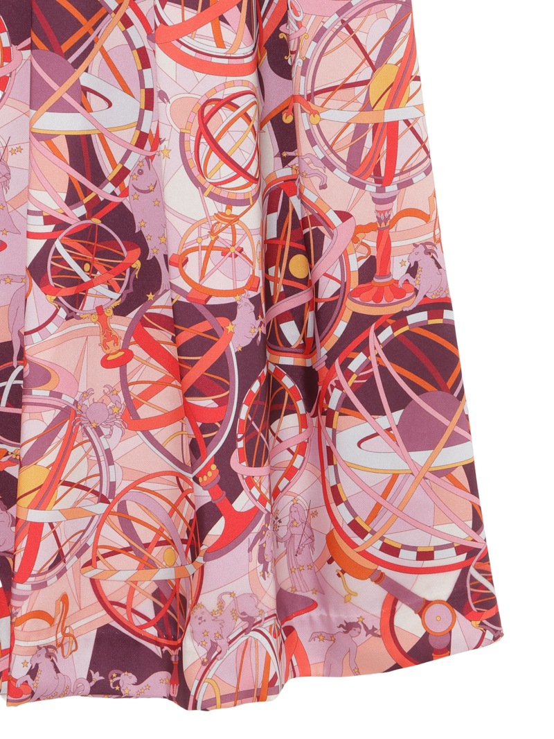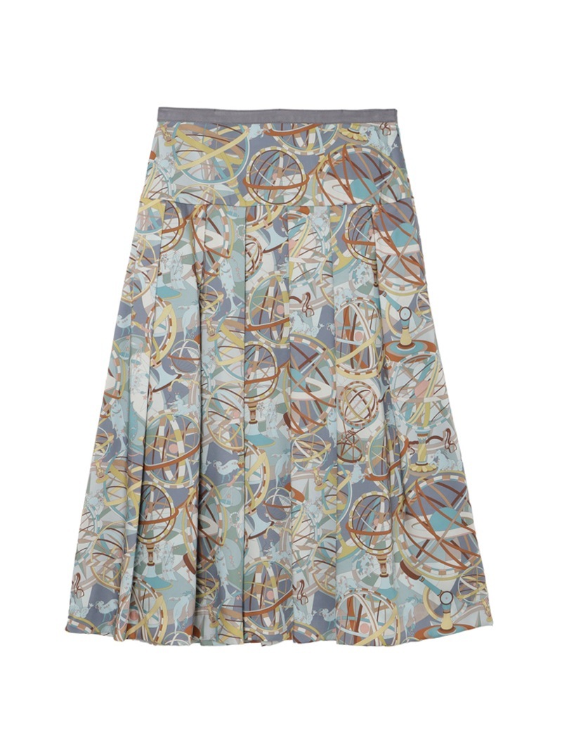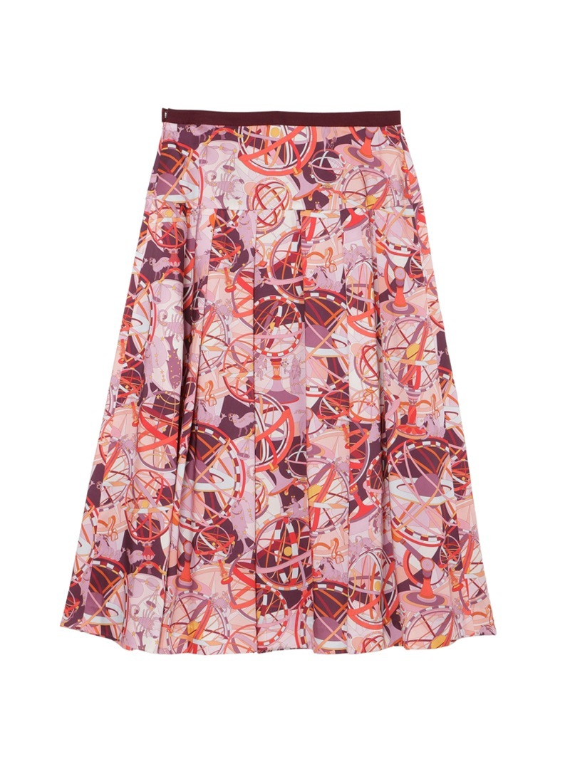 光沢感のあるツイル素材に、精緻な柄行のRATTI社の星座プリントで表現したタックスカート。RATTI社は1945年にアントニオ・ラッティにより設立され、芸術的なプリント柄が世界中のメゾンから評価されているイタリアの高級プリントメーカーです。