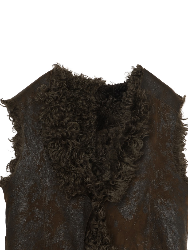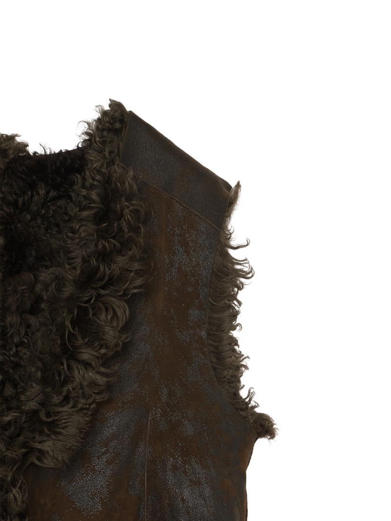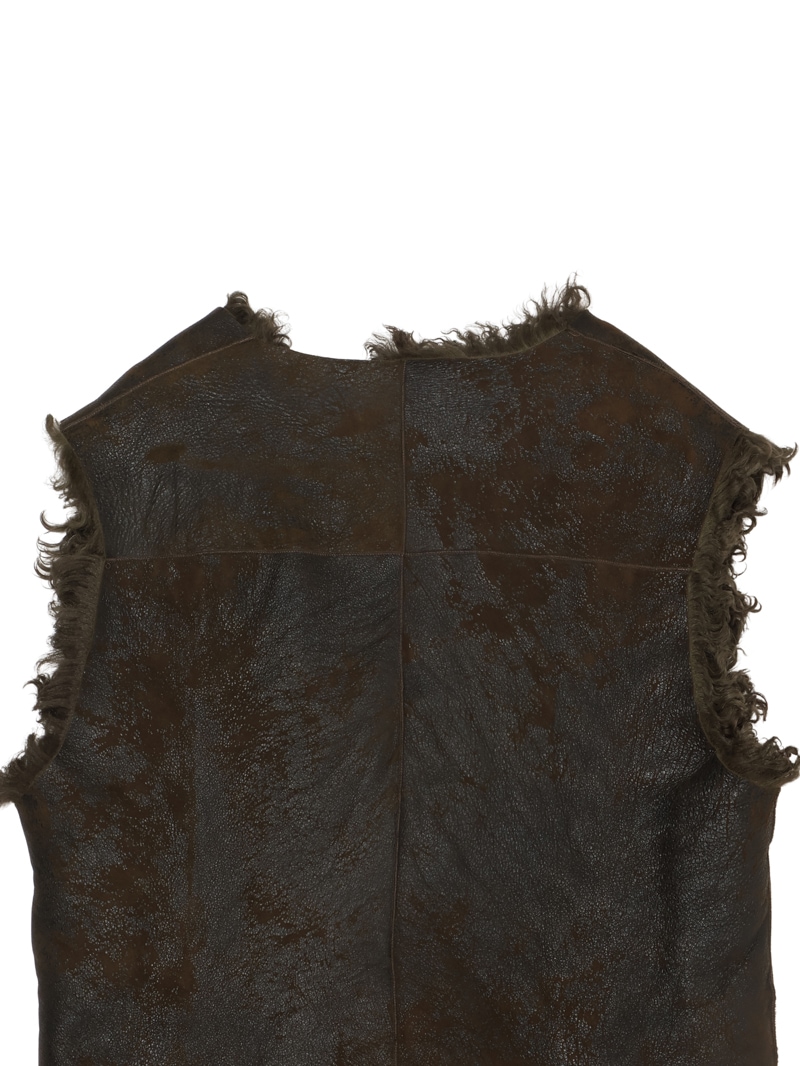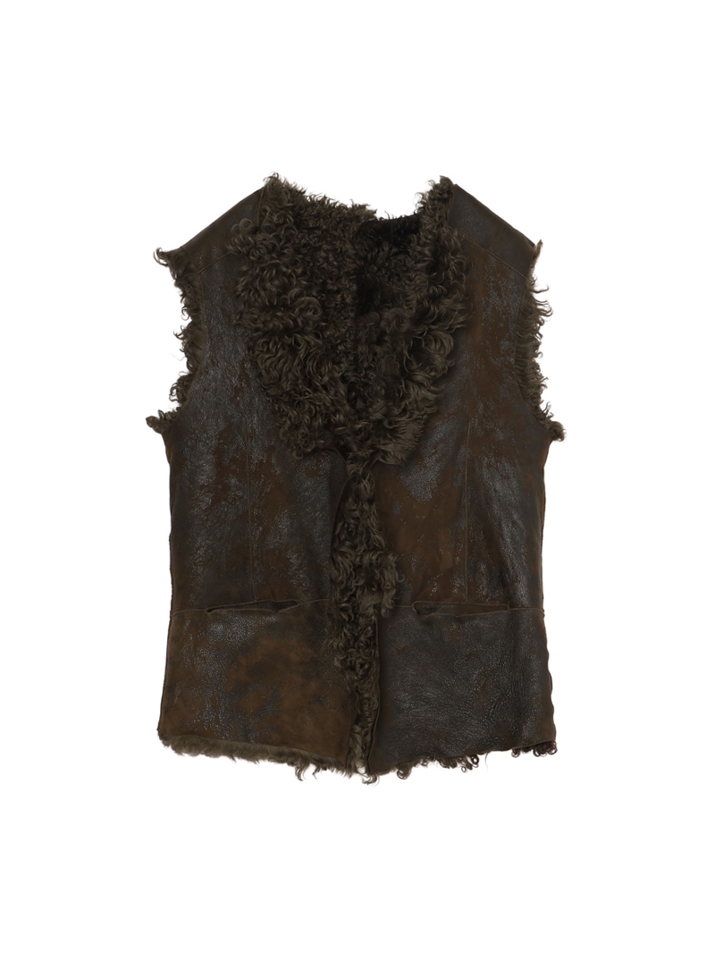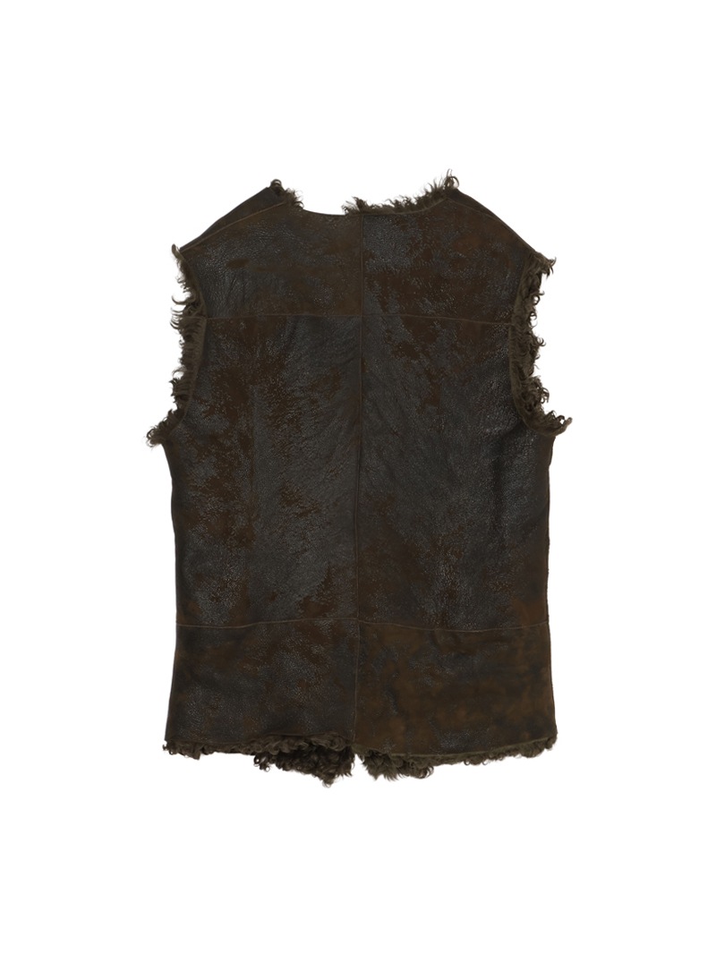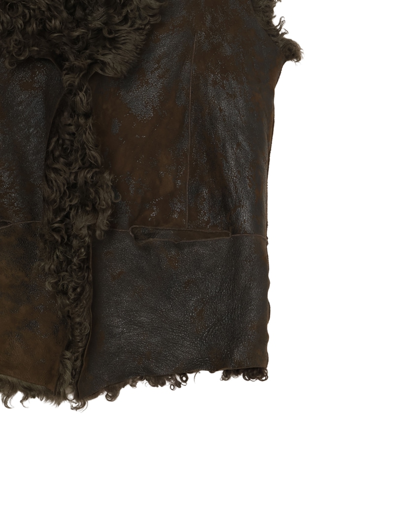 ラムレザー100%のムートンベストで、丈も長くリバーシブルで着ることができます。レザーもヴィンテージ風に加工されています。