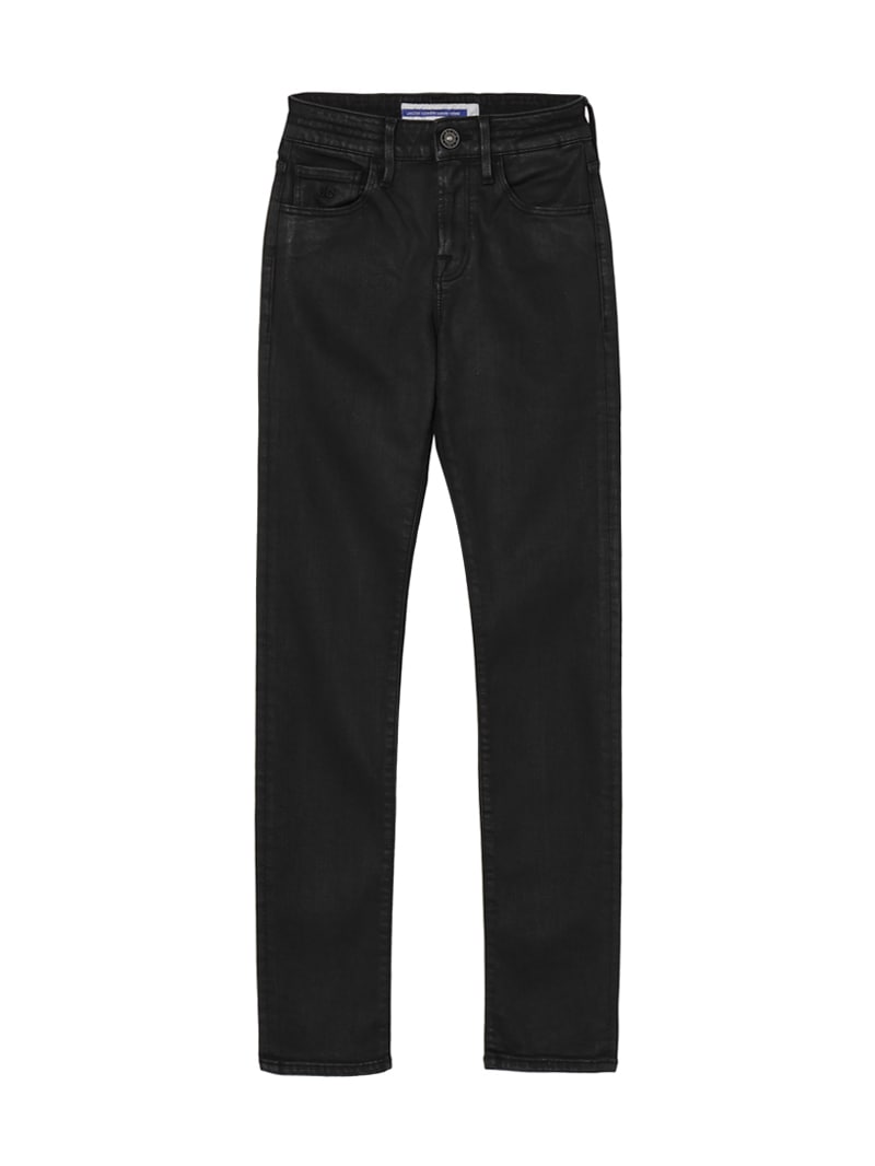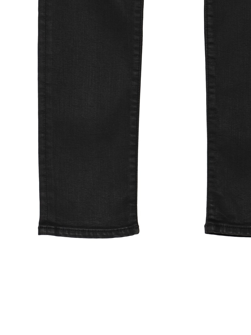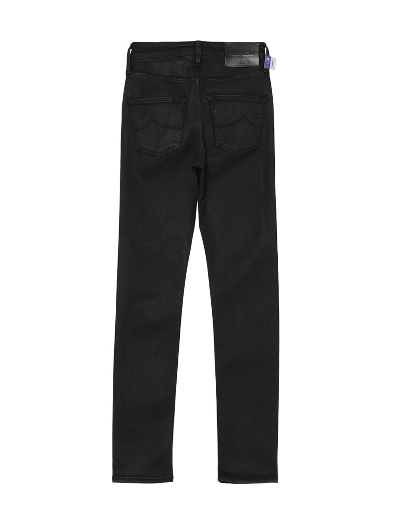 ウィメンズラインを代表する、レギュラーウエストのスキニーフィットモデル「KIMBERLY」。10ozのパワーストレッチブラックデニムにレザーエフェクトコーティングが施された、ツヤ感のある1本。