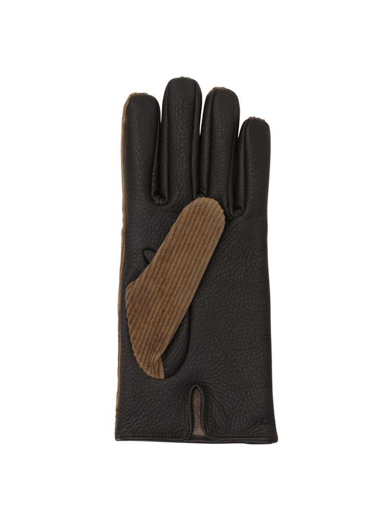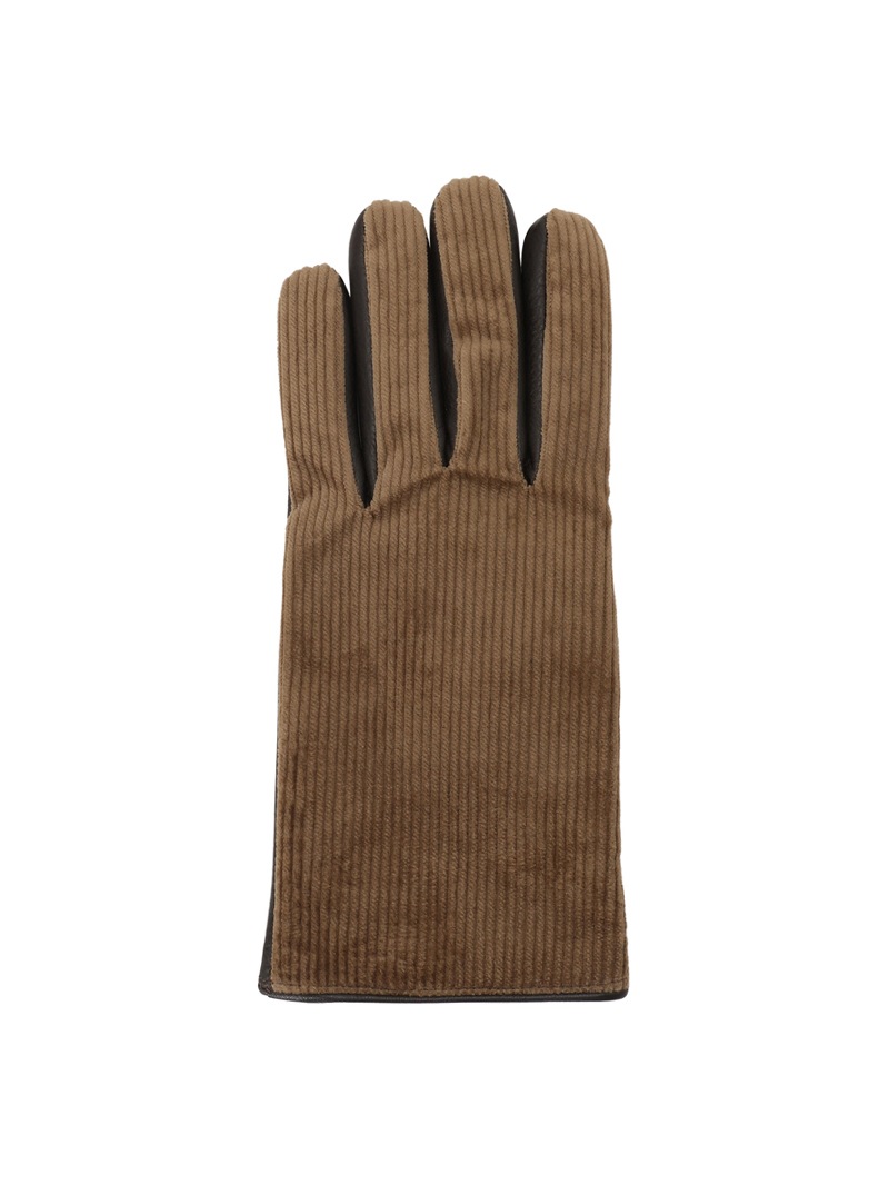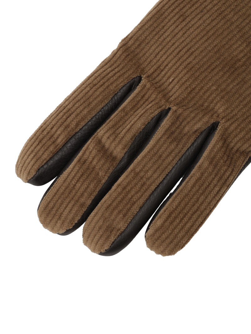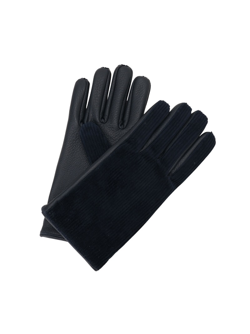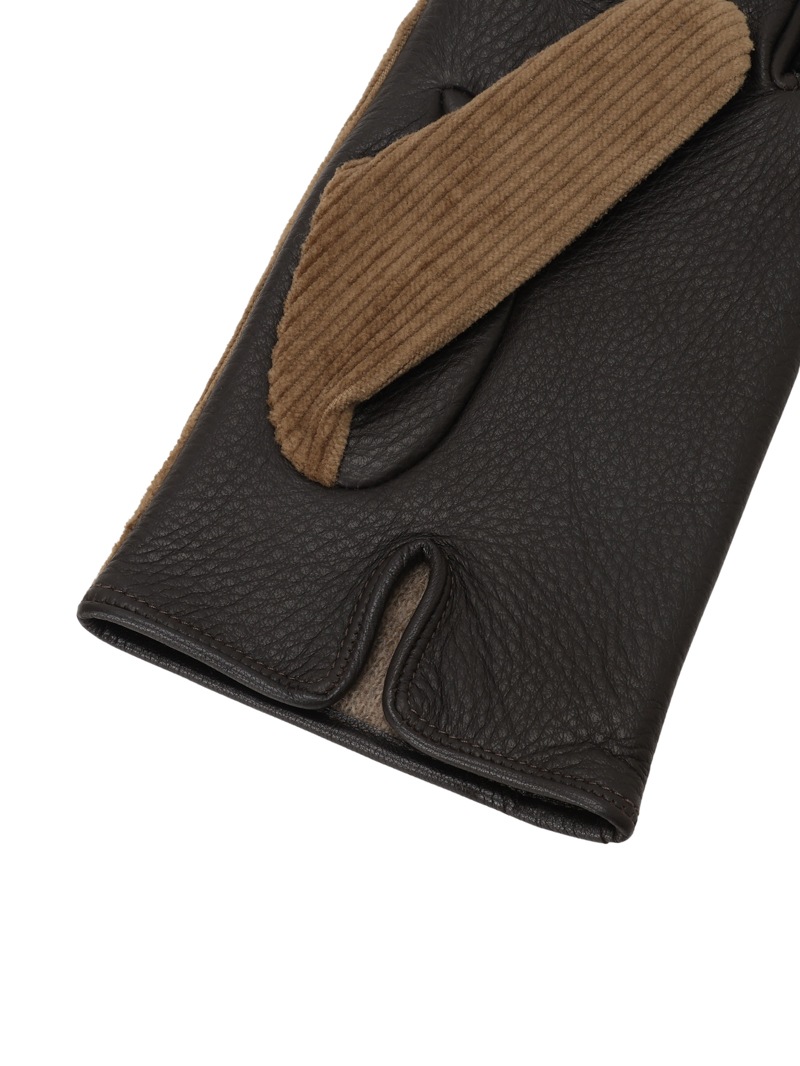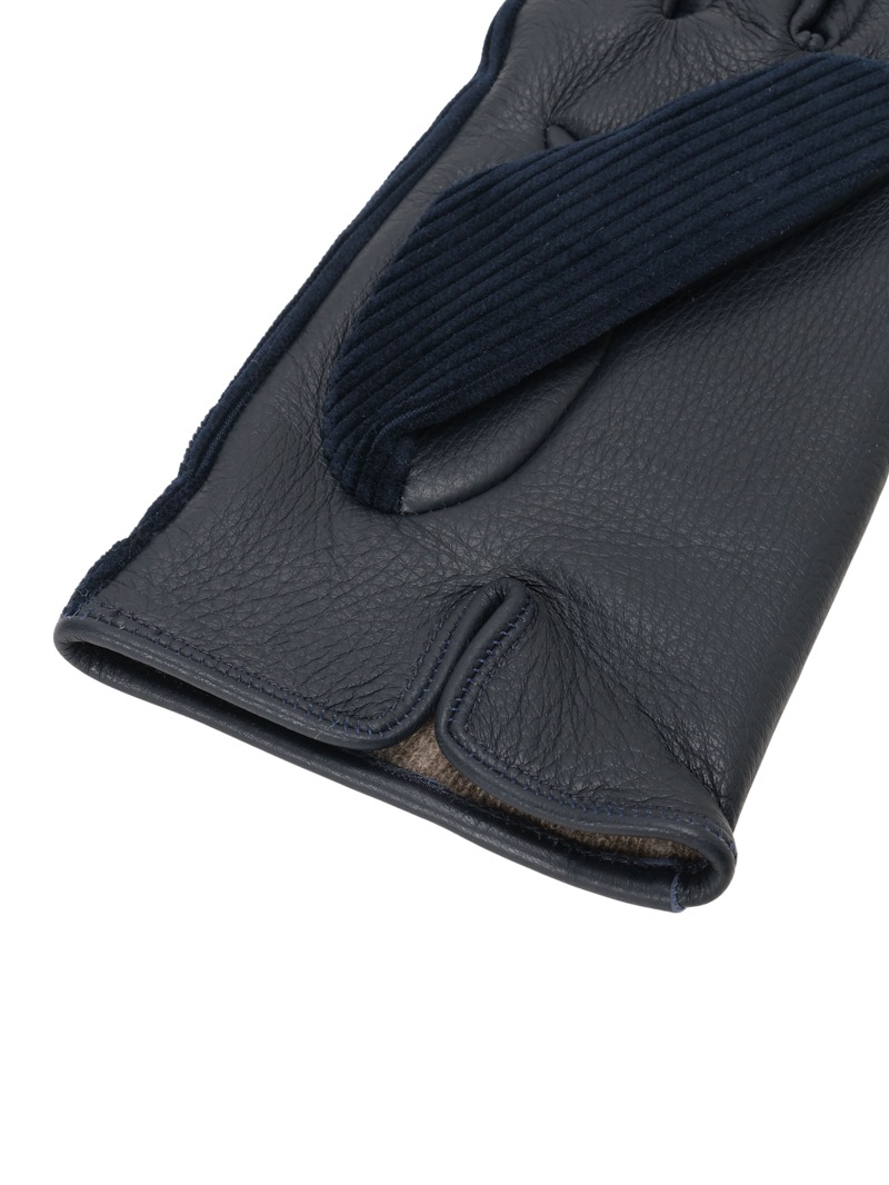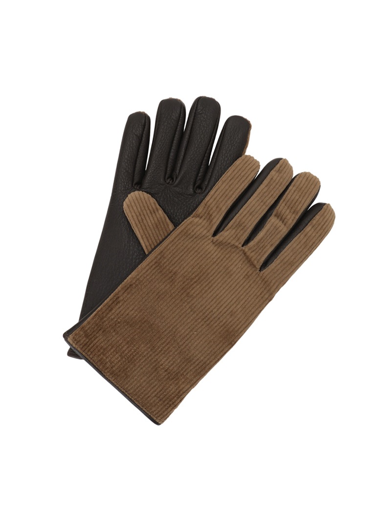 Apres skiコレクションシリーズのドッキンググローブ。表素材は鹿革とコーデュロイ、カシミヤのライニングを組み合わせています。