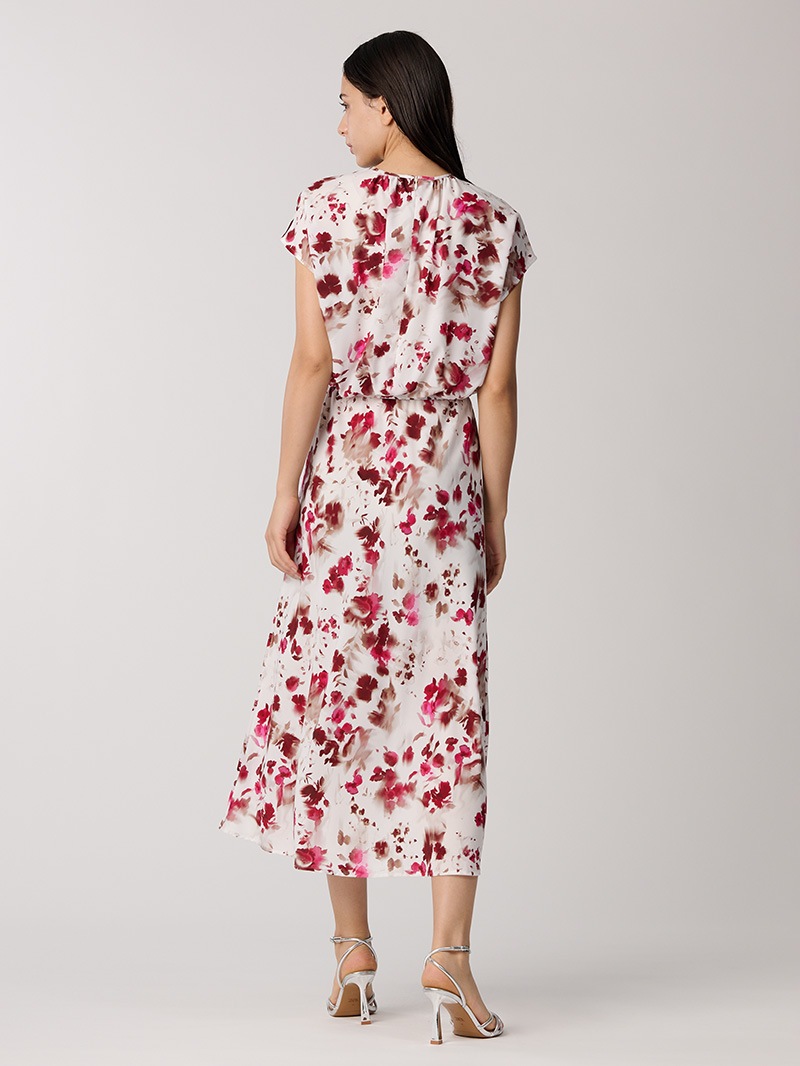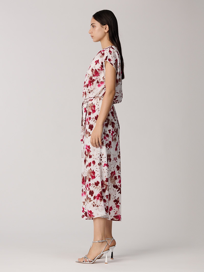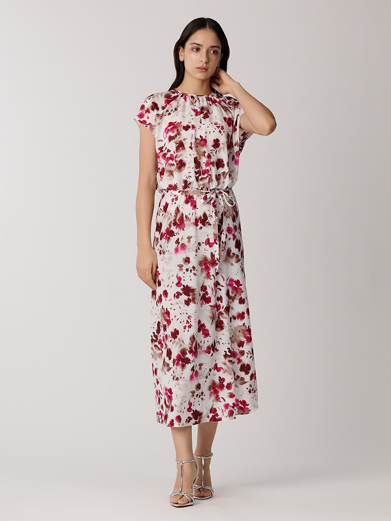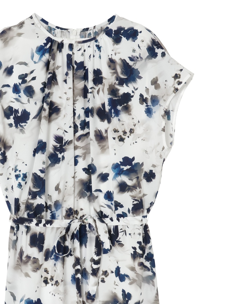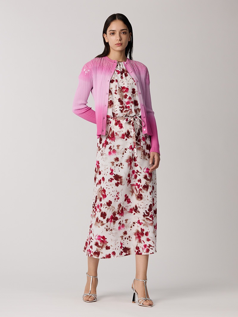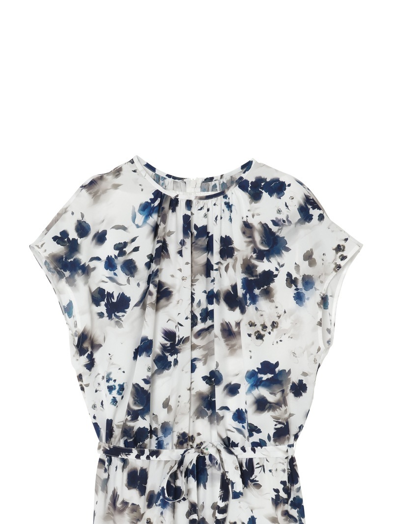 イタリアのプリントメーカー「ERICA(エリカ)」社で図案から作成したオリジナルプリントを施したワンピース。おぼろげなフラワー柄は今期のトレンドです。同柄のカーディガンと合わせれば、上品なアンサンブルスタイルが完成します。