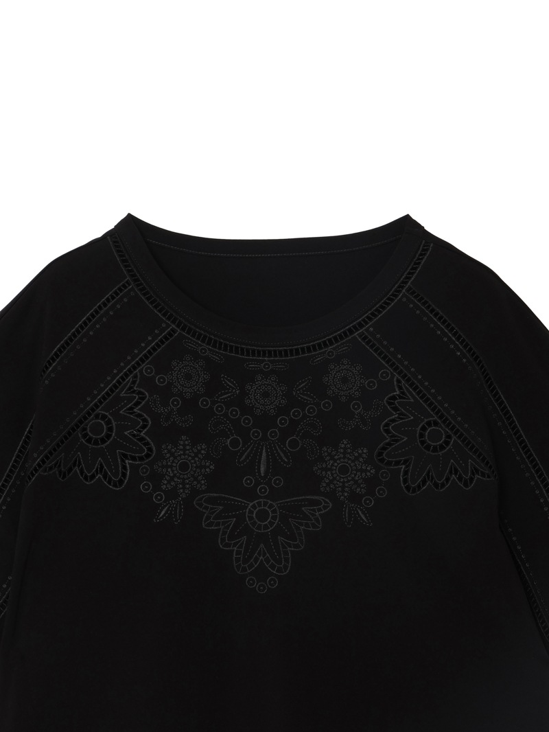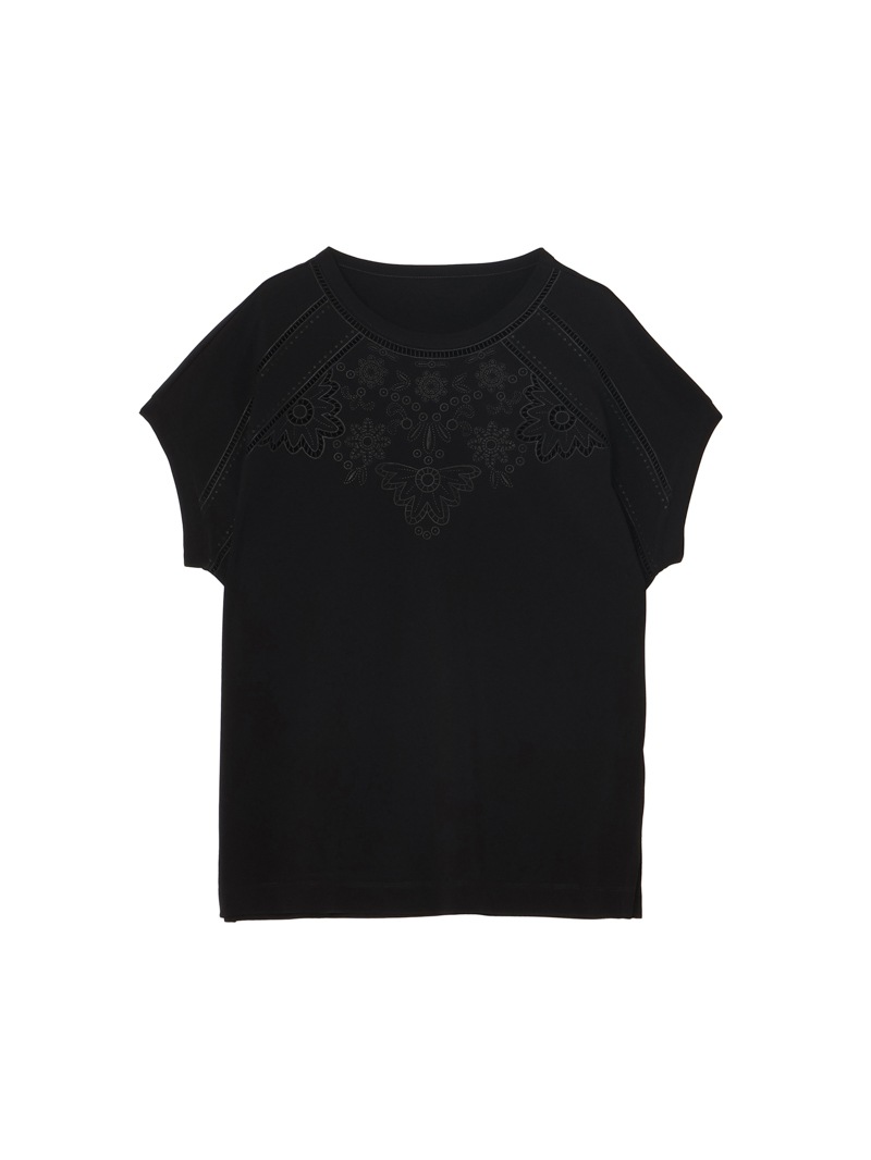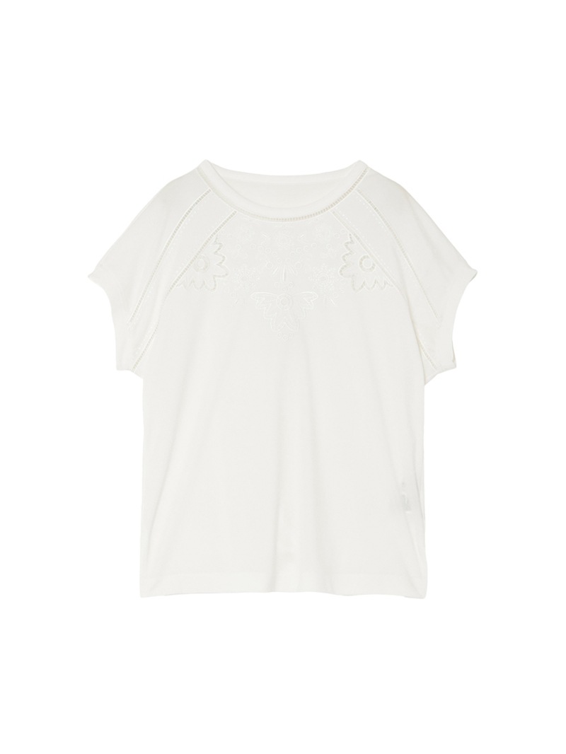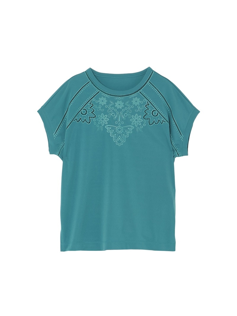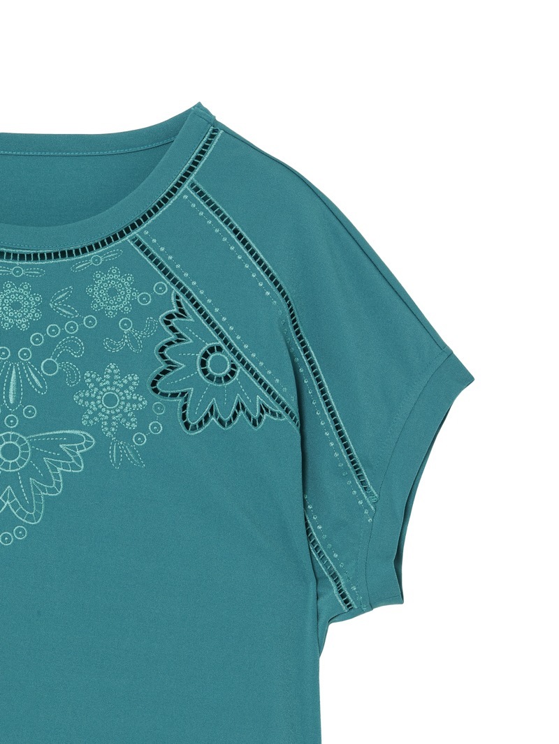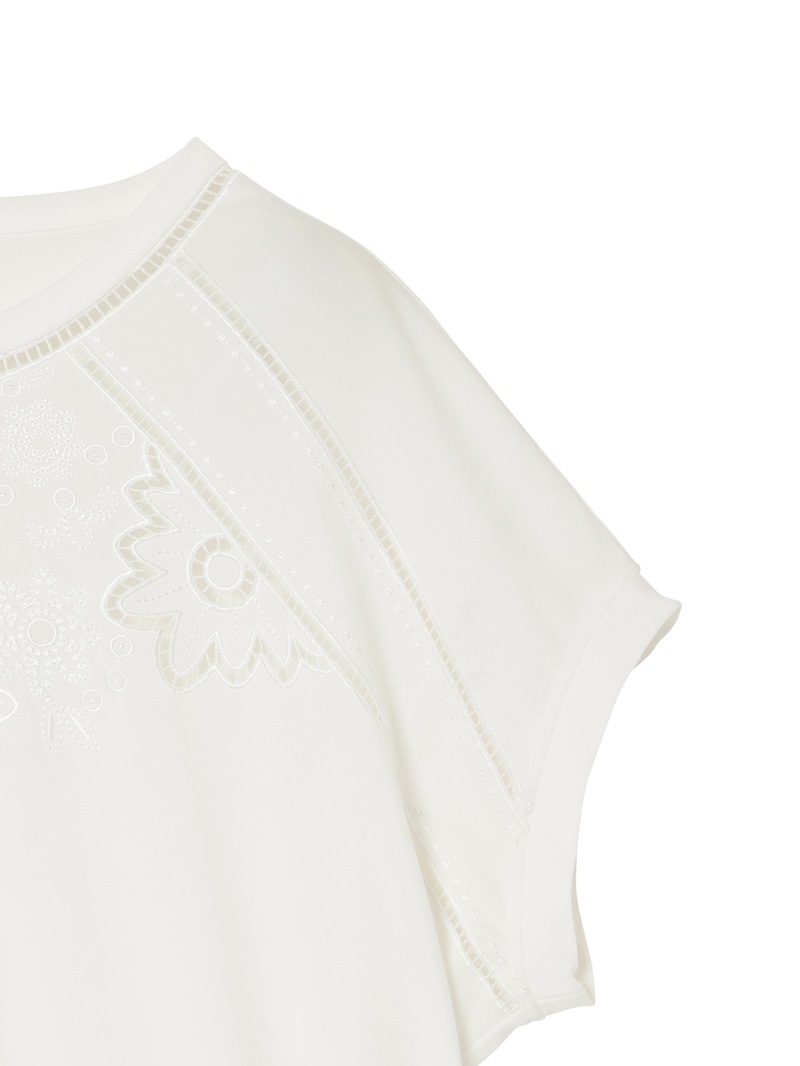トリアセテートを使用し、さらっとした肌触りに仕上げた素材のカットソー。キックバックが良く、適度な反発感と美しいドレープ性があります。滑らかな風合いと清涼感、胸元の刺繍がポイントです。