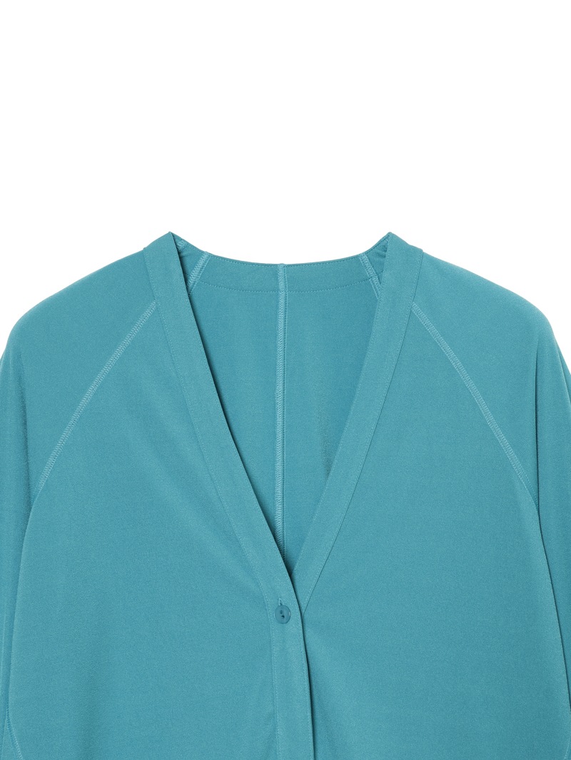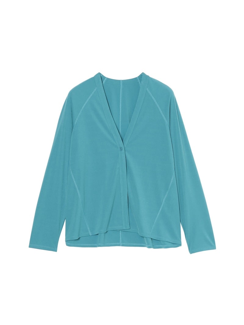トリアセテートを使用し、さらっとした肌触りに仕上げた素材のカーディガン。キックバックが良く、適度な反発感と美しいドレープ性があります。滑らかな風合いと清涼感が特長です。