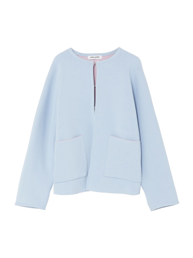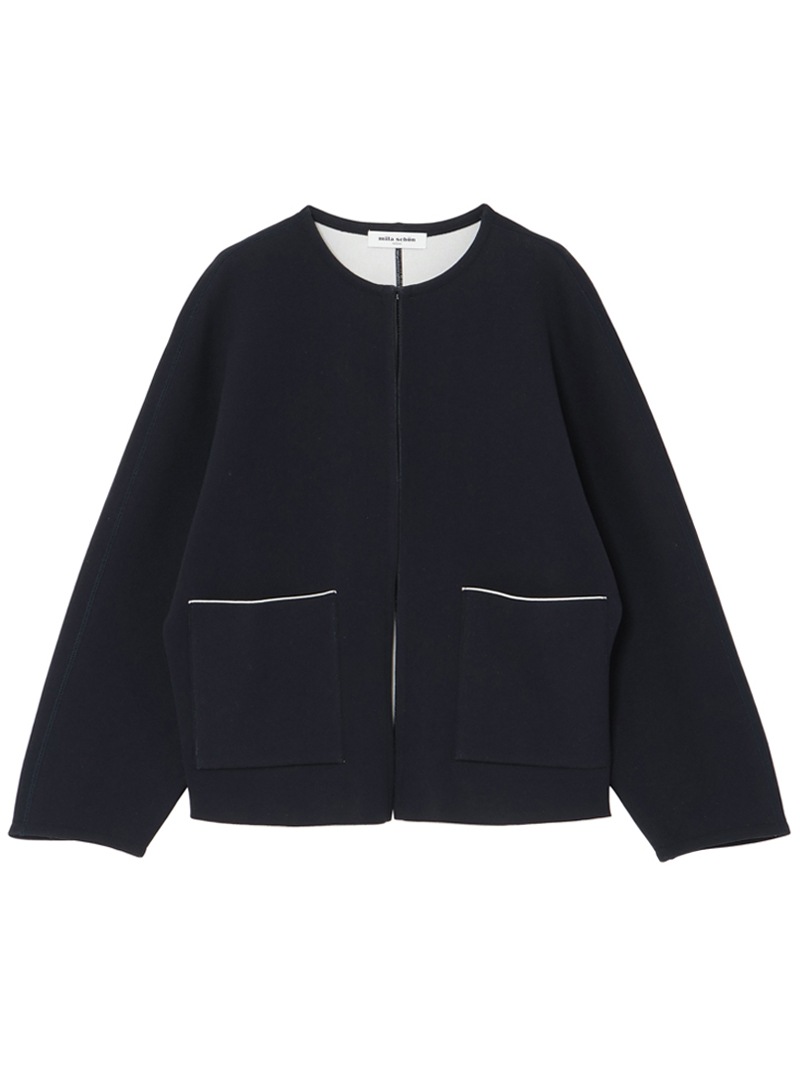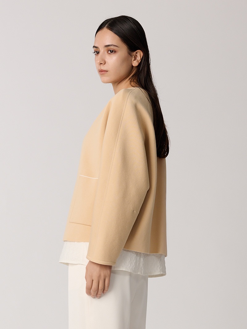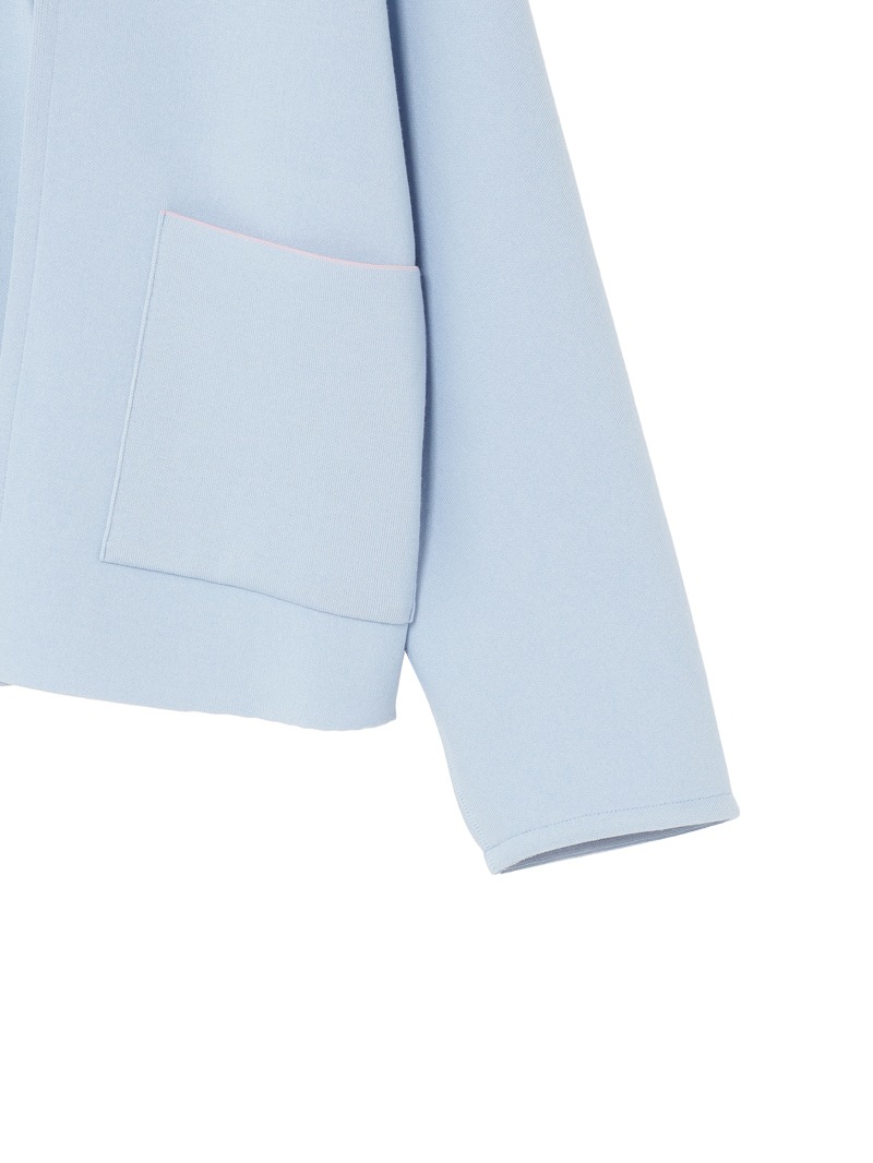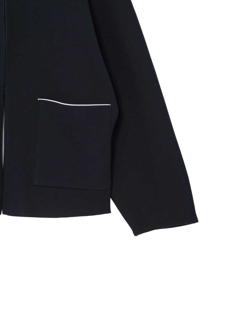 裏表で異なる二種類の糸を使用したダブルフェイスのニットジャケット。程よい膨らみ感で立体的なシルエットを表現しています。ハイゲージで非常に軽く、ストレスフリーな着心地の一枚。