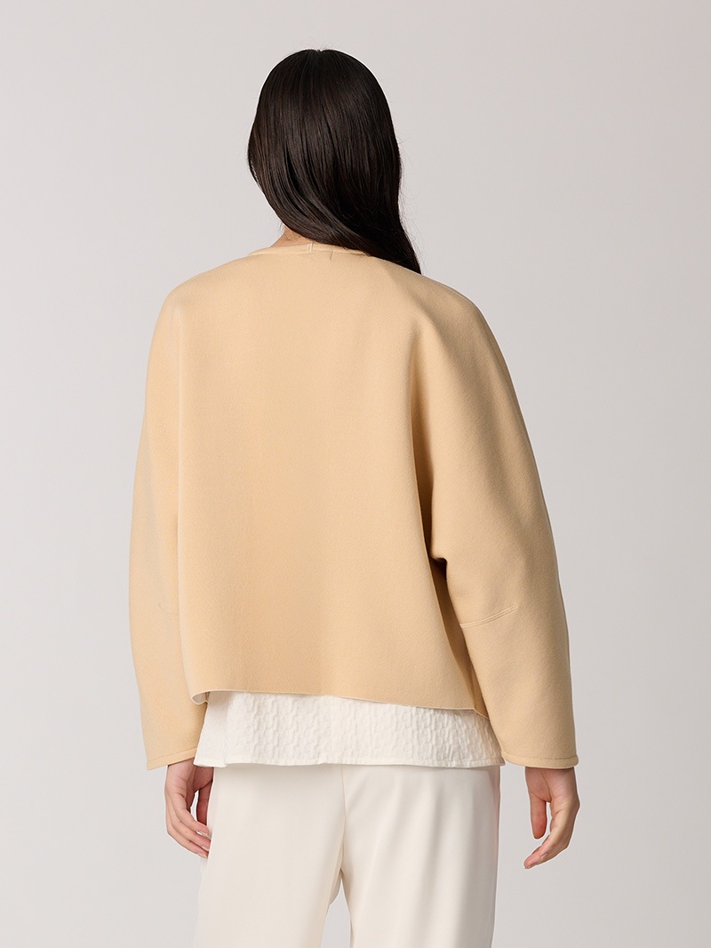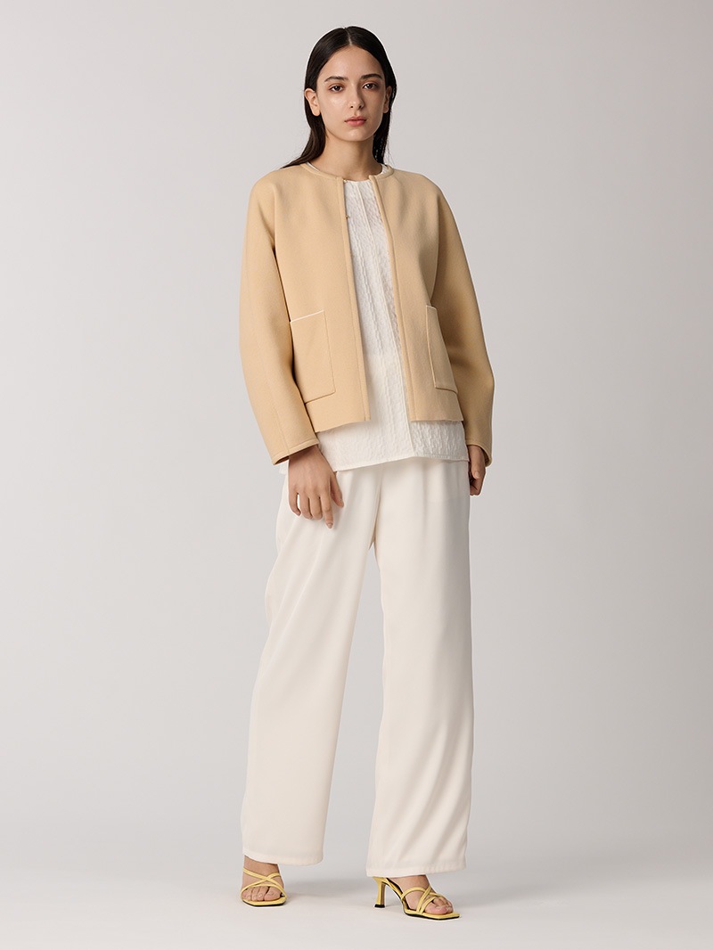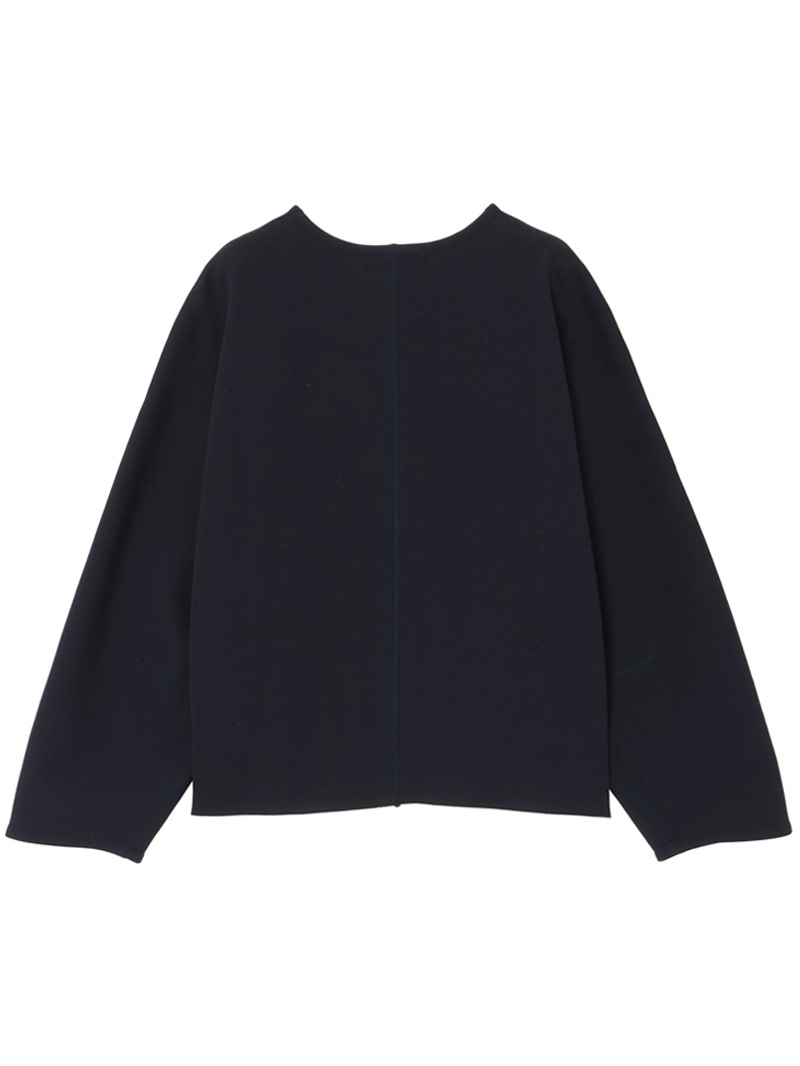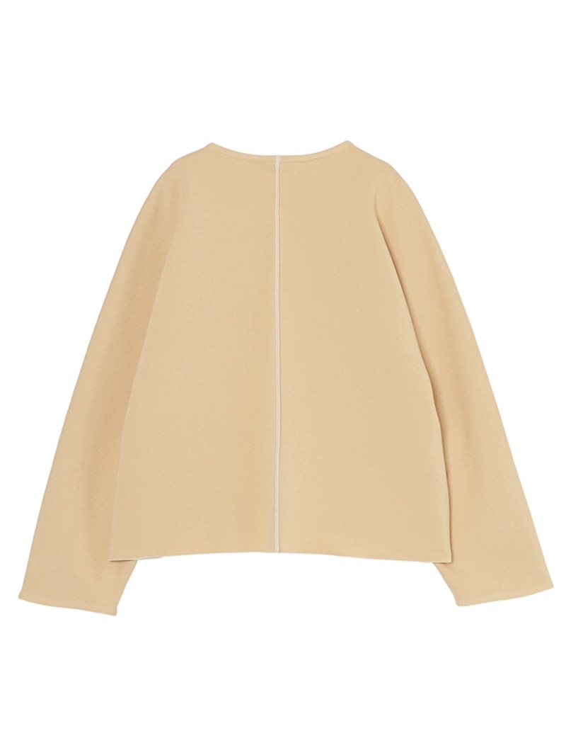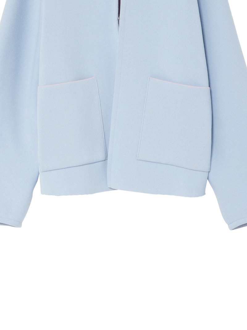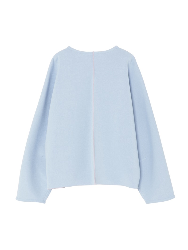 裏表で異なる二種類の糸を使用したダブルフェイスのニットジャケット。程よい膨らみ感で立体的なシルエットを表現しています。ハイゲージで非常に軽く、ストレスフリーな着心地の一枚。