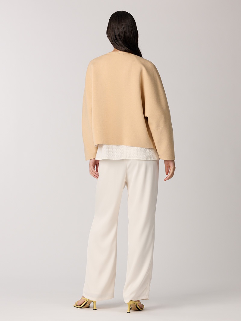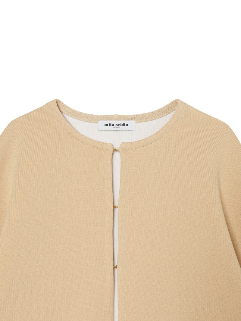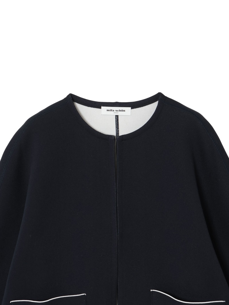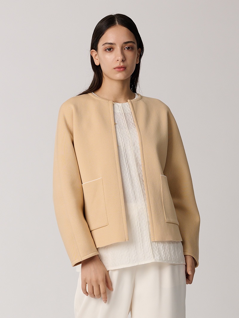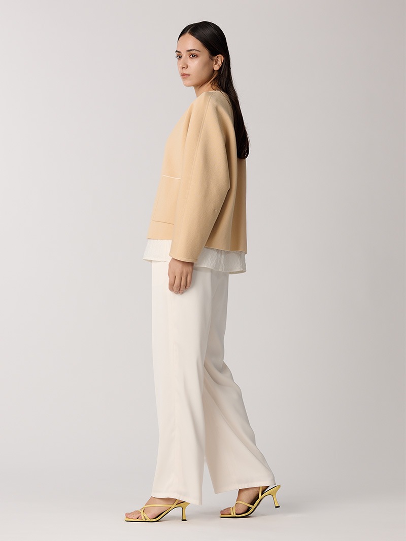 裏表で異なる二種類の糸を使用したダブルフェイスのニットジャケット。程よい膨らみ感で立体的なシルエットを表現しています。ハイゲージで非常に軽く、ストレスフリーな着心地の一枚。