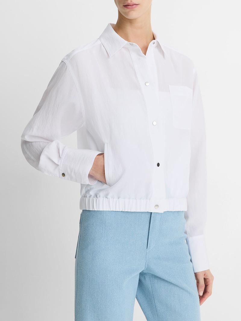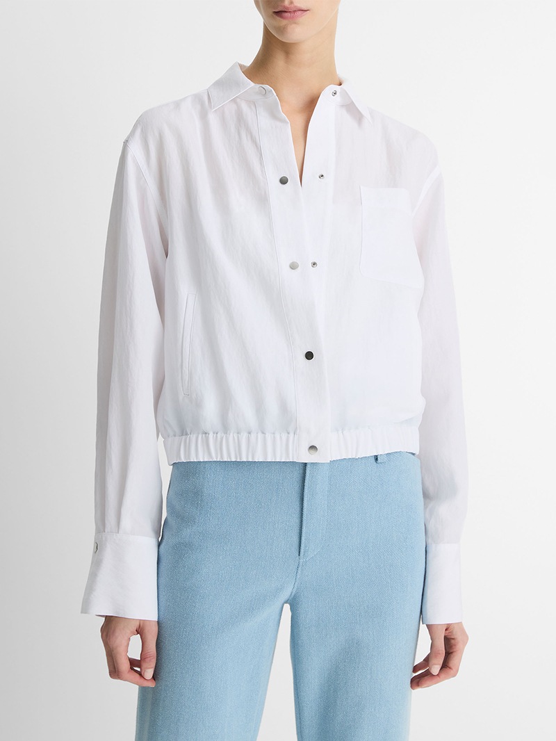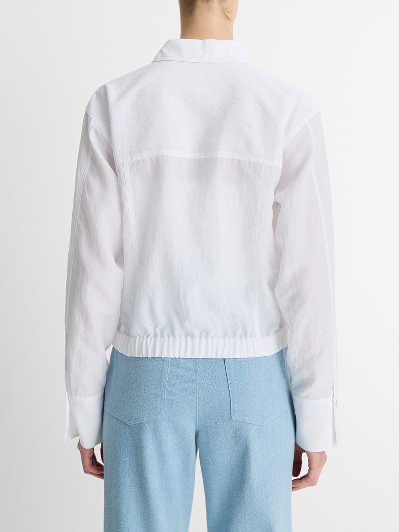 透け感のあるシャツジャケットは夏のコーディネートに爽やかな印象を与えます。春先にはジャケットのインナーとしてもお使いいただけます。
