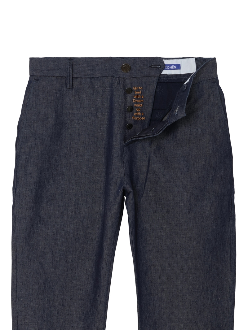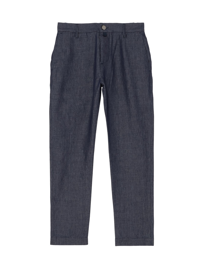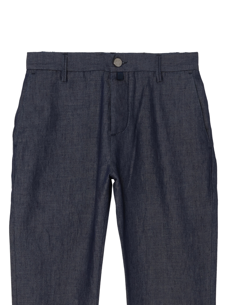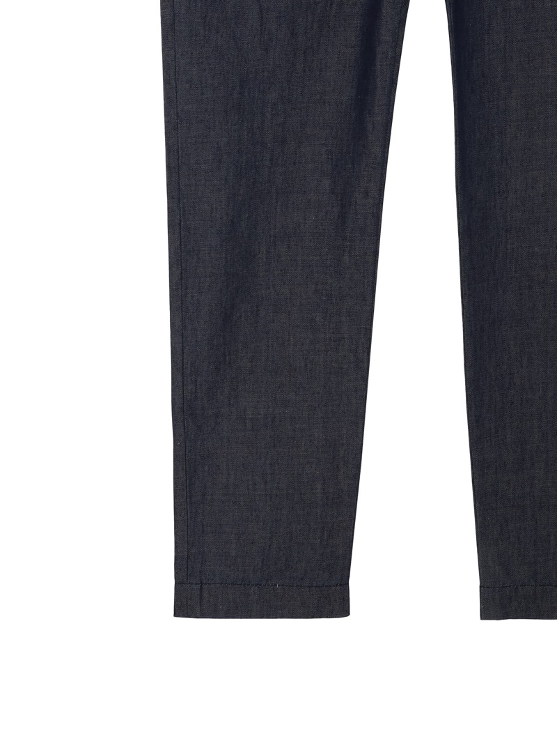 深すぎない股上とすっきりとした細さのスラックスタイプモデル“GRAY”。ウエストバンド背面にゴムが入っており窮屈感の少ない穿き心地が特徴。デニムライクな見た目と軽さのあるコットンリネン素材で、盛夏に活躍する一本。