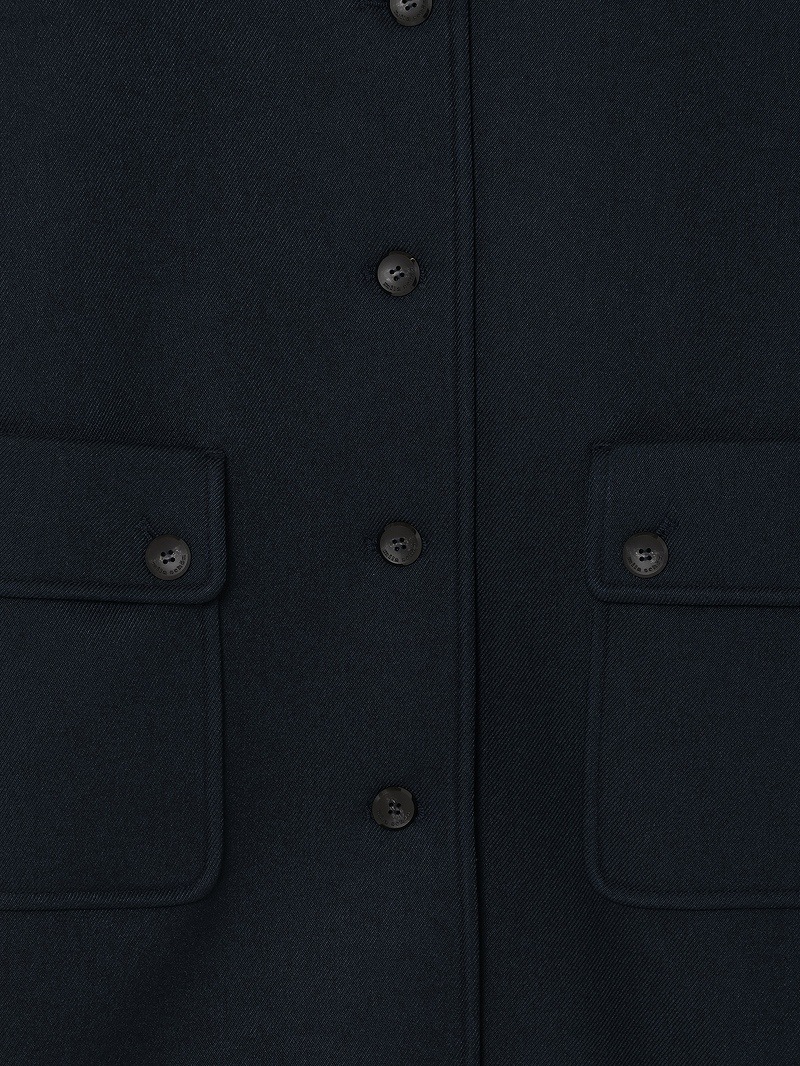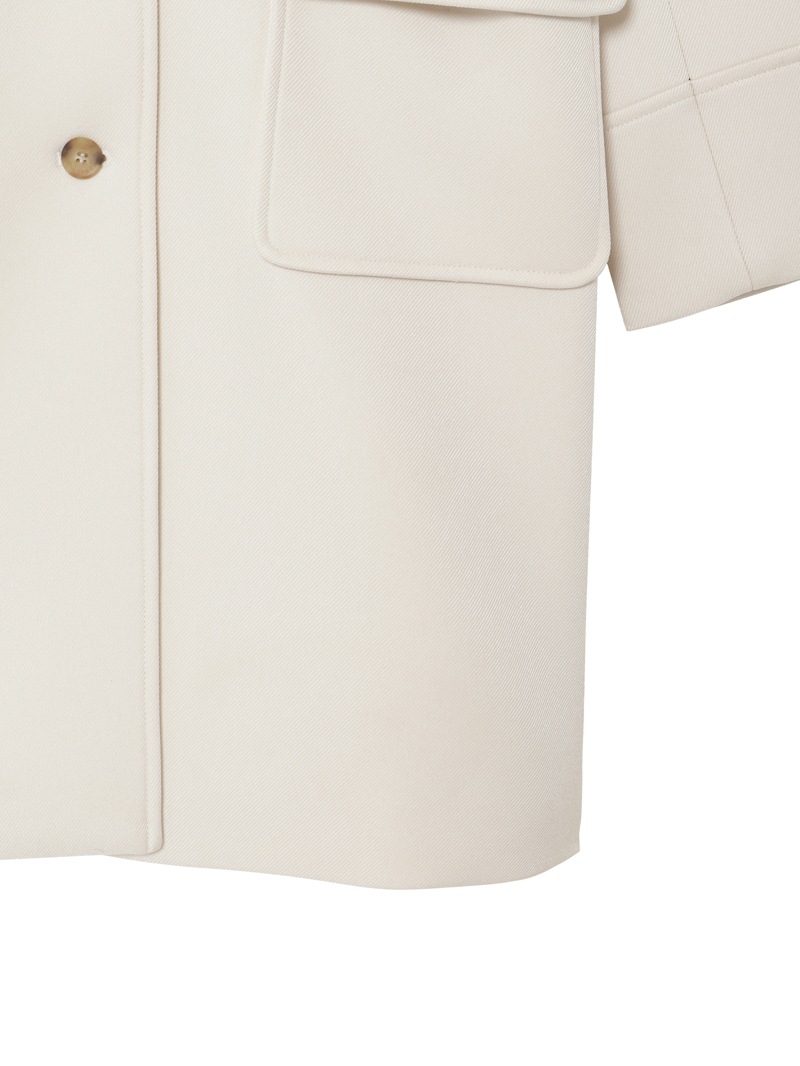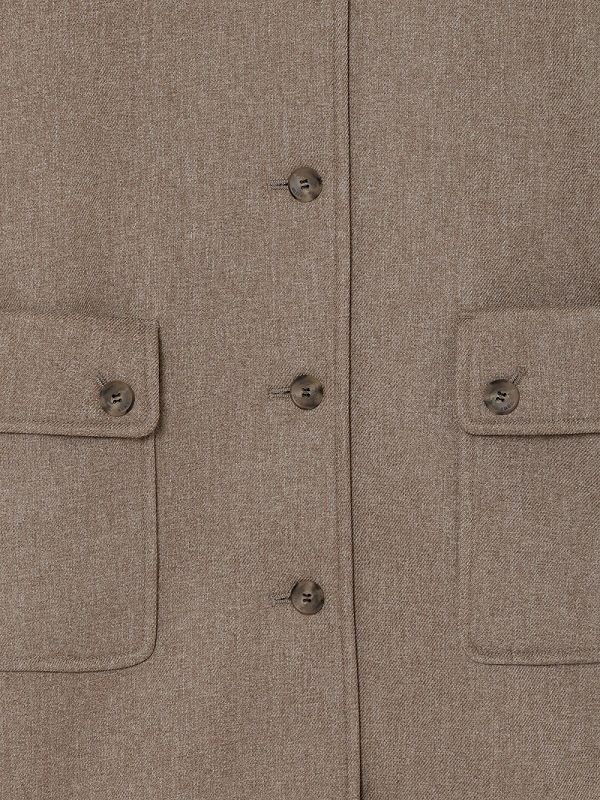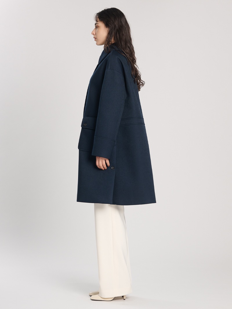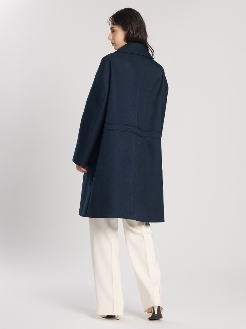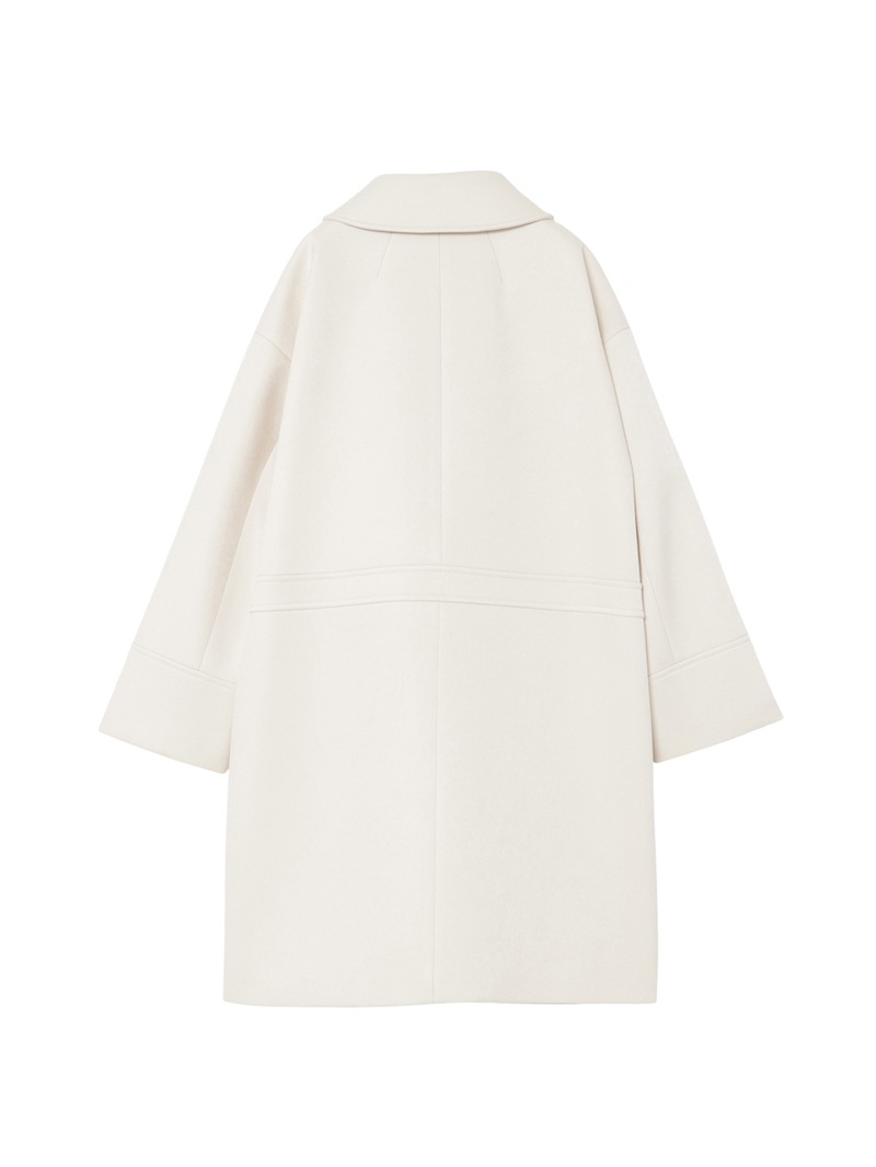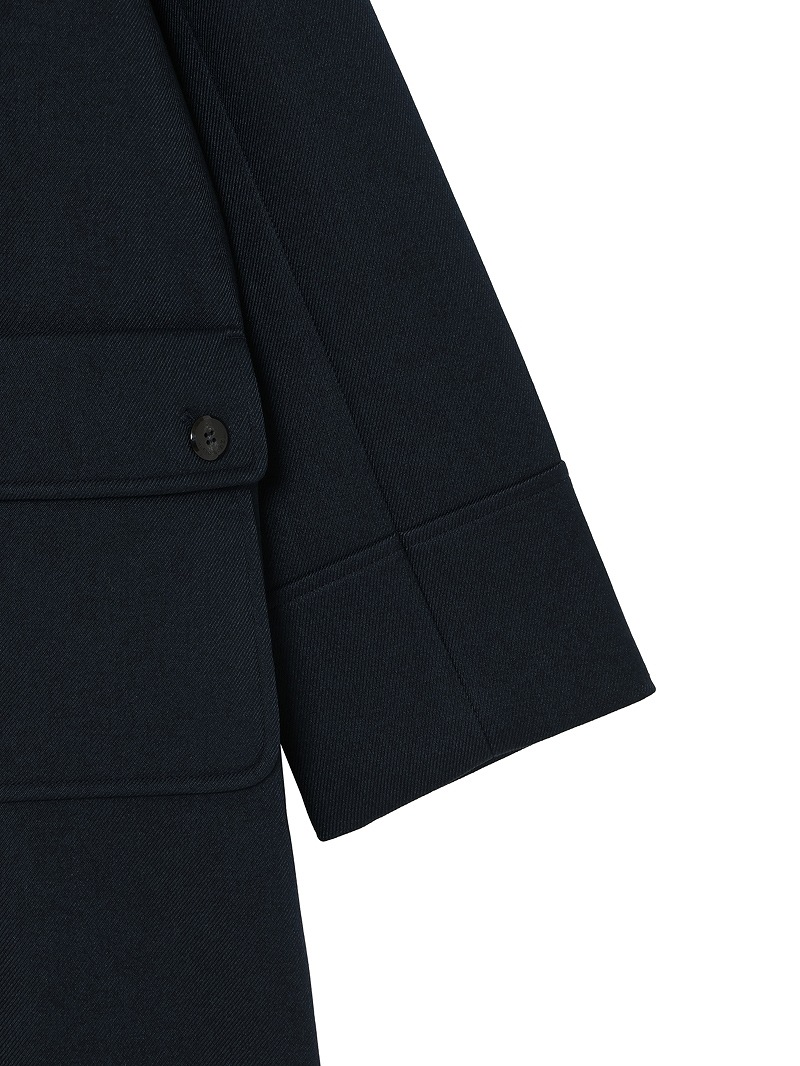 分散染料、CD型分散染料、カチオン染料という3種の染料を用いた特殊な染色技法により、奥深いメランジを表現したコート。スポンジボンディングによる3層構造で、暖かなふくらみとハリ感を持たせています。バルマカーンコート(ステンカラーコート)をベースにした、こだわりのディテールが光る一着です。