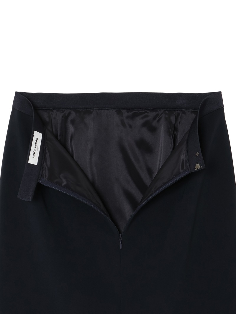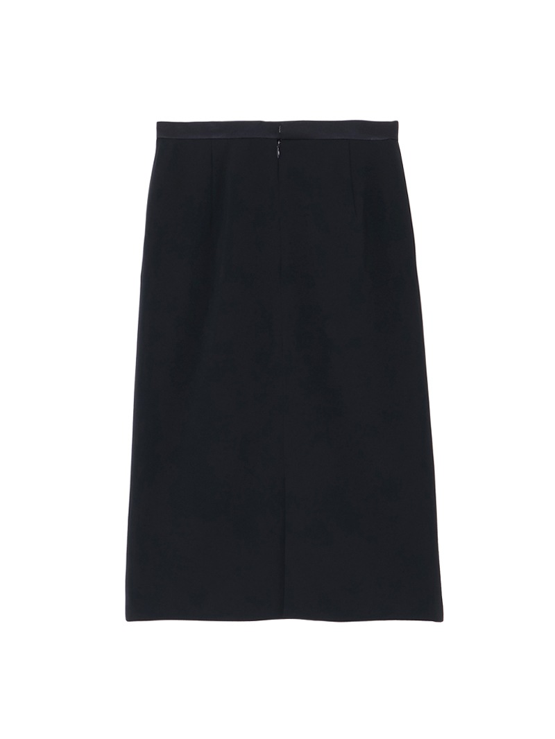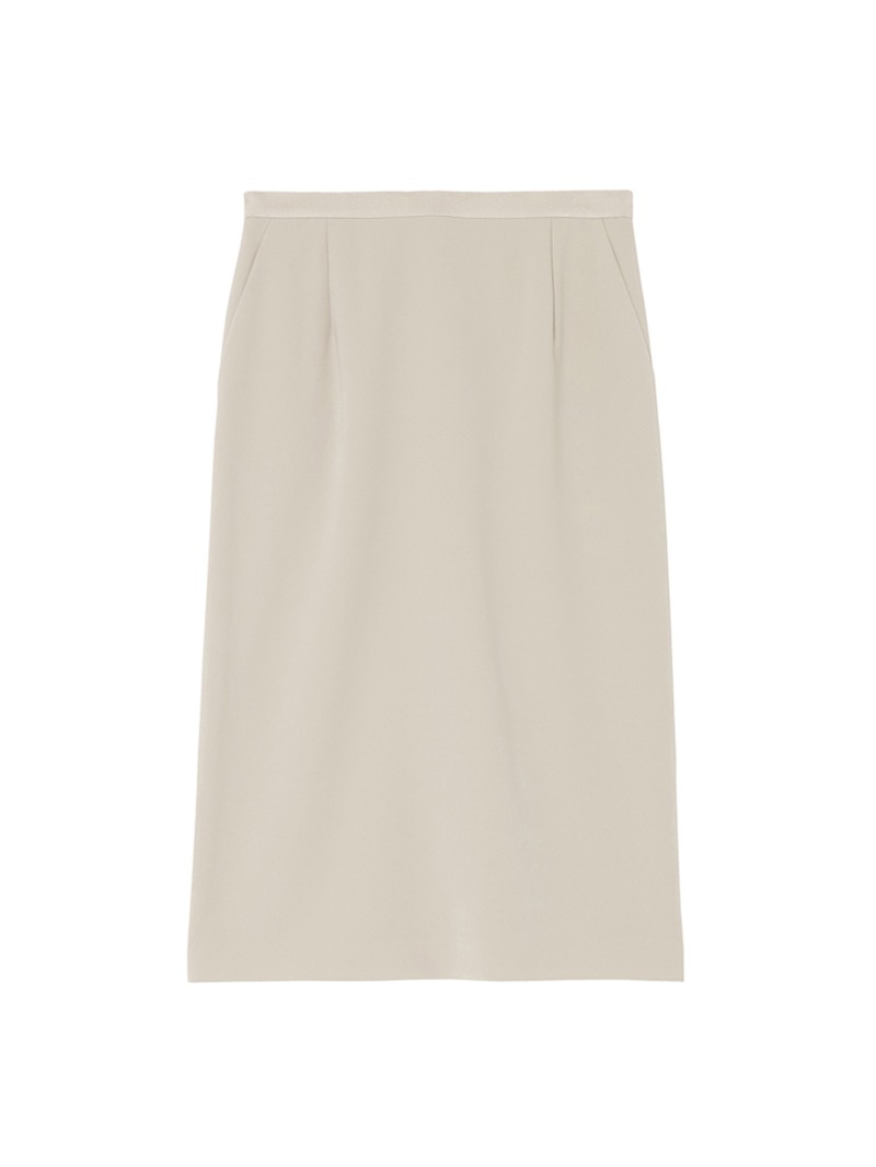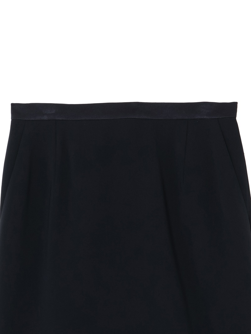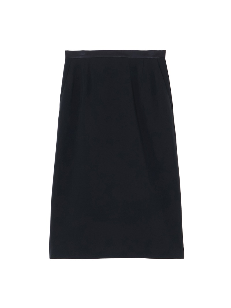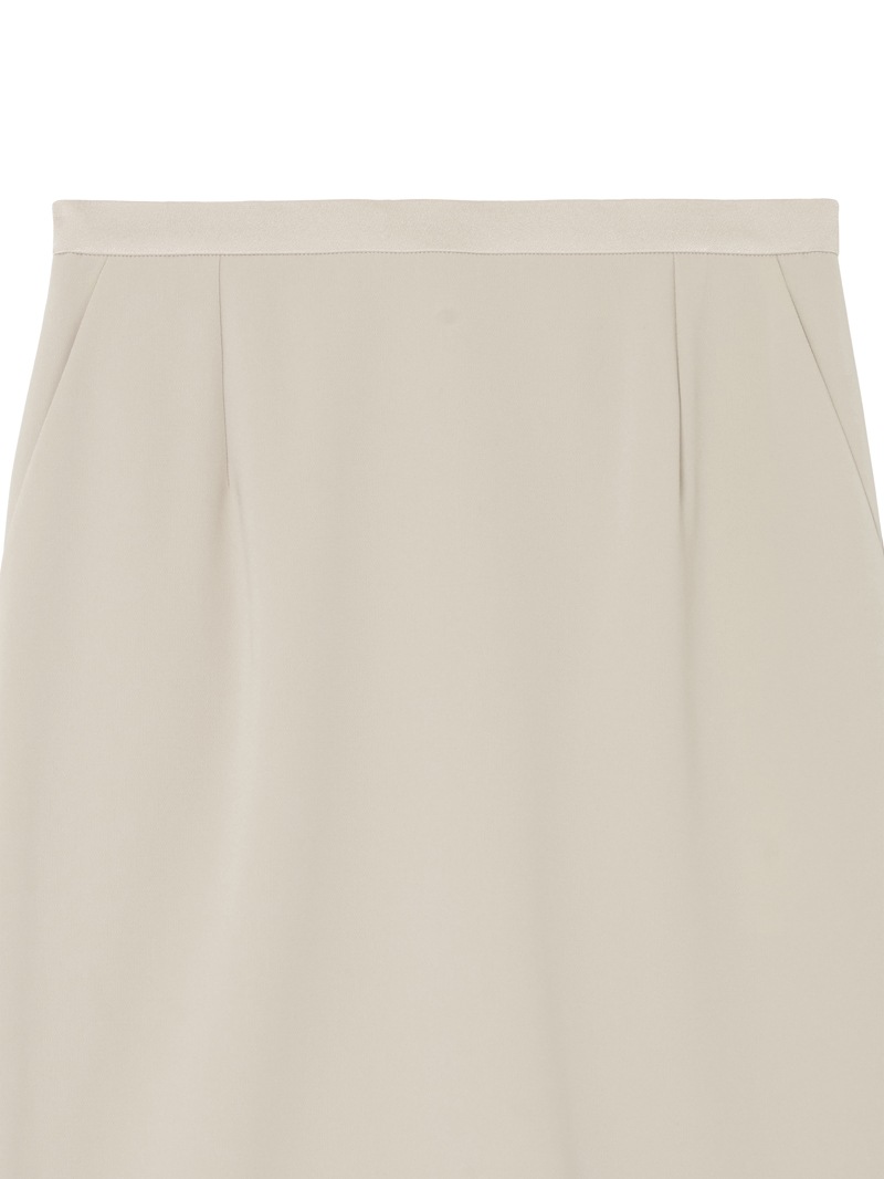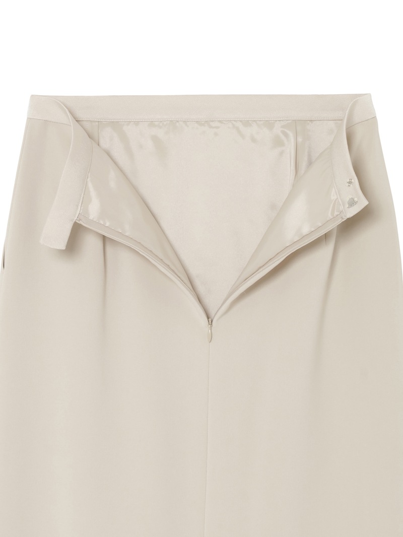 トリアセテートと特殊な加工を施したポリエステルを組み合わせた素材を使用したスカート。トリアセテート特有の美しい光沢と深みのある発色が特徴的なダブルクロス素材は、ボディラインを拾いにくいハリ感と動きやすさを両立するストレッチ性も魅力。同素材のジャケットと合わせたセットアップコーディネートもおすすめです。