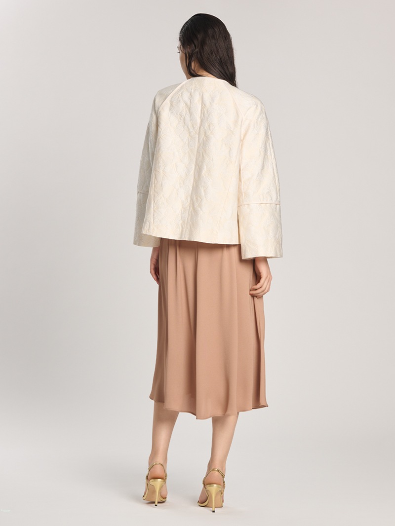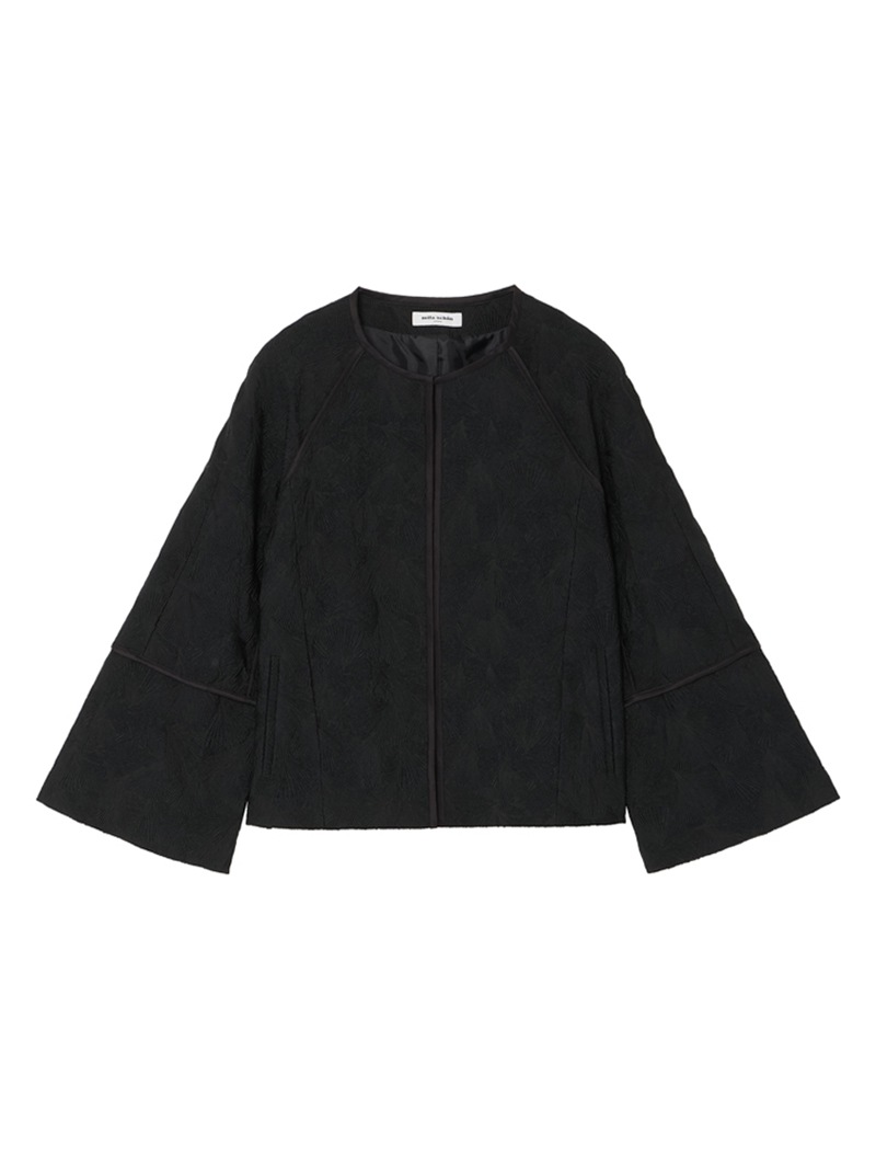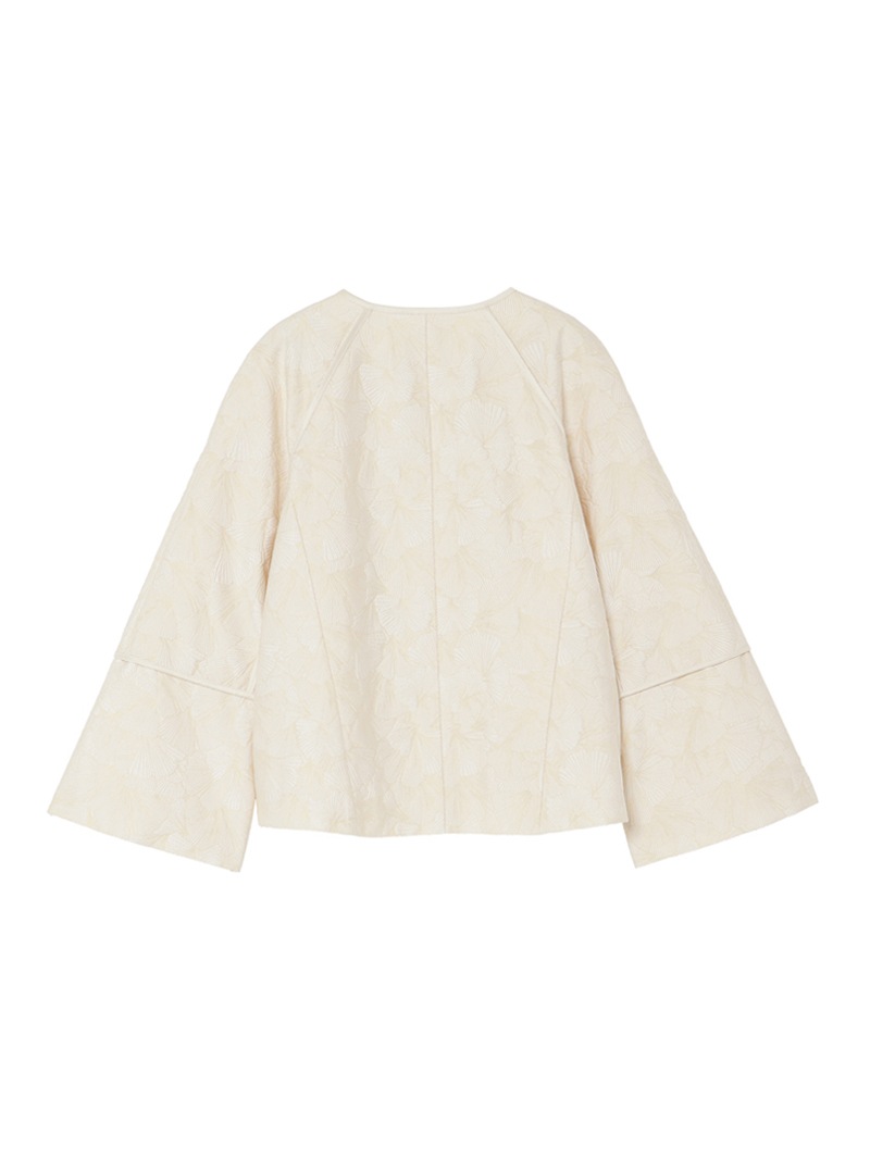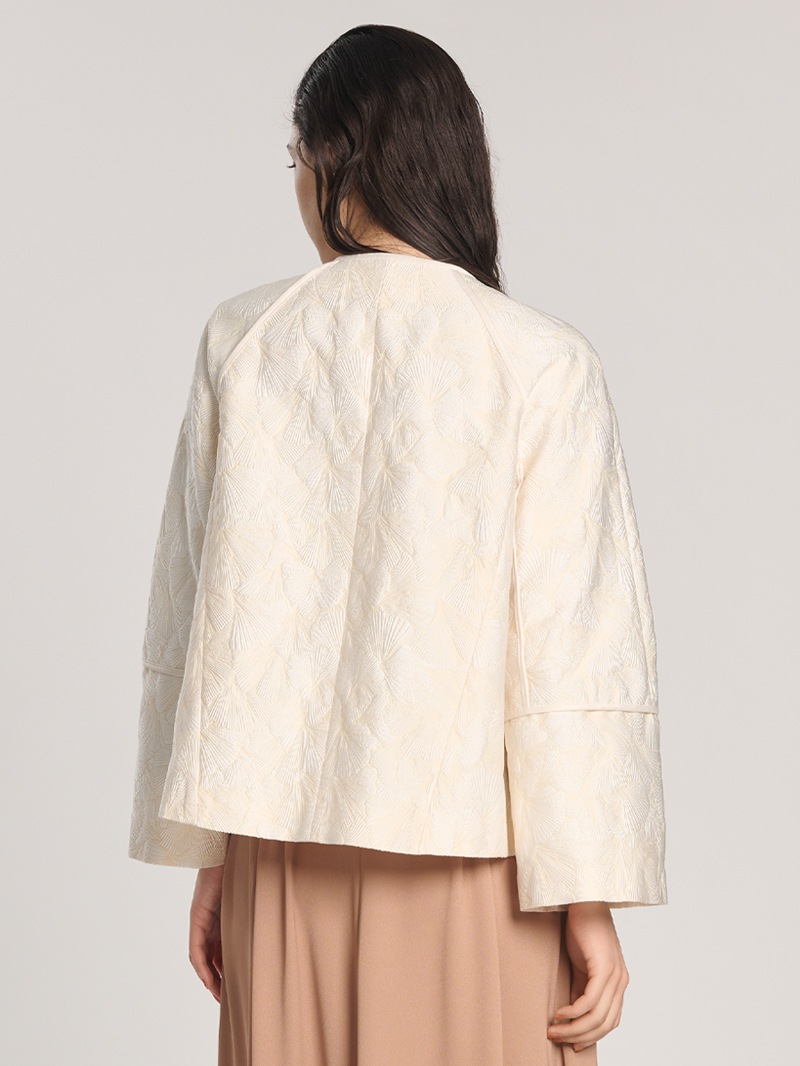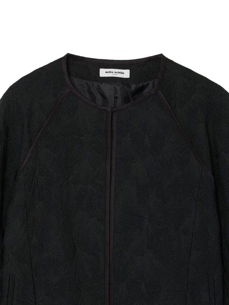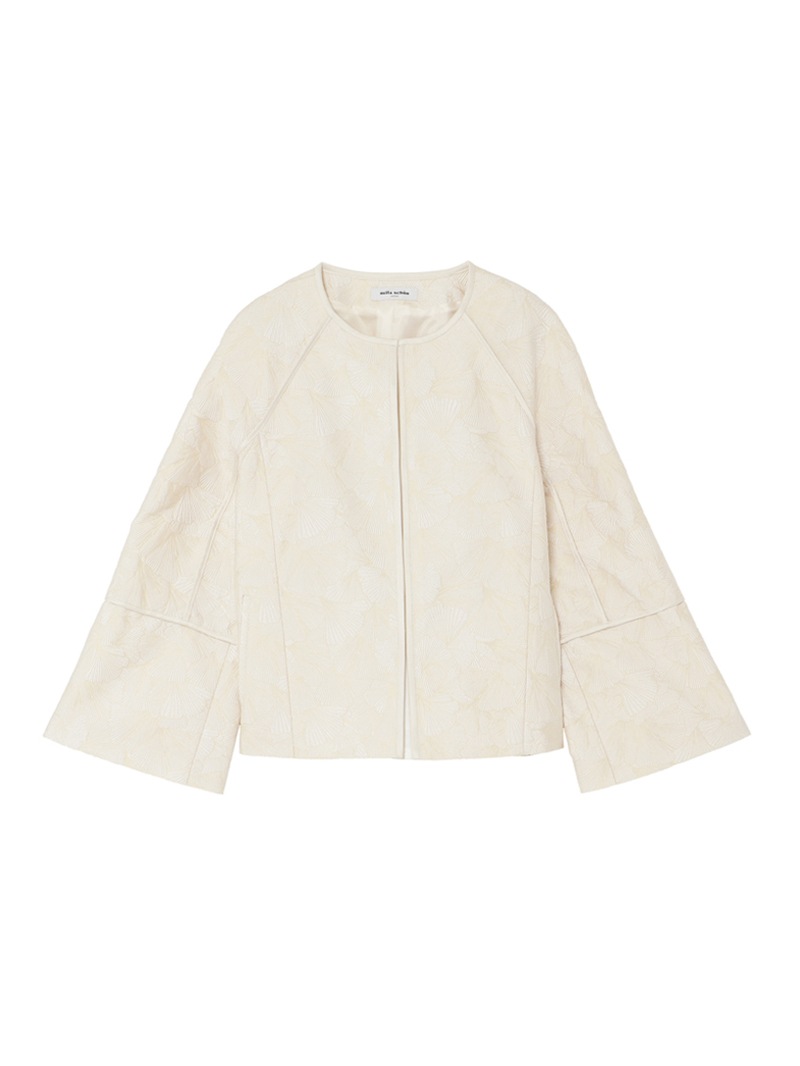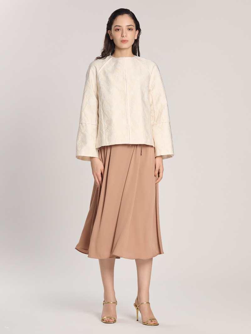 美しいシルクプリントや豪華な生地で知られるRATTI(ラッティ)社のリーフ柄ジャガード素材を使用したジャケット。繊細な柄ゆきと上品な光沢感が特徴です。同素材のスカートと合わせたセットアップでの着こなしもおすすめです。