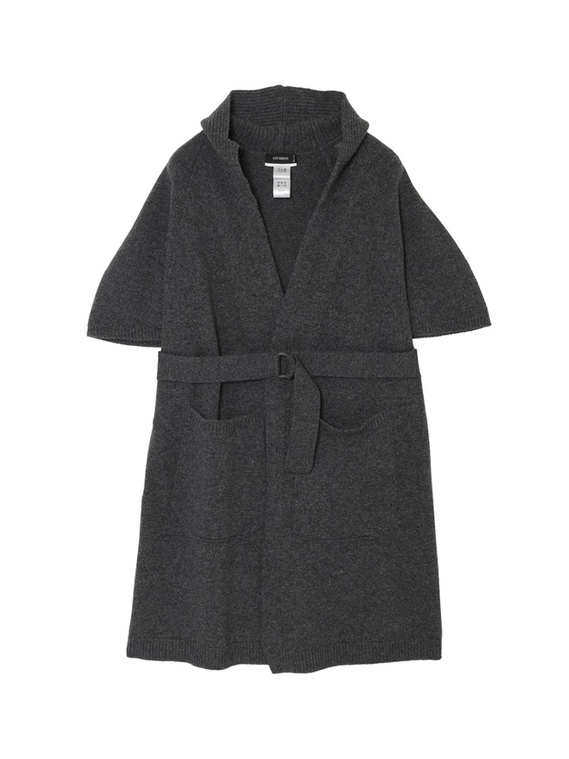 贅沢なカシミヤウールのフード付きロングカーディガン。ふんわりとしたハーフスリーブに付属のベルトでラフさときちんと感をバランスよく演出。リラックスしたシルエットです。