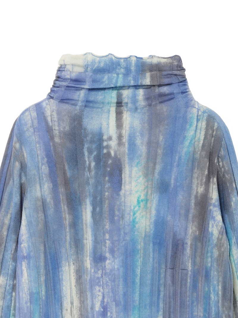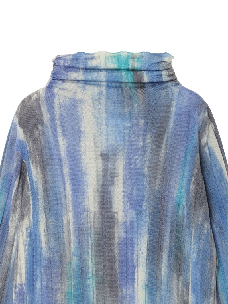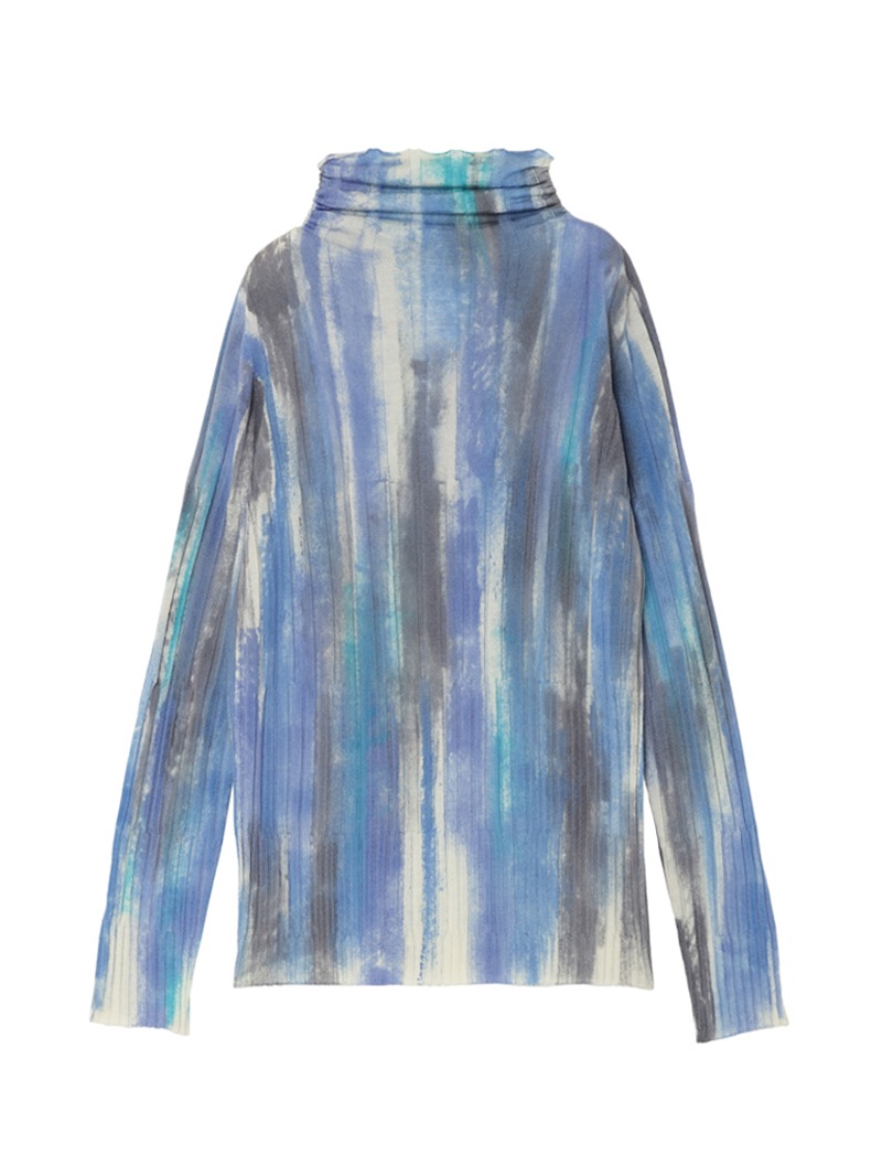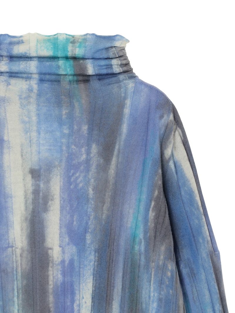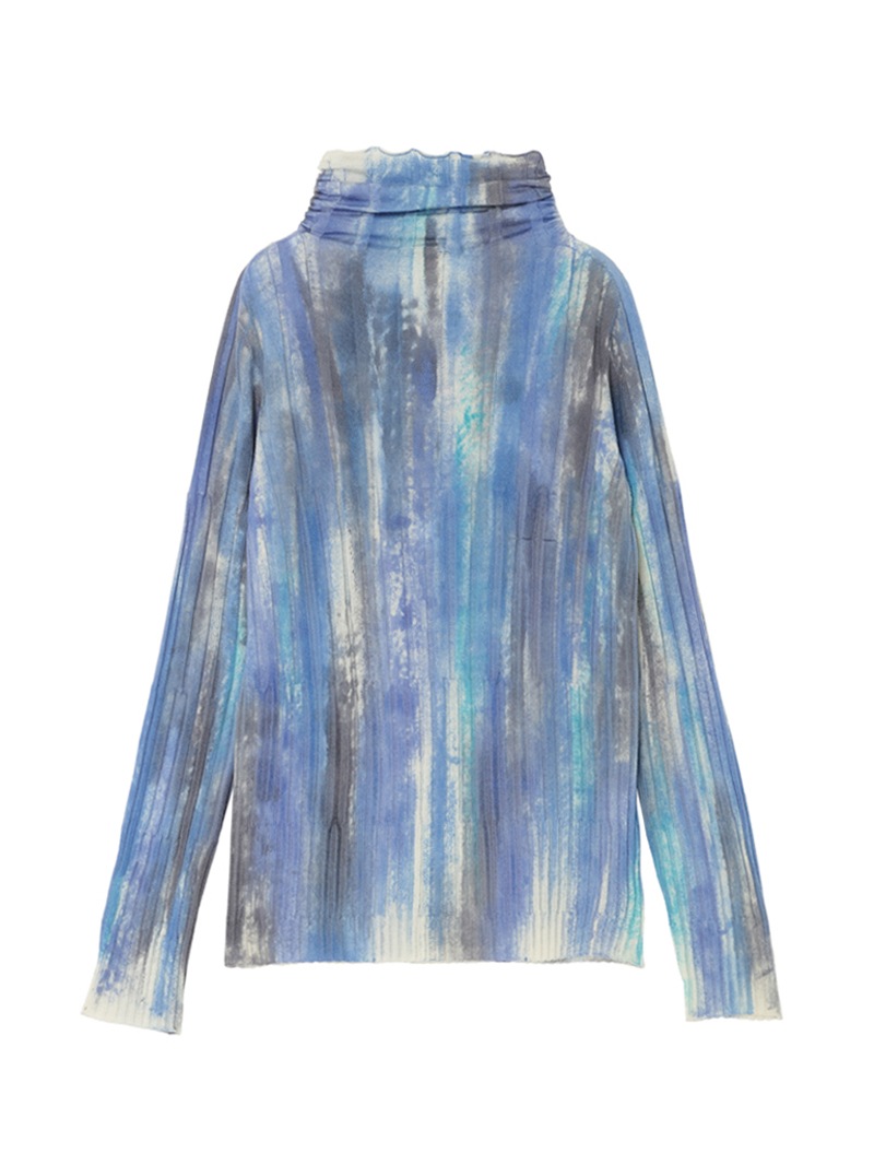 上質なリブニットにエアブラシカラーリング加工を施したニットプルオーバー。メリノウールを使用し、なめらかな肌心地を実現。存在感のある一着です。
