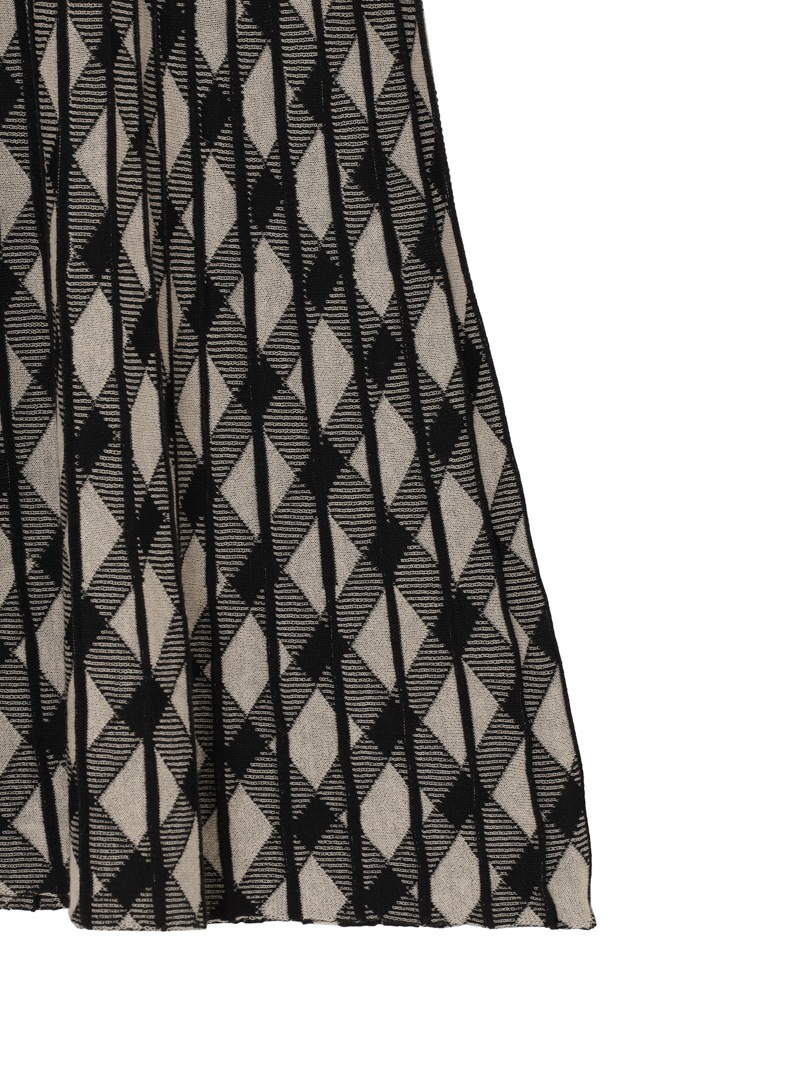 上質なハイゲージメリノウールにコットンとポリアミドをブレンドしたスカート。流れるようなドレープモチーフがエレガントな印象。