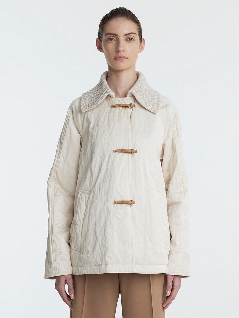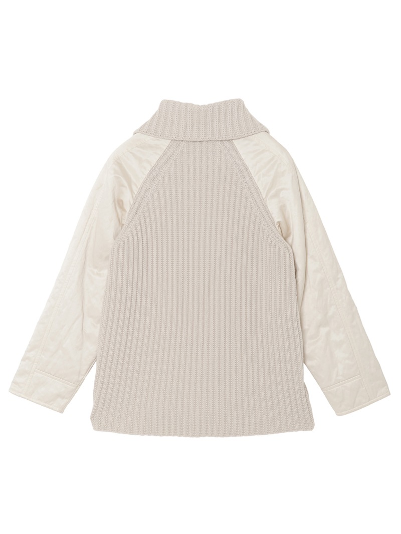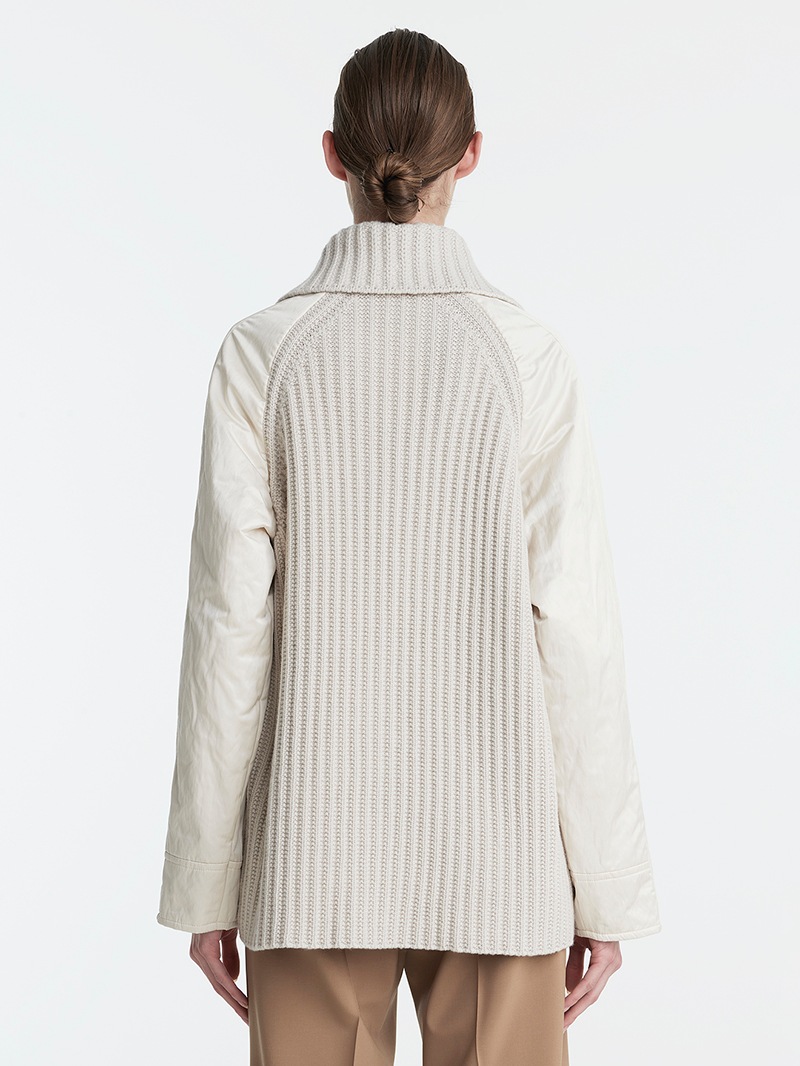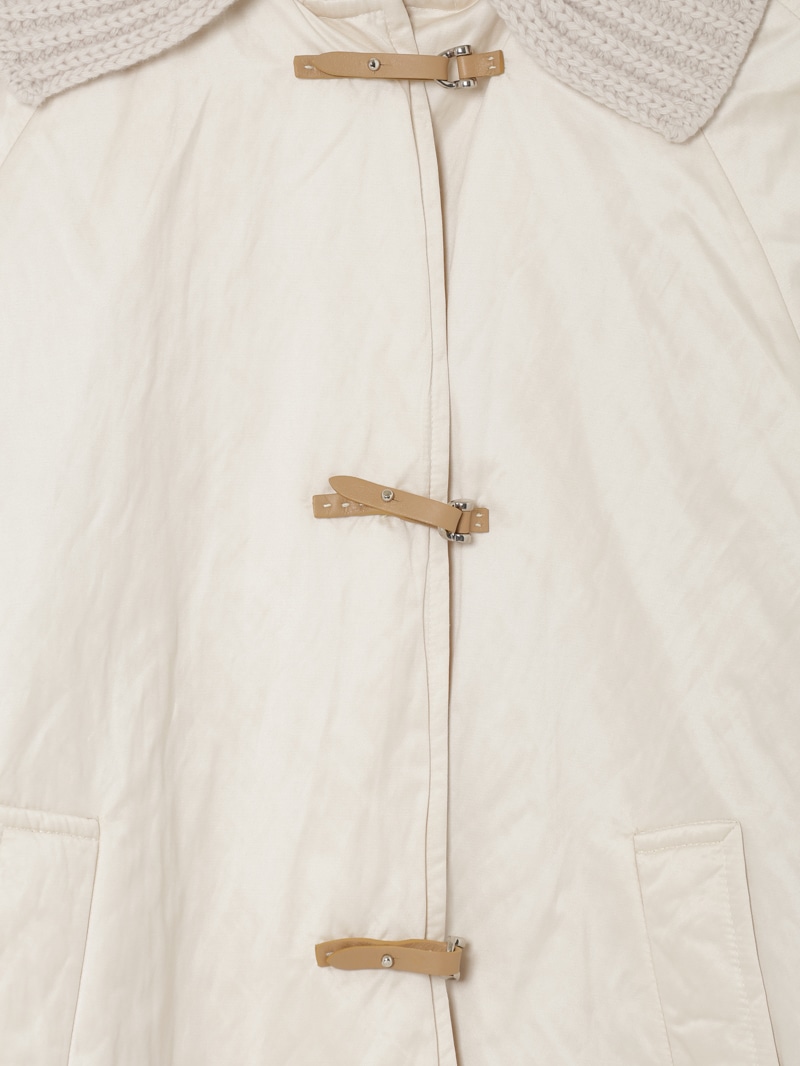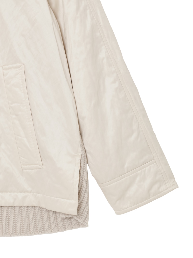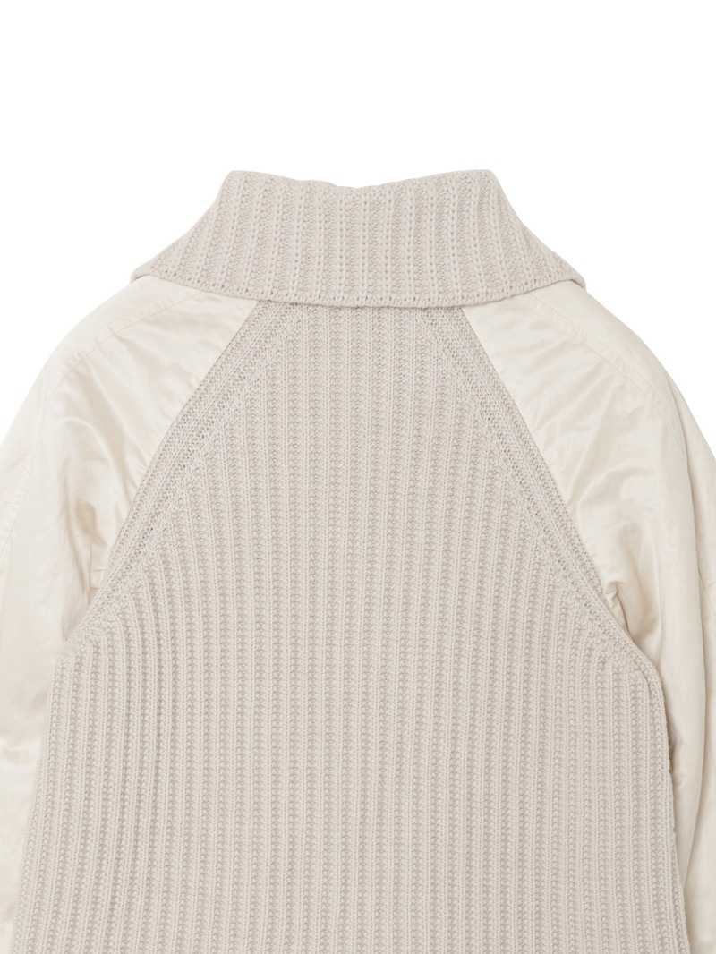 上質なジーロンウールを使用したショート丈のコート。襟元と背中に異素材のリブニットを施し立体的なシルエットに。軽くて暖かな中綿を使用し快適な着心地を実現。