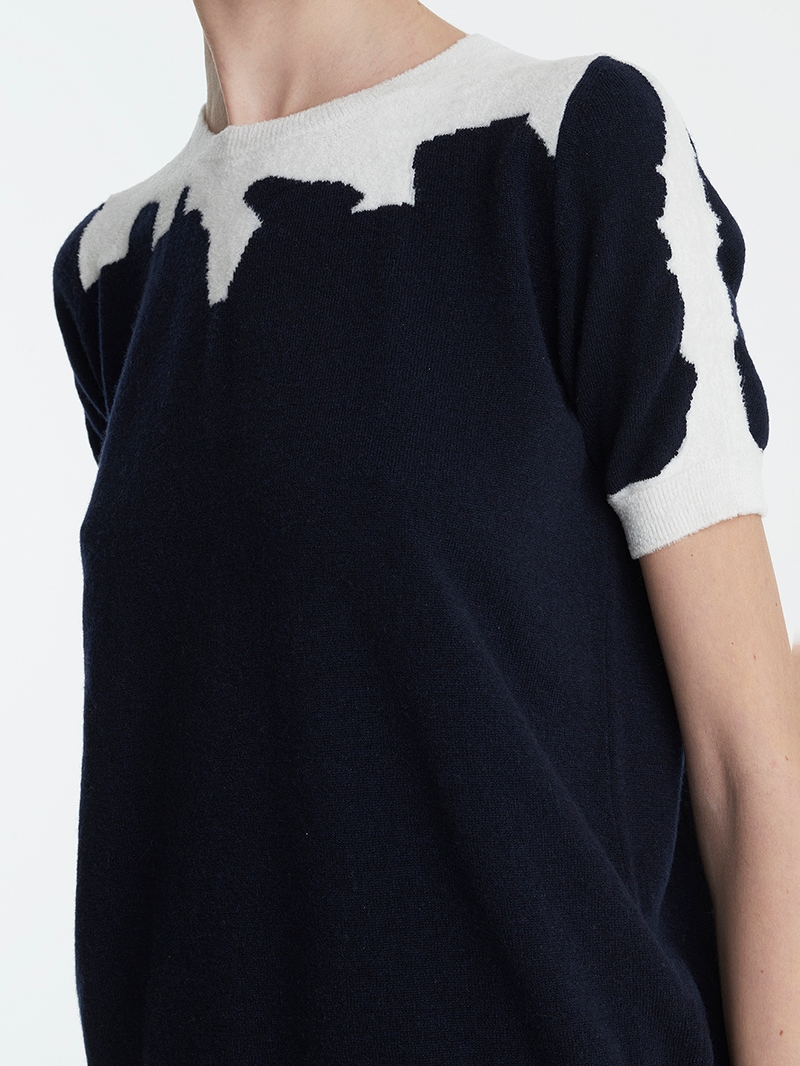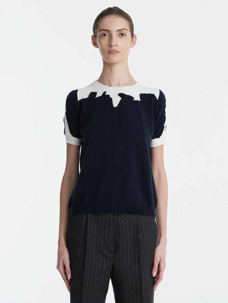 やわらかなプルームカシミヤを贅沢に使用したクルーネックのニット。上品なハーフスリーブに、首元には光沢感のあるシェニール素材を切り替えであしらいさり気ないアクセントに。しっとりと肌に寄り添うような着心地で、シンプルながら存在感のある一着です。