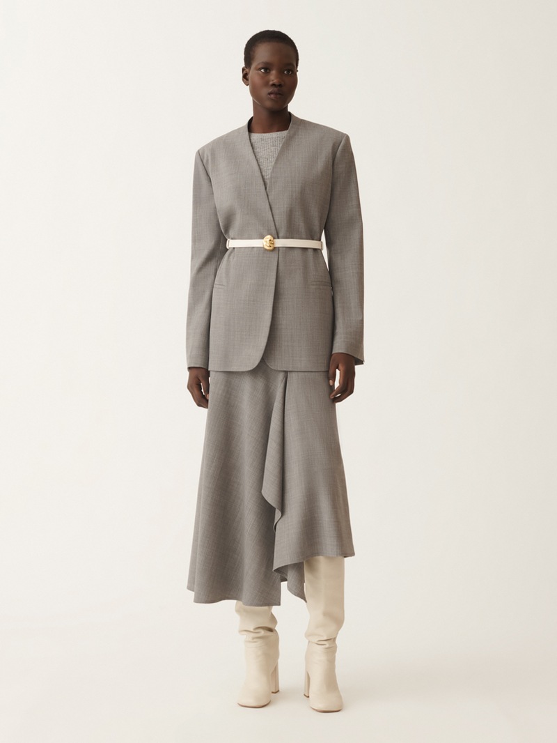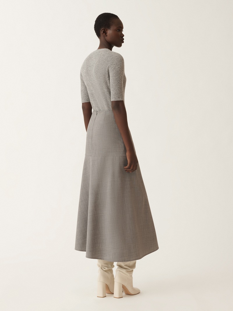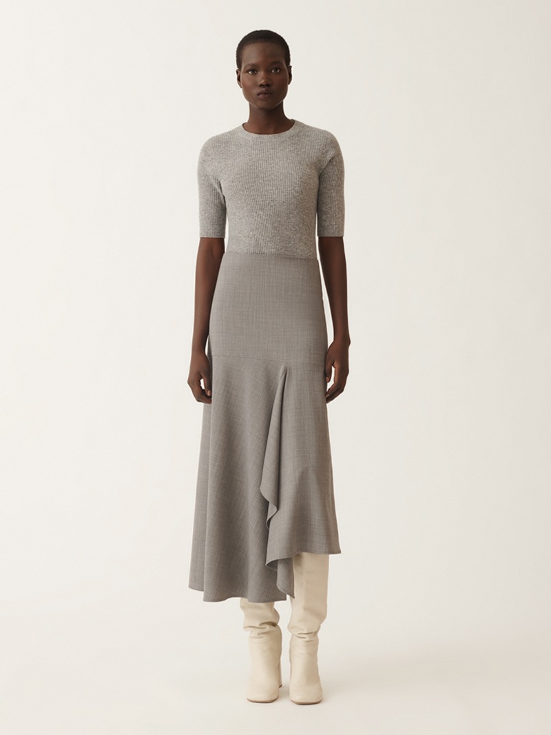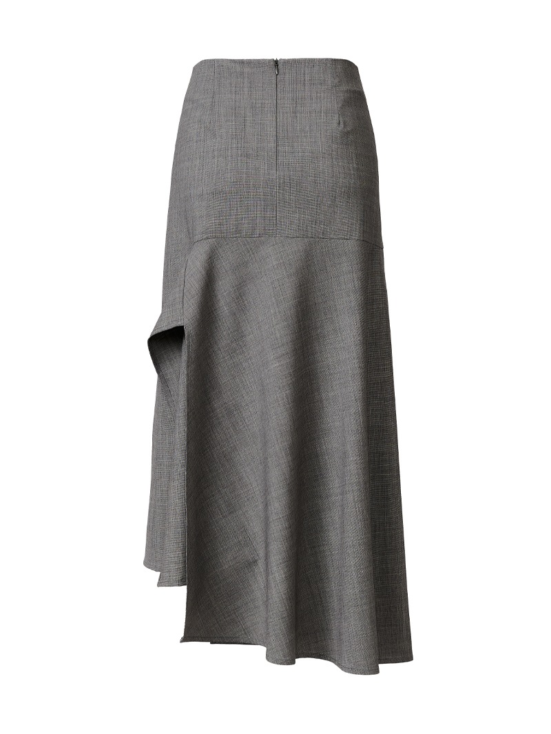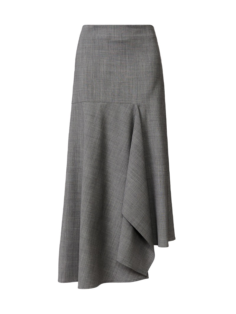 ストレッチ性に優れたバイストレッチウール素材の、洗練されたアシンメトリースカート。動きに合わせて美しく揺れる斜めのパネルデザインが、シンプルな中にもモードな印象をプラスします。身体に程よくフィットし快適な履き心地を実現。カジュアルスタイルにもフォーマルシーンにも活躍する一着です。