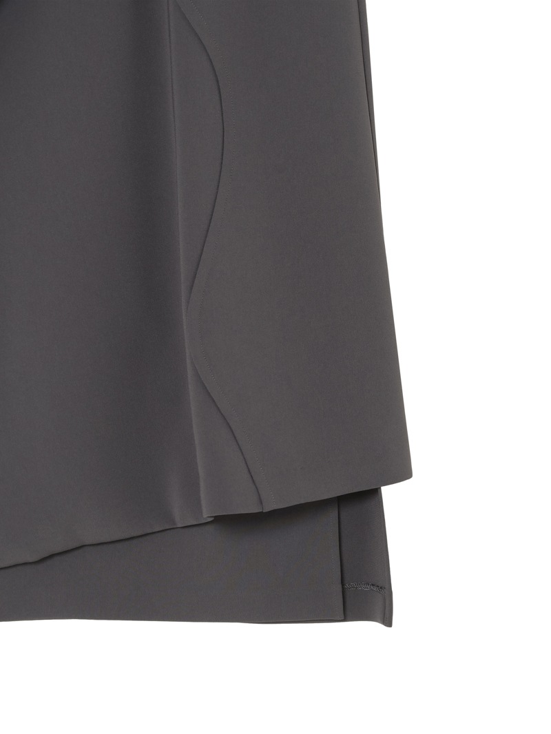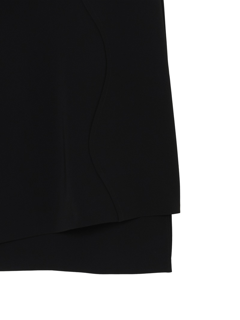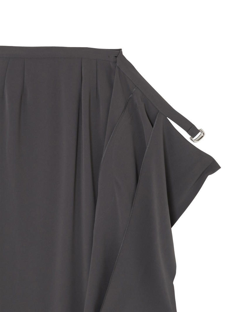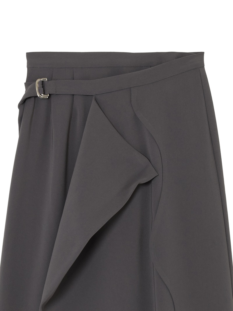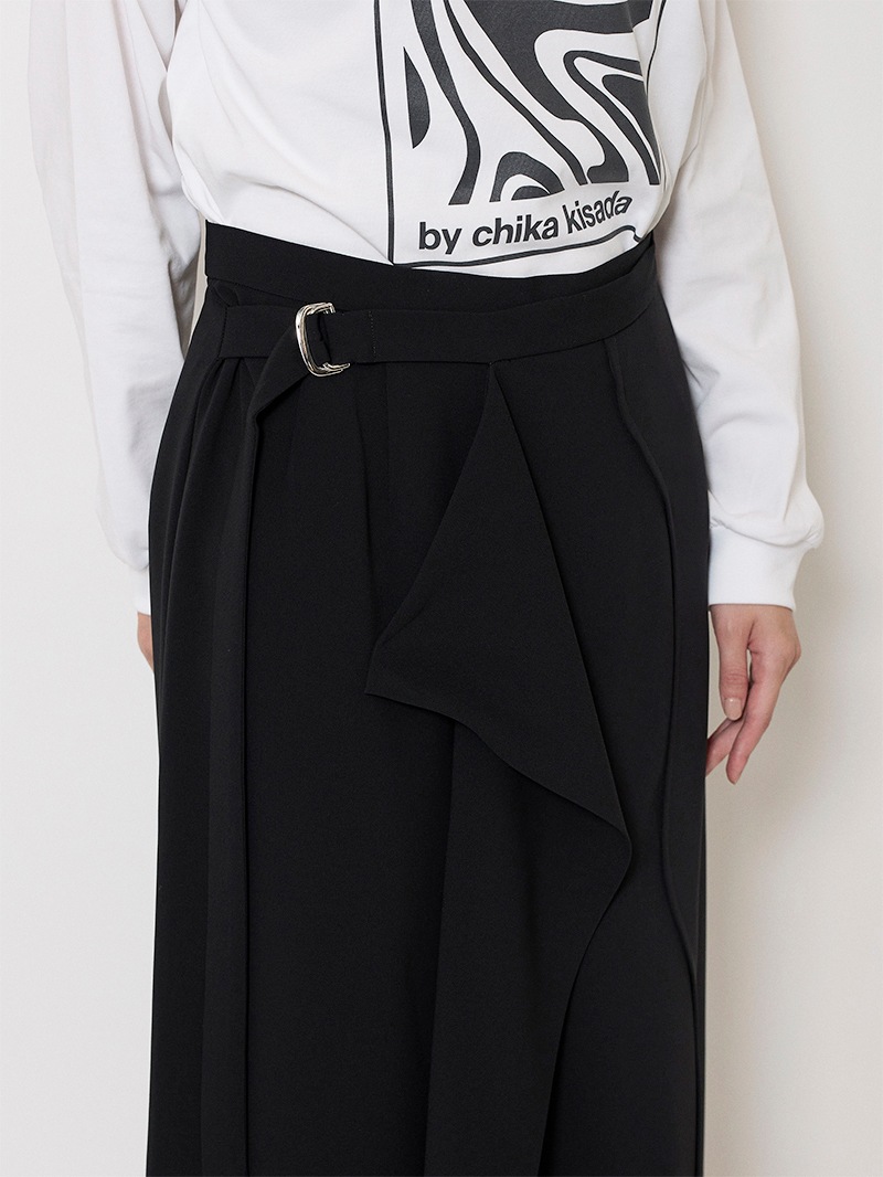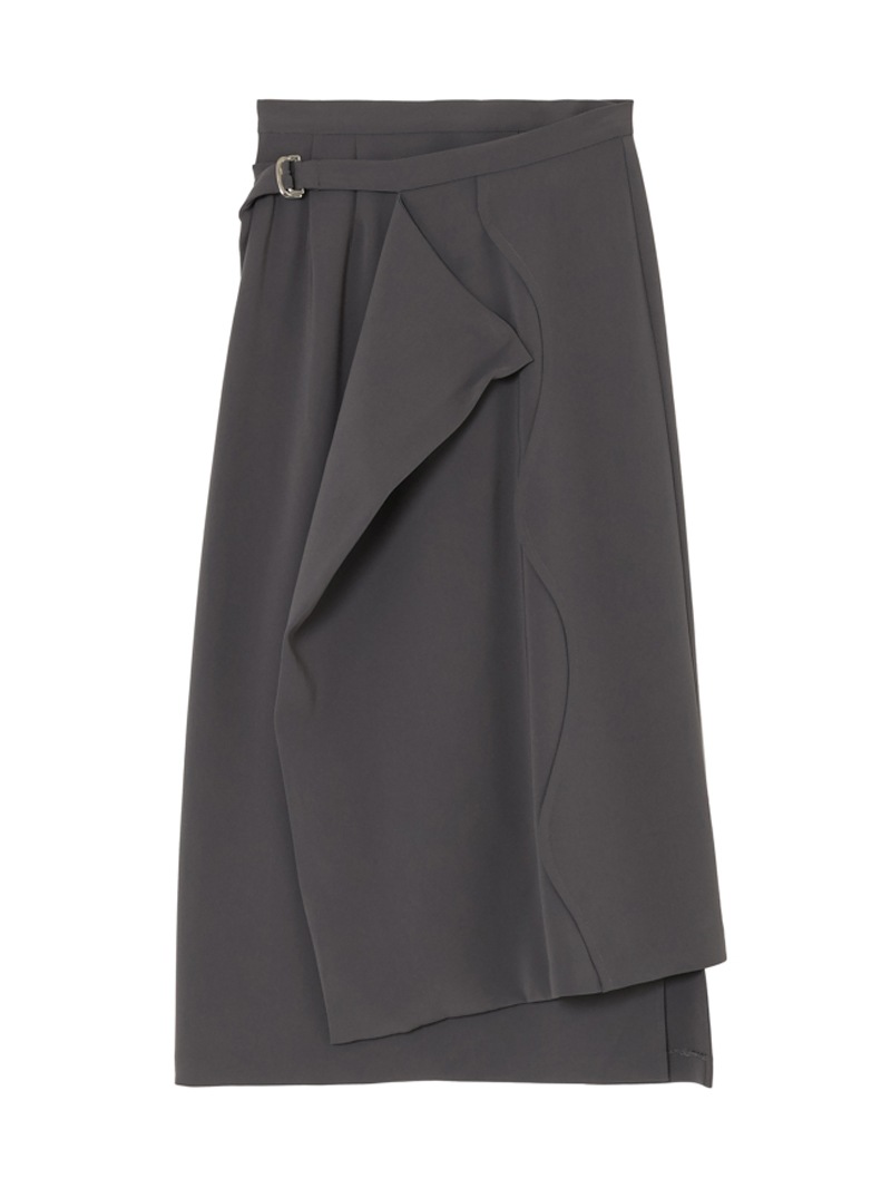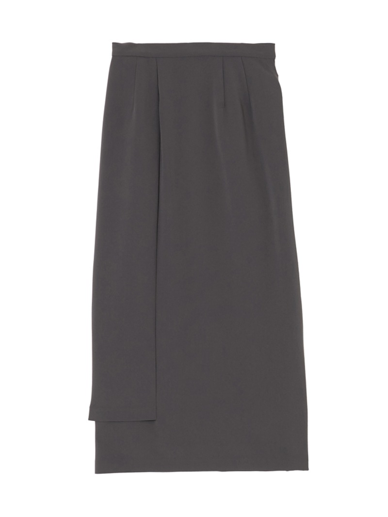 ファーストコレクションから好評のラップスカートを、より穿きやすく上品にアップデート。生地をたっぷり使用した軽いフレアラインのスカートの上にラップ風ディテールを重ねたデザイン。落ち感のあるジョーゼットを贅沢に使いながらもすっきりとしたシルエットに。シンプルなトップスを引き立てる大人な一枚。同素材のベストともセットアップで着用可能。