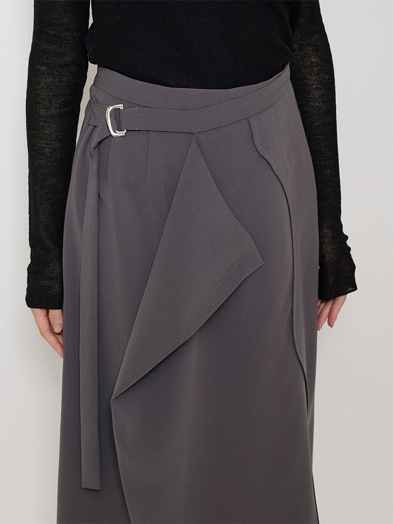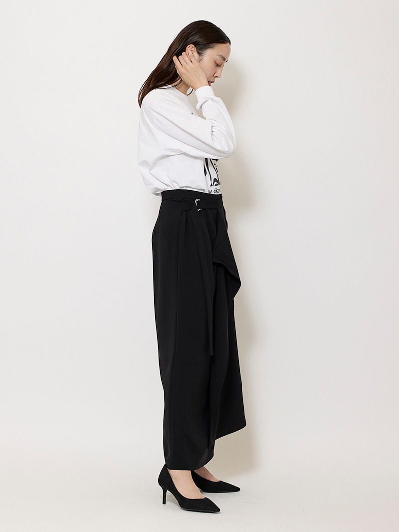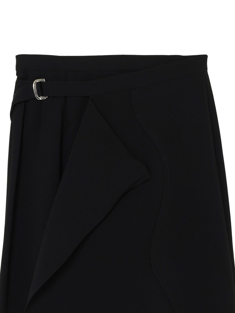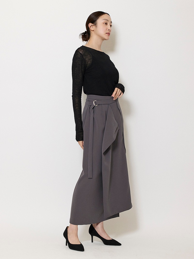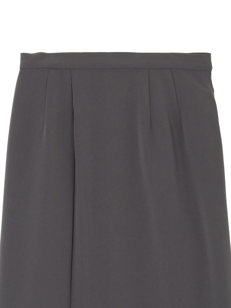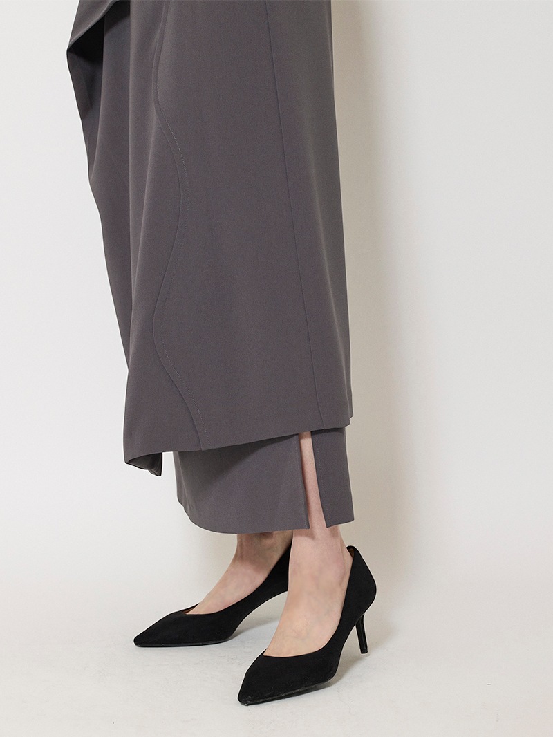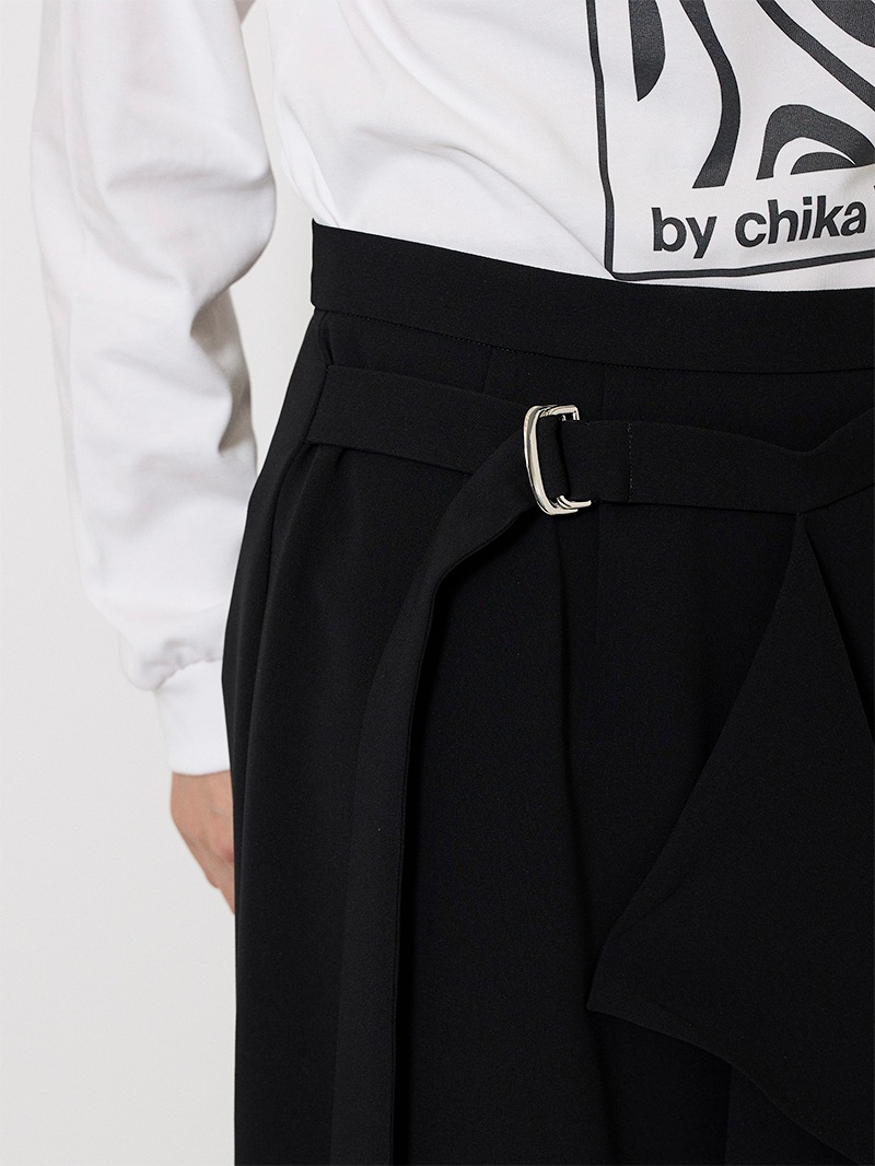 ファーストコレクションから好評のラップスカートを、より穿きやすく上品にアップデート。生地をたっぷり使用した軽いフレアラインのスカートの上にラップ風ディテールを重ねたデザイン。落ち感のあるジョーゼットを贅沢に使いながらもすっきりとしたシルエットに。シンプルなトップスを引き立てる大人な一枚。同素材のベストともセットアップで着用可能。