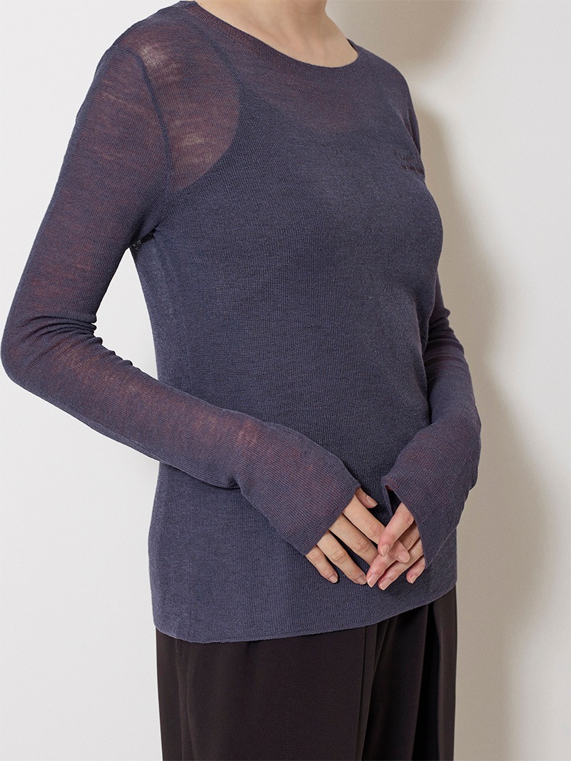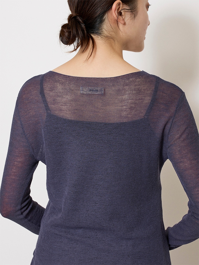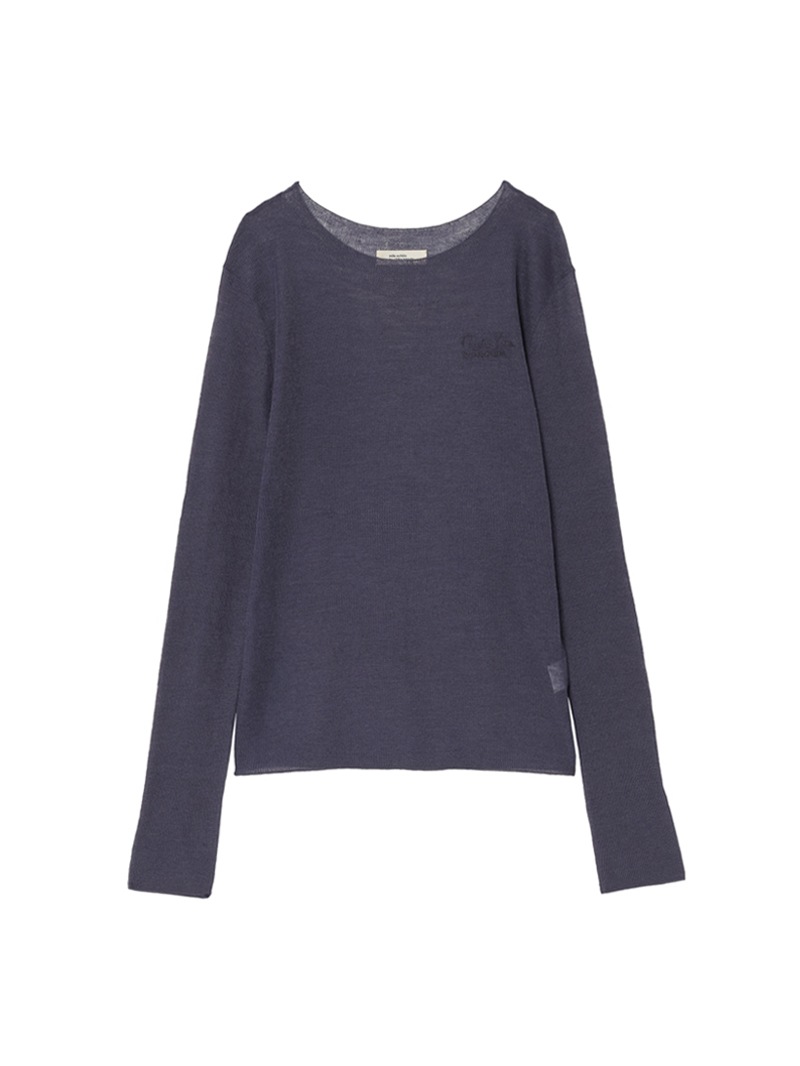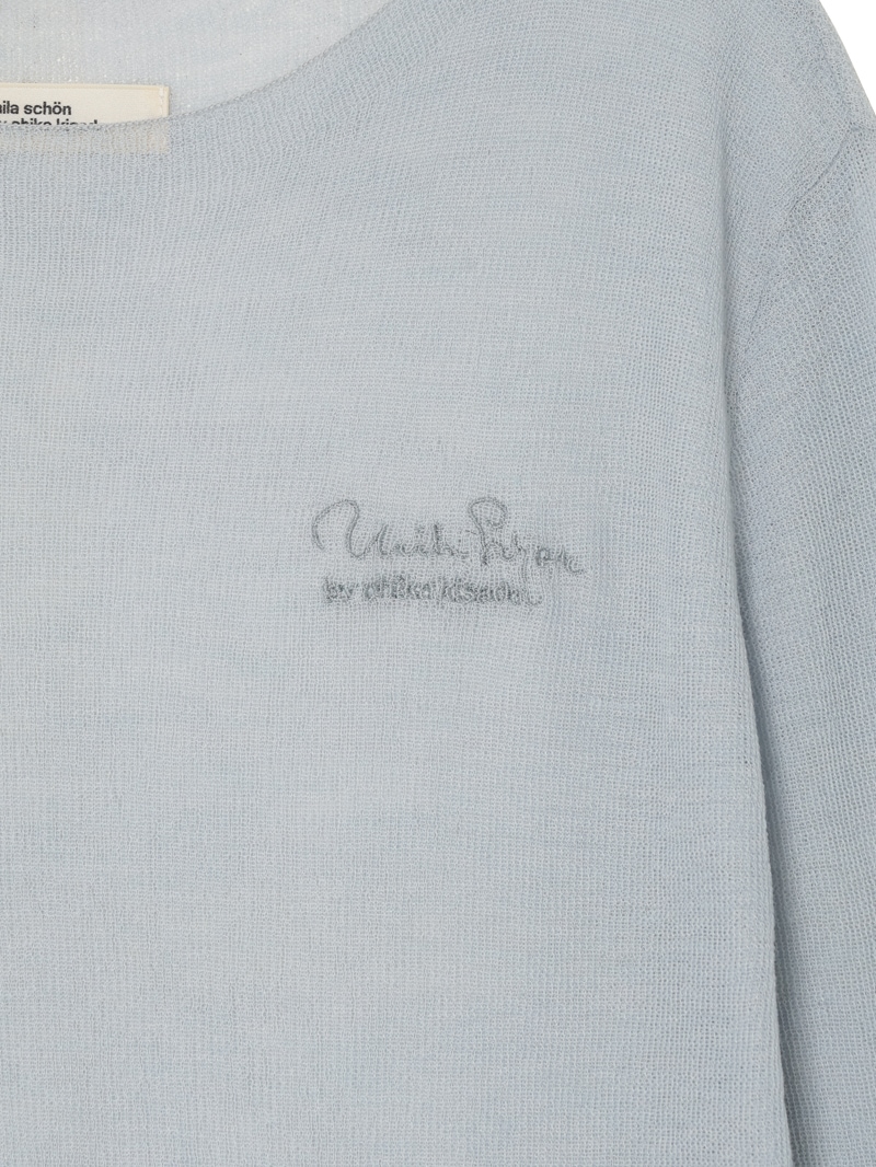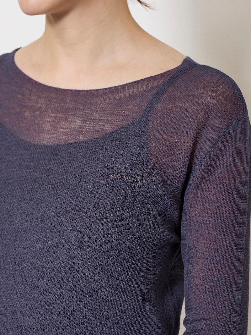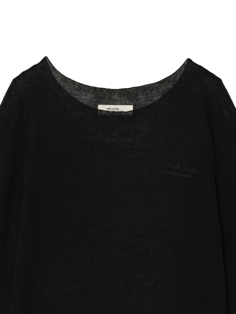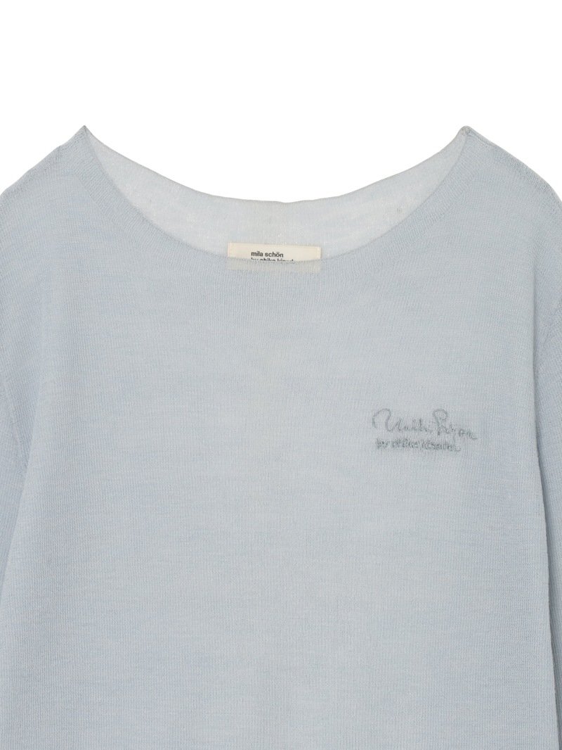 まるで「第二の皮膚」のような、着心地にこだわったシアーニットプルオーバー。ほのかにシャリ味のあるさらっとした肌触りながら、ウール混のふっくらとした弾力もある素材は、ノーストレスで3シーズン着用可能。マダム ミラ・ショーン自筆のサインをトレースした、胸元のロゴ刺繍がポイントに。