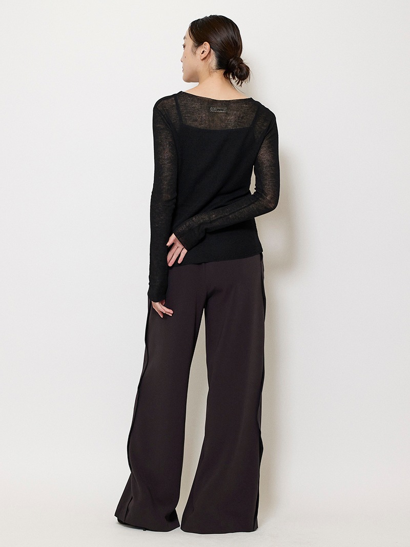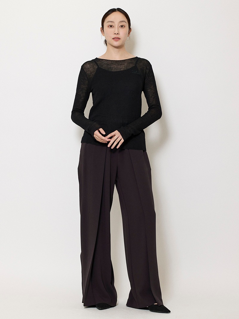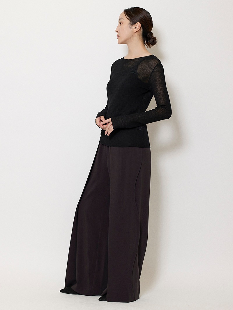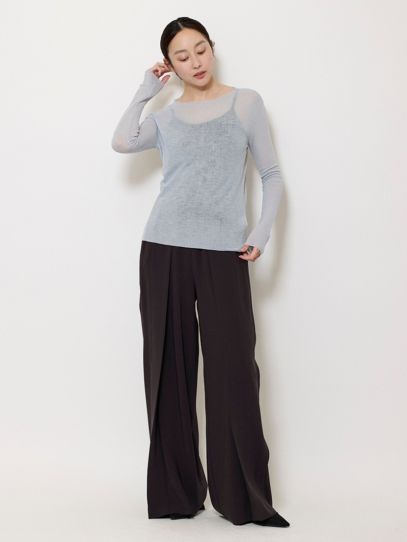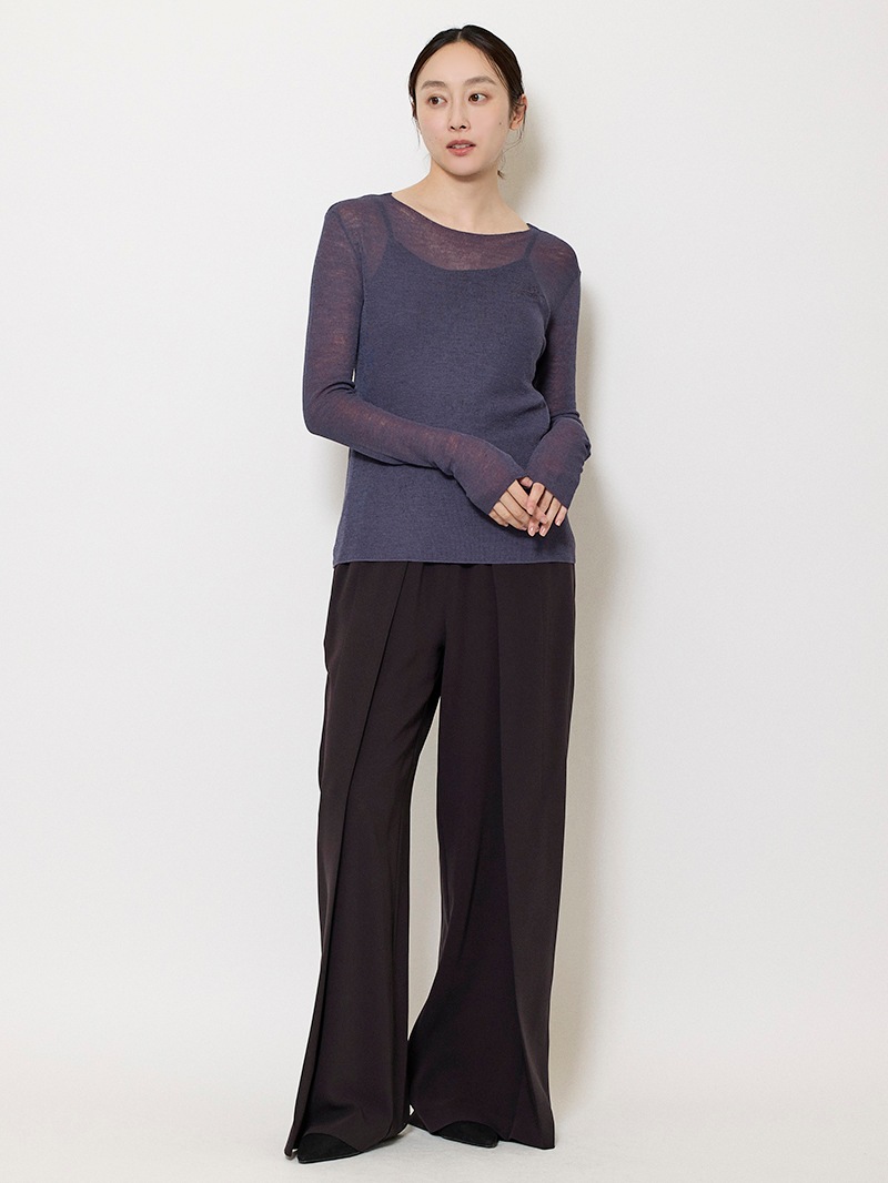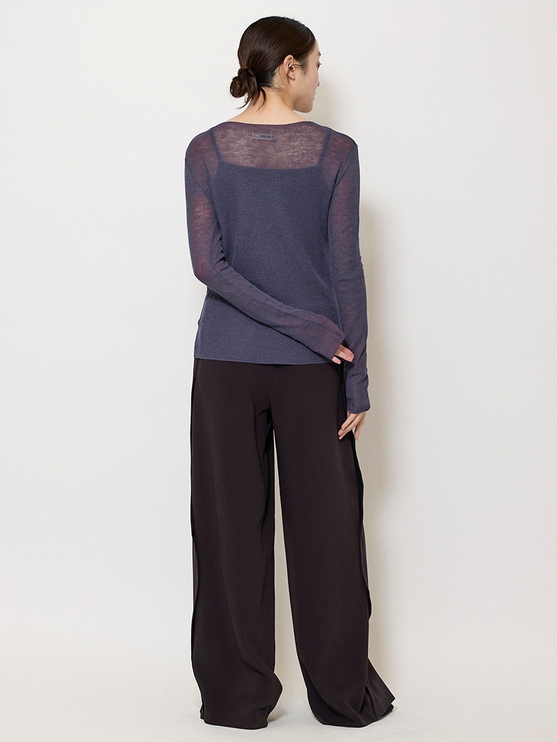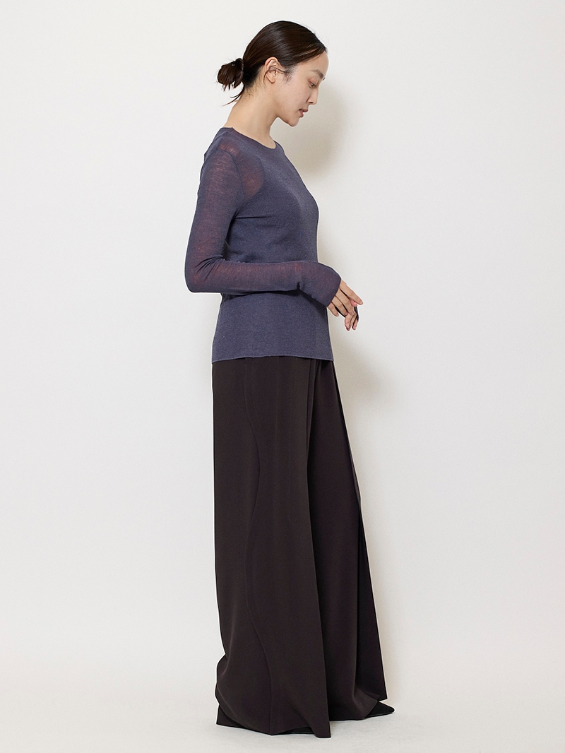 まるで「第二の皮膚」のような、着心地にこだわったシアーニットプルオーバー。ほのかにシャリ味のあるさらっとした肌触りながら、ウール混のふっくらとした弾力もある素材は、ノーストレスで3シーズン着用可能。マダム ミラ・ショーン自筆のサインをトレースした、胸元のロゴ刺繍がポイントに。