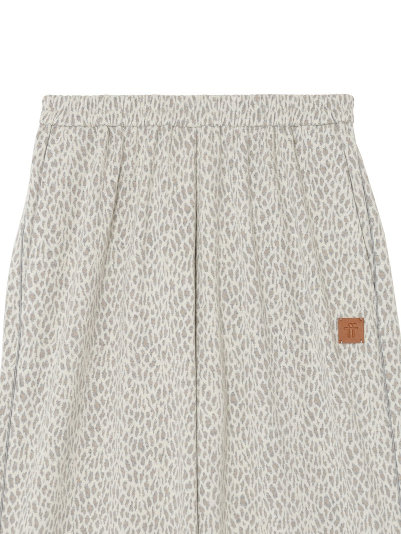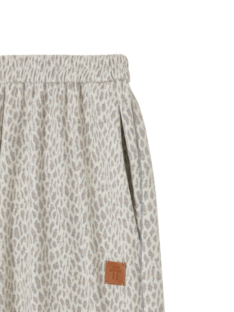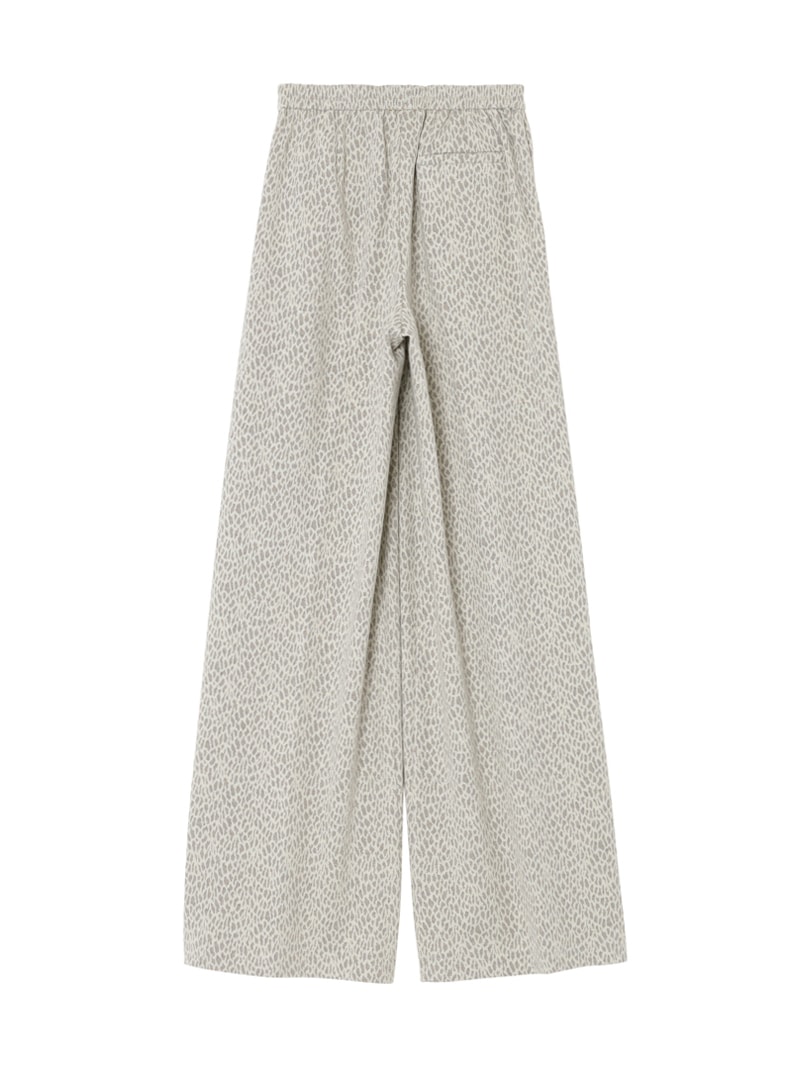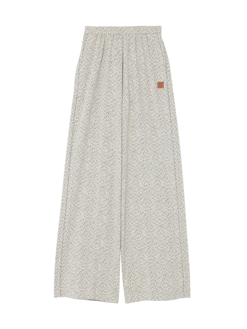 淡いオセロット柄がさりげないアクセントをプラスするイージーワイドパンツ。温かみのある素材感とワイドなシルエットで、大人のリラクシースタイルを演出します。左腰にブランドアイコンの刻印パッチをあしらっています。ウエストはストレスフリーなゴム仕様。