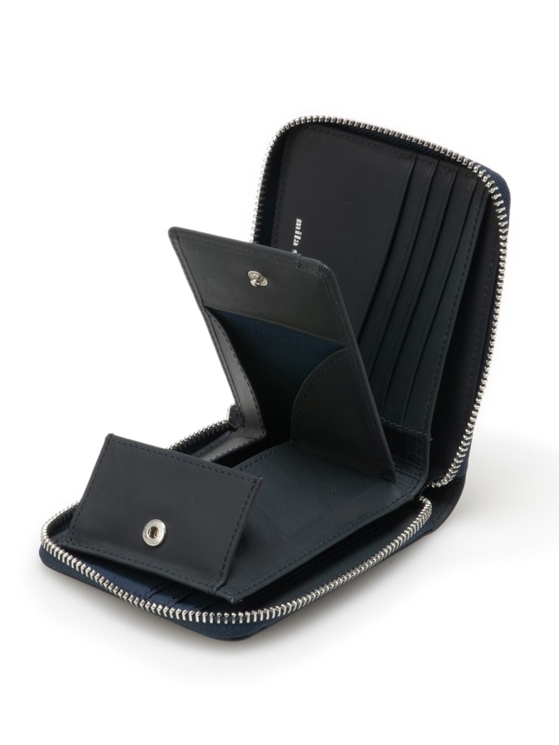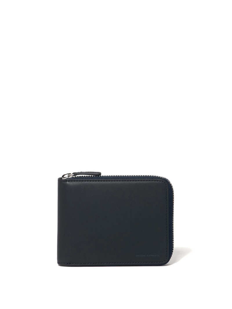 厳選された良質なカーフレザーを使用したラウンドファスナータイプの二つ折り財布です。カーフレザー特有の滑らかな肌触りが特徴的で、内装革の一部にはオリジナルのチェック柄エンボス加工を施しました。小銭入れは便利なBOX型を採用。カードポケットも豊富で機能性に優れています。コンパクトで多機能な財布は、ギフトとしてもおすすめです。