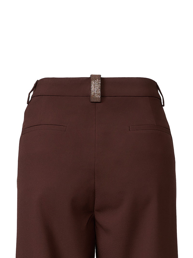 最先端のテクノテーラリング技術によって仕立てられたバレルフィットトラウザーパンツ。センタープレスされた立体的なシルエットと、しなやかで上質な素材が調和し、ラグジュアリーな存在感を放ちます。背面のベルトループに散りばめられたビーズの輝きが、バックスタイルのワンポイントに。洗練されたモダンなデザインは、フォーマルシーンからデイリースタイルにも幅広く活躍します。