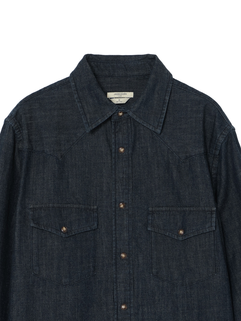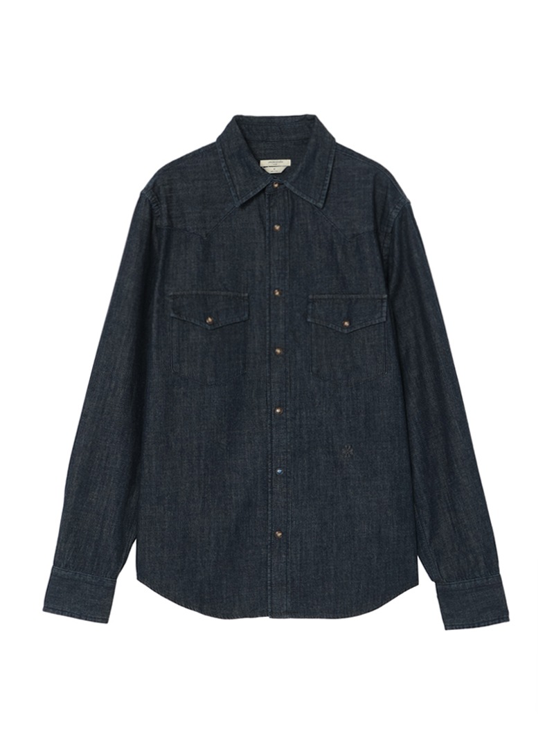 7.5オンスのライトオンスデニムを使用した、ブランド定番のウエスタンシャツ。ウエストには同色でブランドアイコンのエンブロイダリーを施した一着。