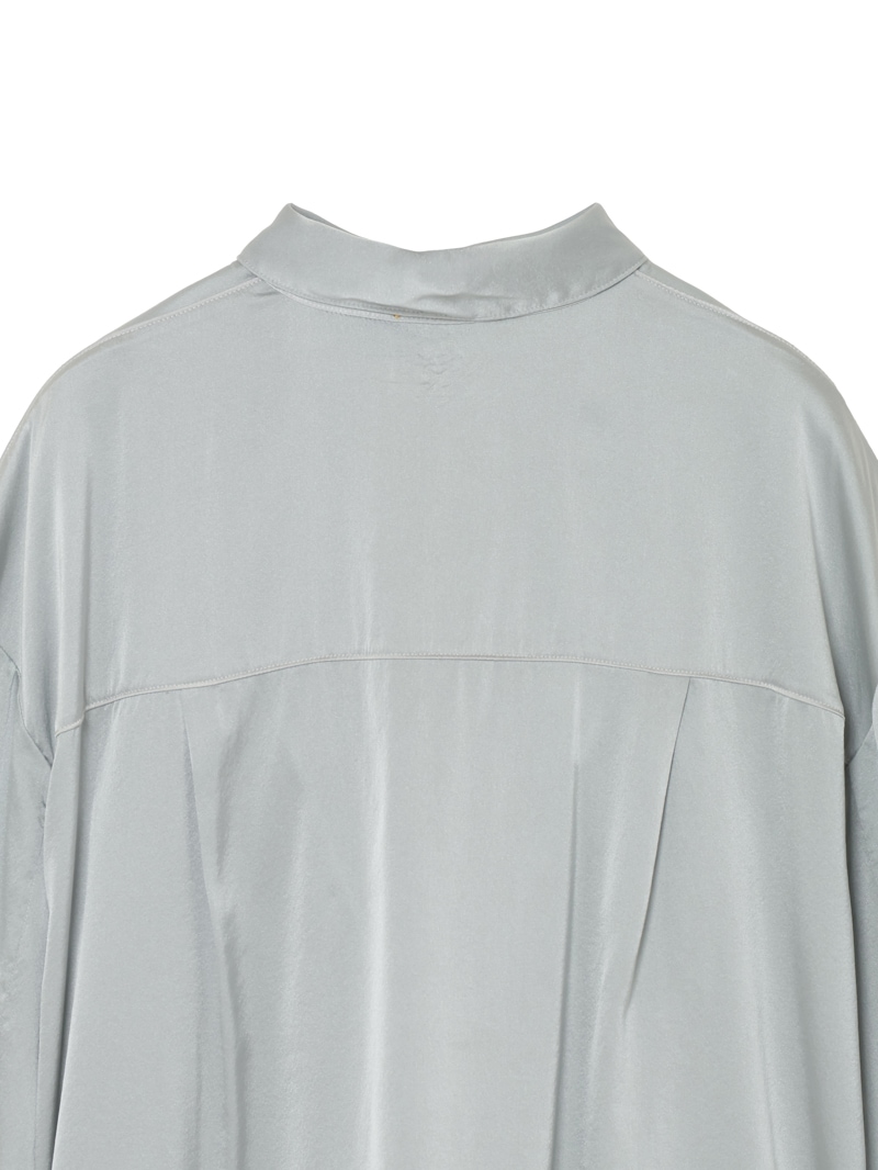 つややかな光沢を放つストレッチシルクサテンのシャツ。クロップド丈とストレートなシルエットが現代的で洗練された印象を与えつつ、リラックス感と女性らしさを両立させています。ミニマルなデザインながら、大きなパッチポケットやギャザー入りのカフが程よいアクセントに。オンにもオフにも活躍する一枚です。
