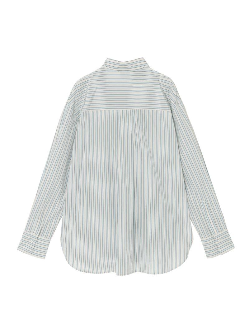 リラックス感のあるオーバーサイズシルエットと、マニッシュなデザインが特徴のタフタシャツ。爽やかなストライプ柄と上質なタフタ素材が、洗練された大人の着こなしを叶えます。カーブした後ろ下がりのヘムラインや、少し大きめの襟がさりげなく個性をプラスし、定番のストライプシャツに新鮮な魅力を与えています。