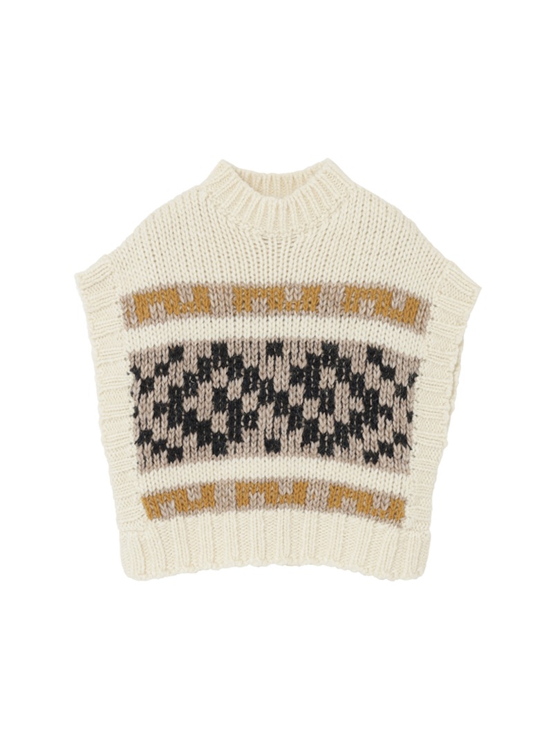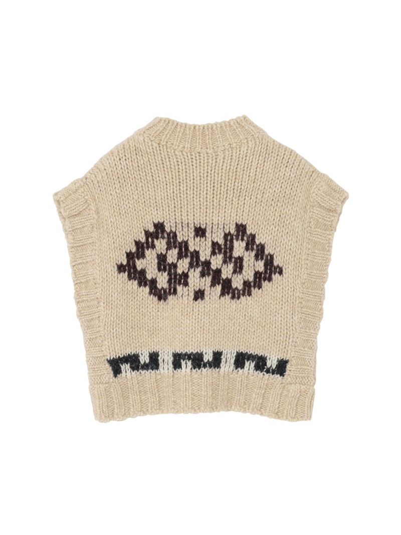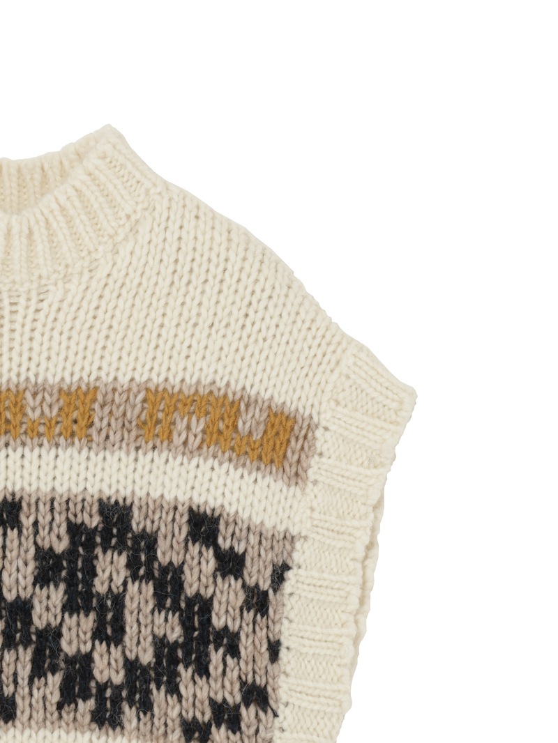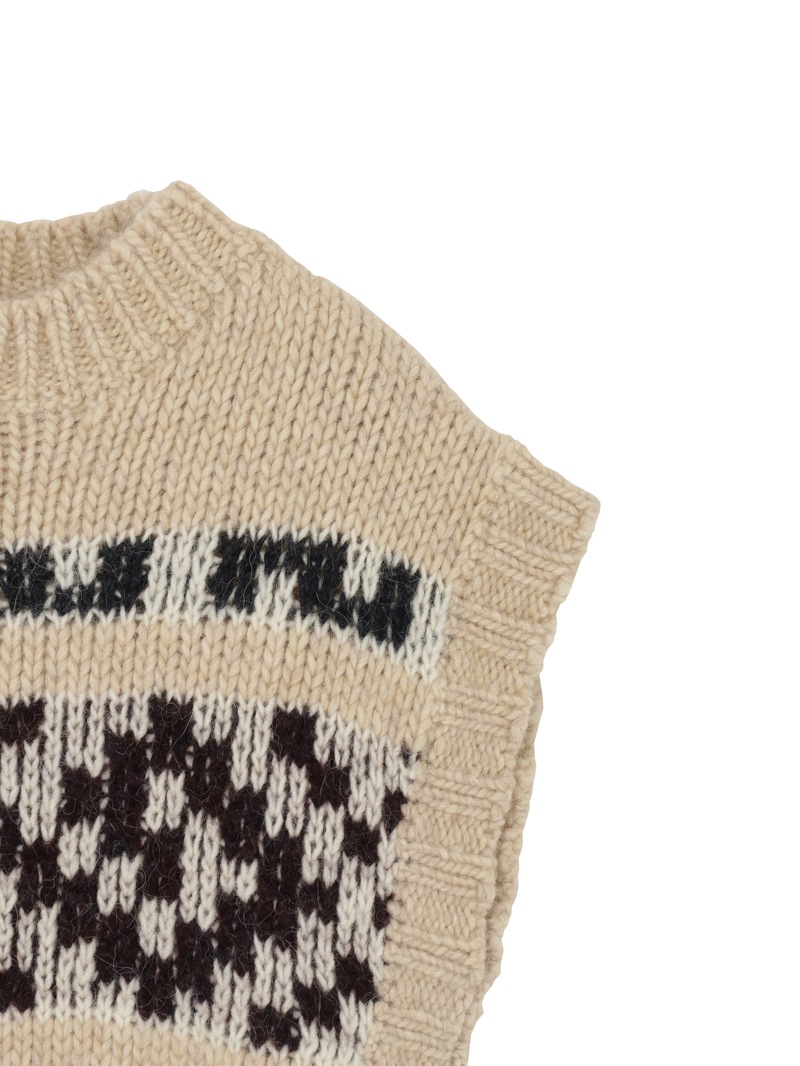 クロップド丈のウール混ニットベスト。古代ギリシャのクラシックな文様を想起させる、“attica”パターンをジャガードで表現しています。シンプルな装いにアクセントを加えてくれる、温かでノスタルジックなアイテムです。