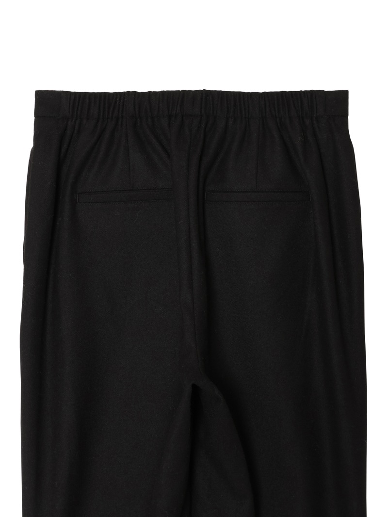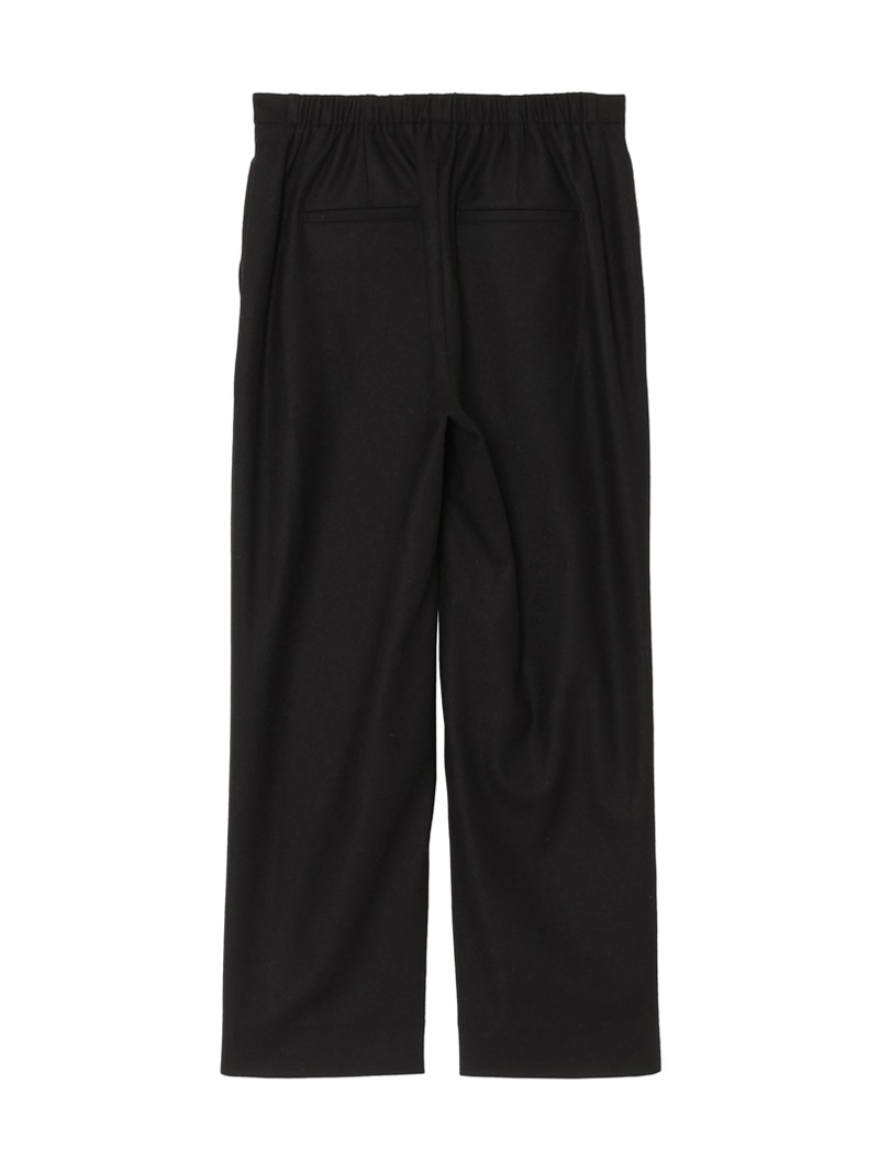 リラックス感と上品さを兼ね備えたミッドライズプルオンパンツ。ウエストゴム仕様でストレスフリーな穿き心地ながらも、美しいシルエットをキープします。程よい伸縮性と落ち感のある生地で、デイリーからオフィスカジュアルまで幅広く活躍する一枚です。