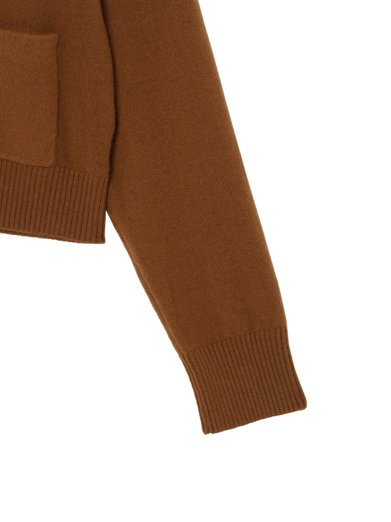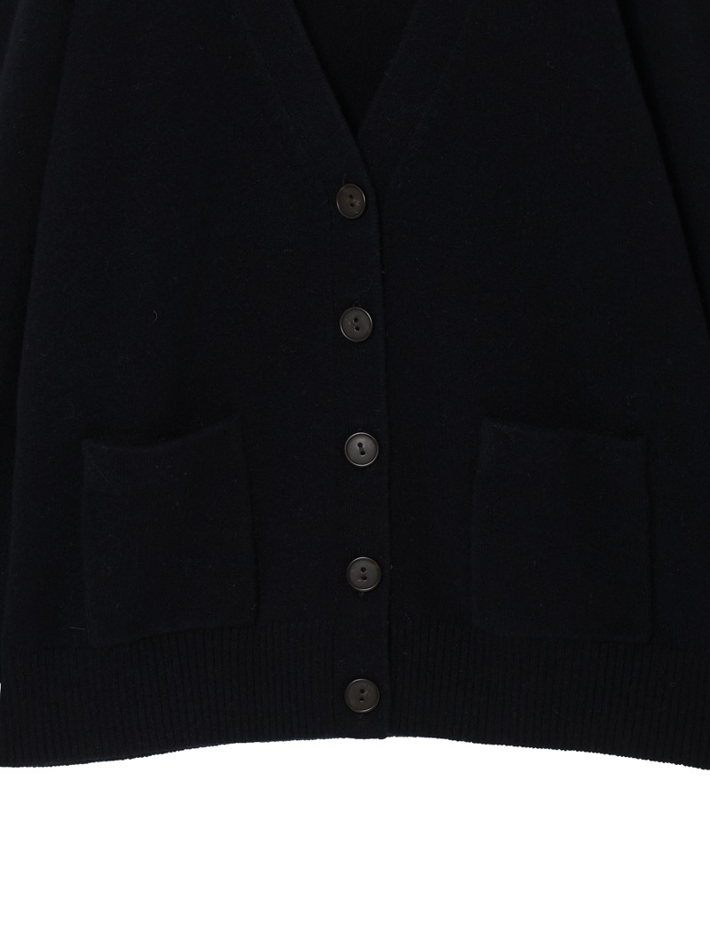 上質なカシミヤウール素材のポケット付きVネックカーディガン。すっきりとしたシルエットにフロントポケットがさり気ないアクセントを添え、シンプルながらも洗練された印象に。やや深めのVネックがレイヤードを引き立て、シャツやカットソーとの相性も抜群。ワイドなデニムパンツを合わせて都会的な大人カジュアルスタイルに。