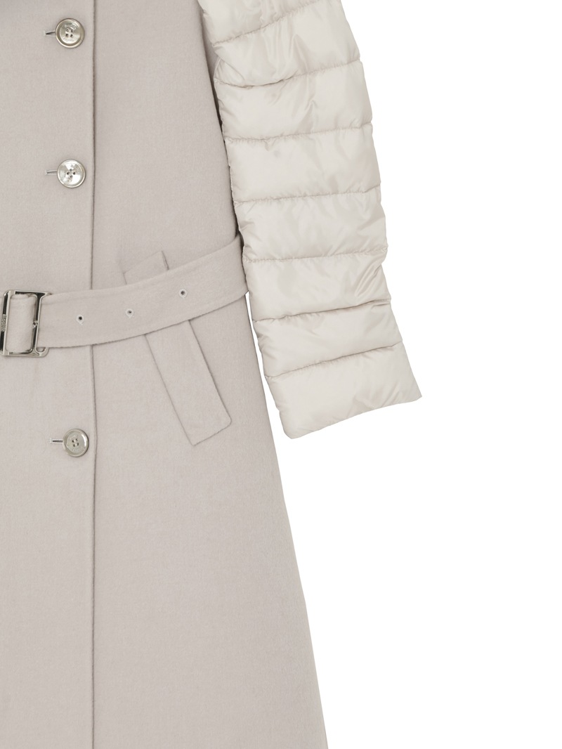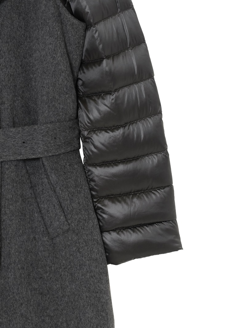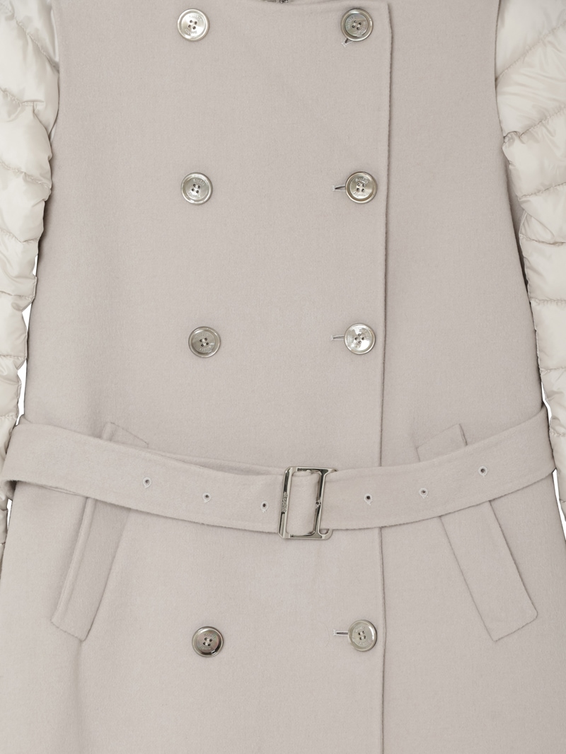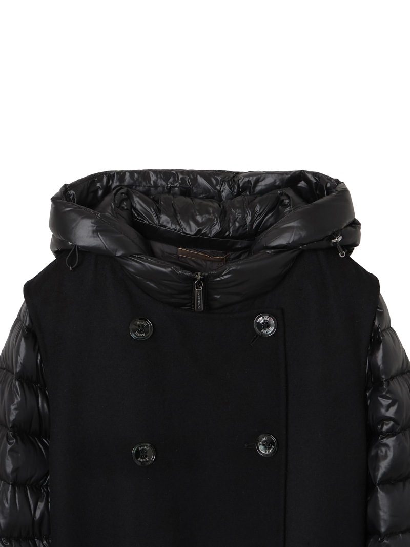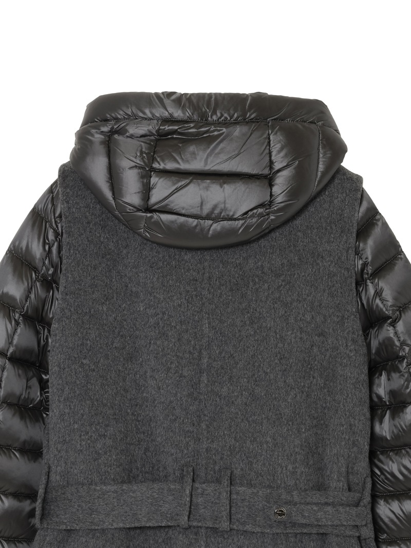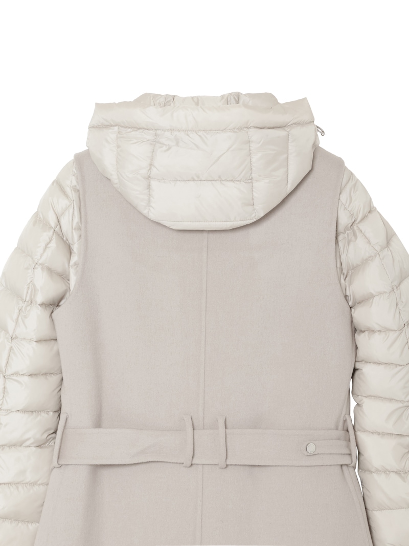 ウールカシミア製のジレと、グースダウンのジャケットを組み合わせたロングコート。それぞれ単体でも、レイヤードしても着用できる3wayアイテムです。