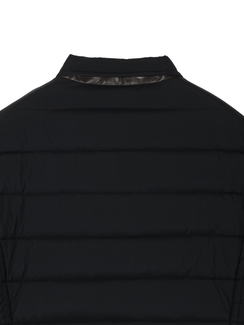 ノッチドラペルのクラシカルな襟と、キルティングを施したジャケットスタイル。背裏にはウールカシミヤのフランネル素材を使用。フロントはダブルスライダーファスナーとボタンで開閉。フラップ付きのサイドポケット、胸ポケットと内ポケットを備えています。