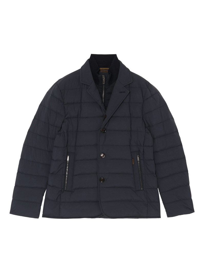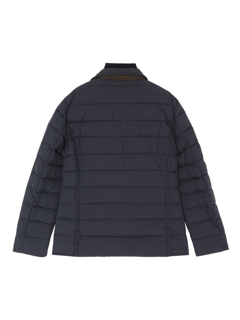 耐水効果を備えたAcquaライン(耐水レベル2)の、スポーティーなグースダウンジャケット。撥水加工、毛羽が出にくいダウンプルーフ加工を施した、超軽量・高密度なテクニカルファブリックを使用しています。やわらかなシルクウール混リブニットの内襟は、ファスナー付きの前立てがドッキングしたライナー仕様で、取り外しが可能です。