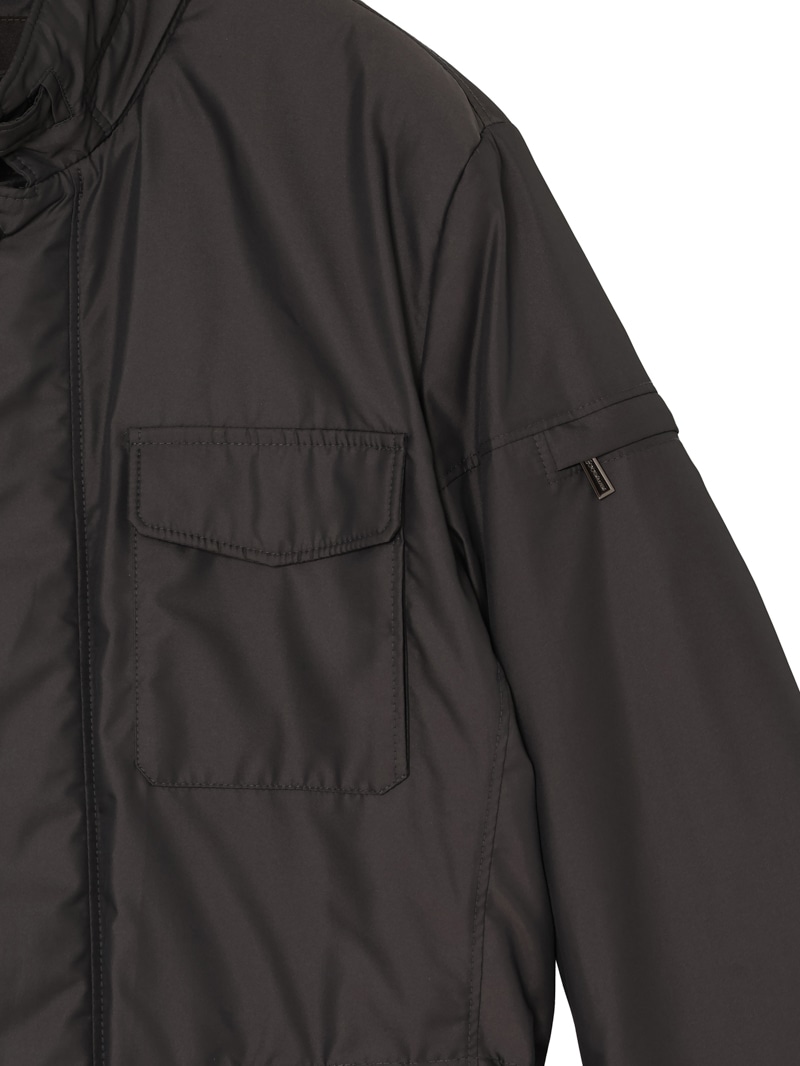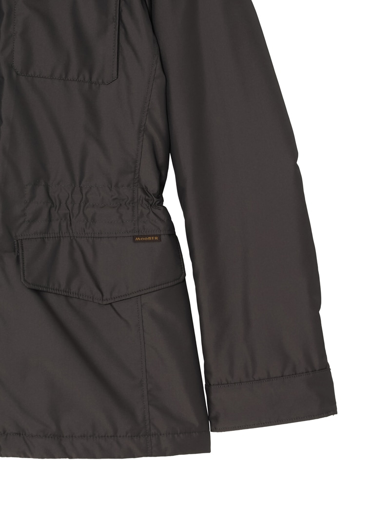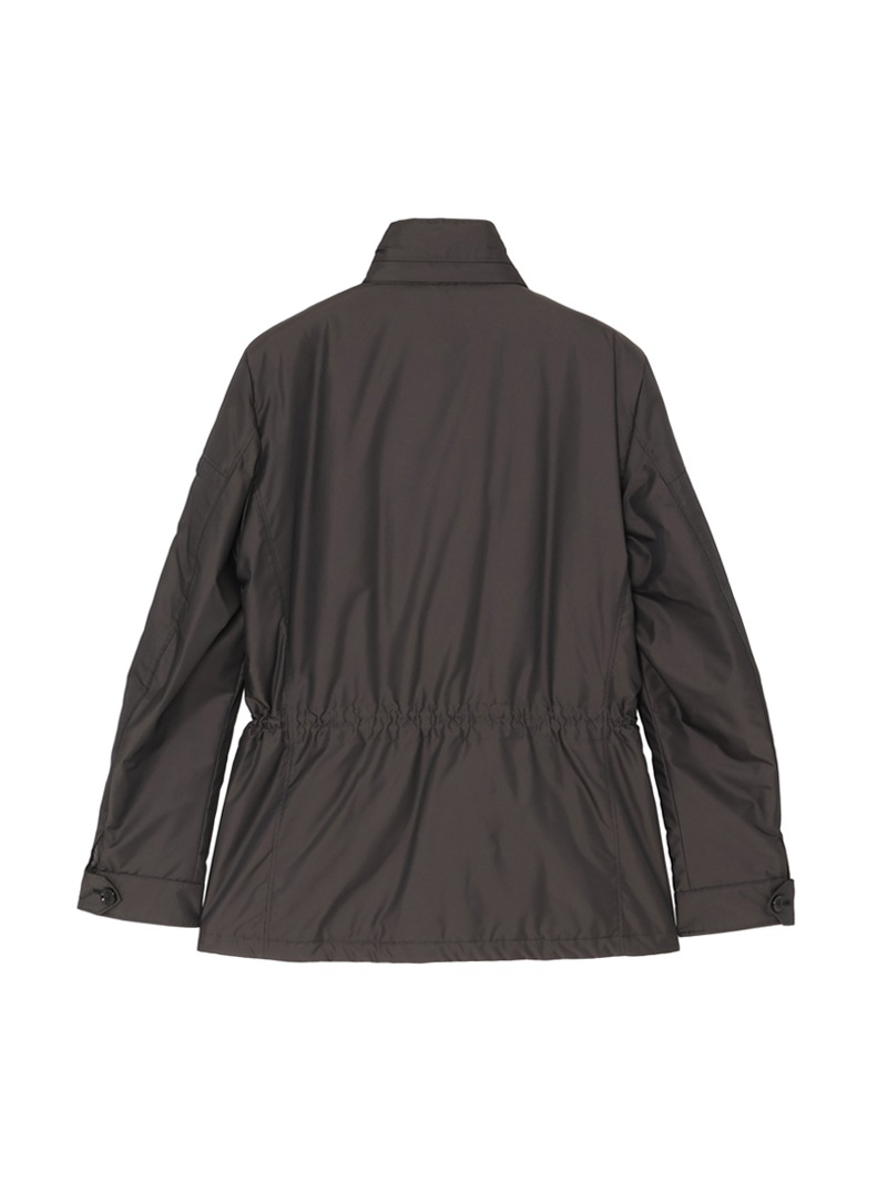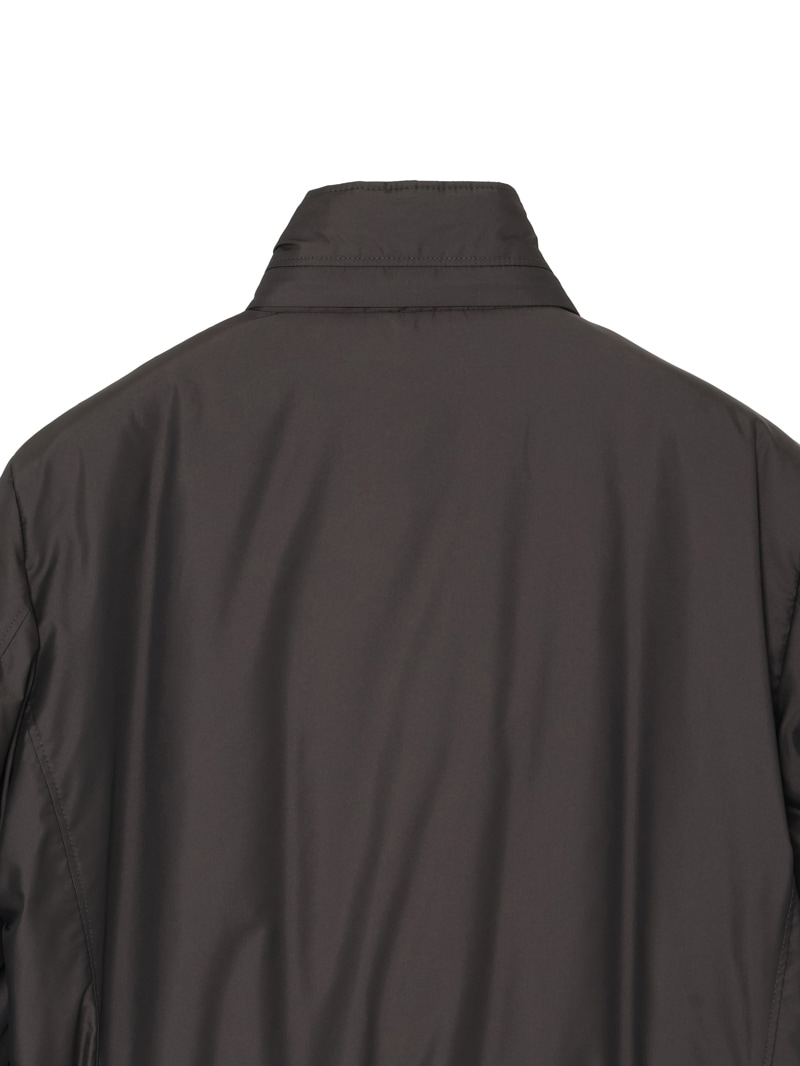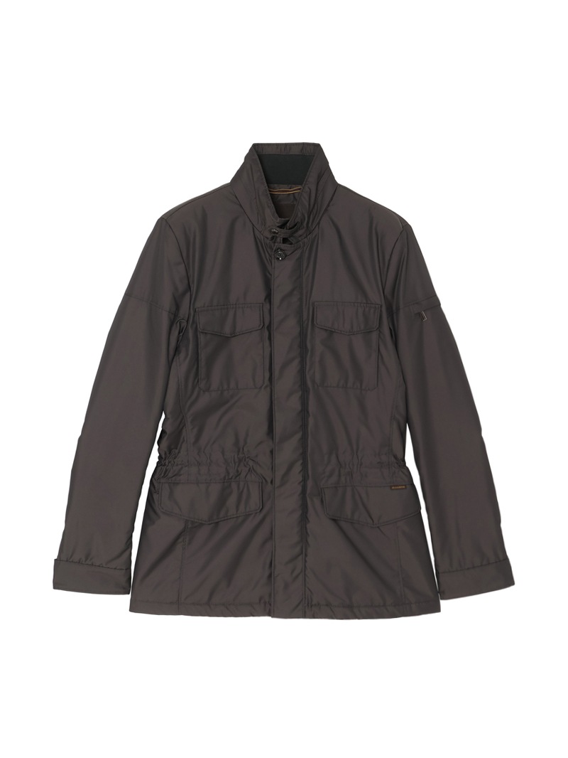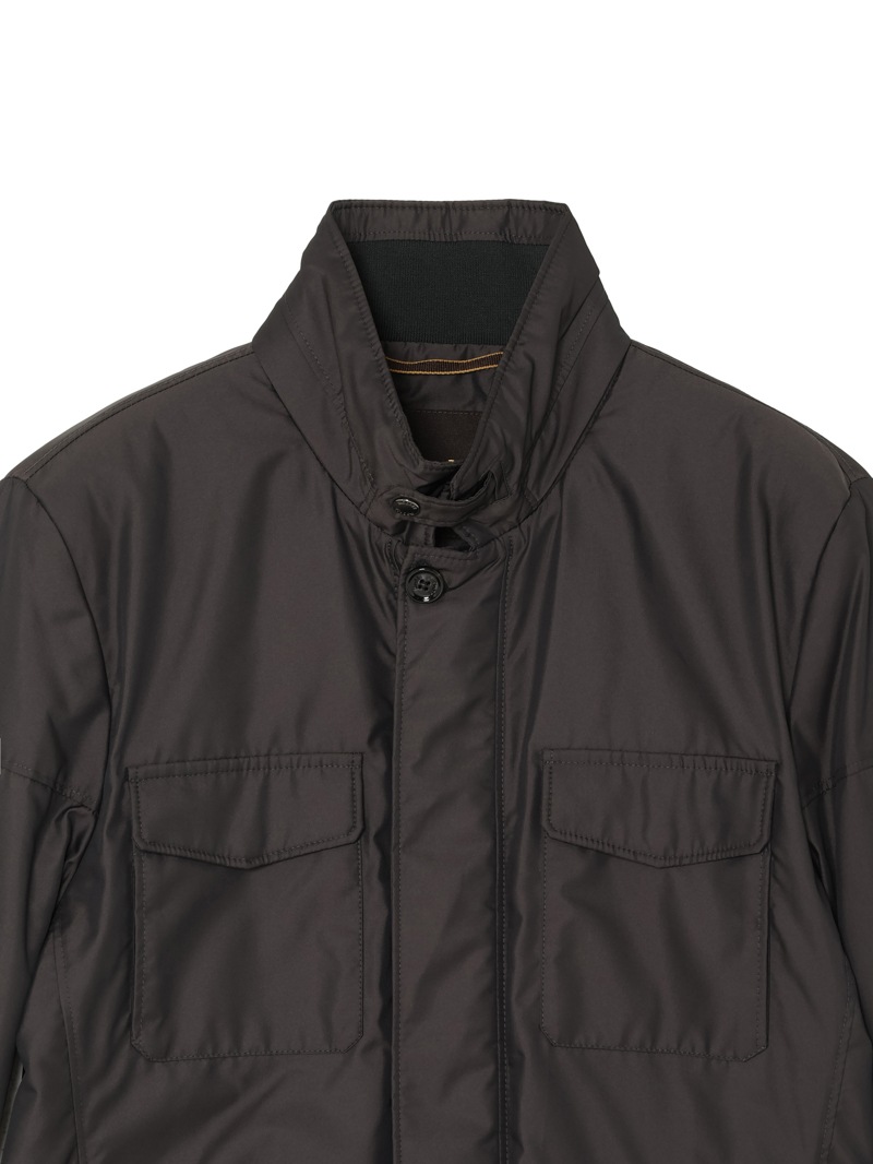 撥水効果を備えたAcquaライン(耐水レベル1)の中綿サファリジャケット。軽い樹脂加工を施し適度な撥水性を与えた、ツヤのある形状記憶ファブリックを使用。裏地はスクエアキルティングで仕上げています。中綿には炭素素材“グラフェン”をブレンドした機能性インサレーションを採用。高い熱伝導性により体温を均一に分散し、ムラの少ない暖かさを実現する革新的な素材です。