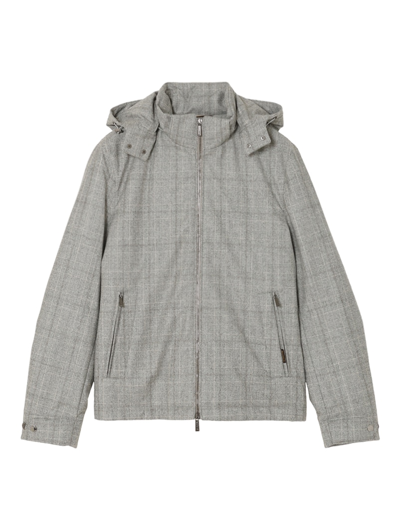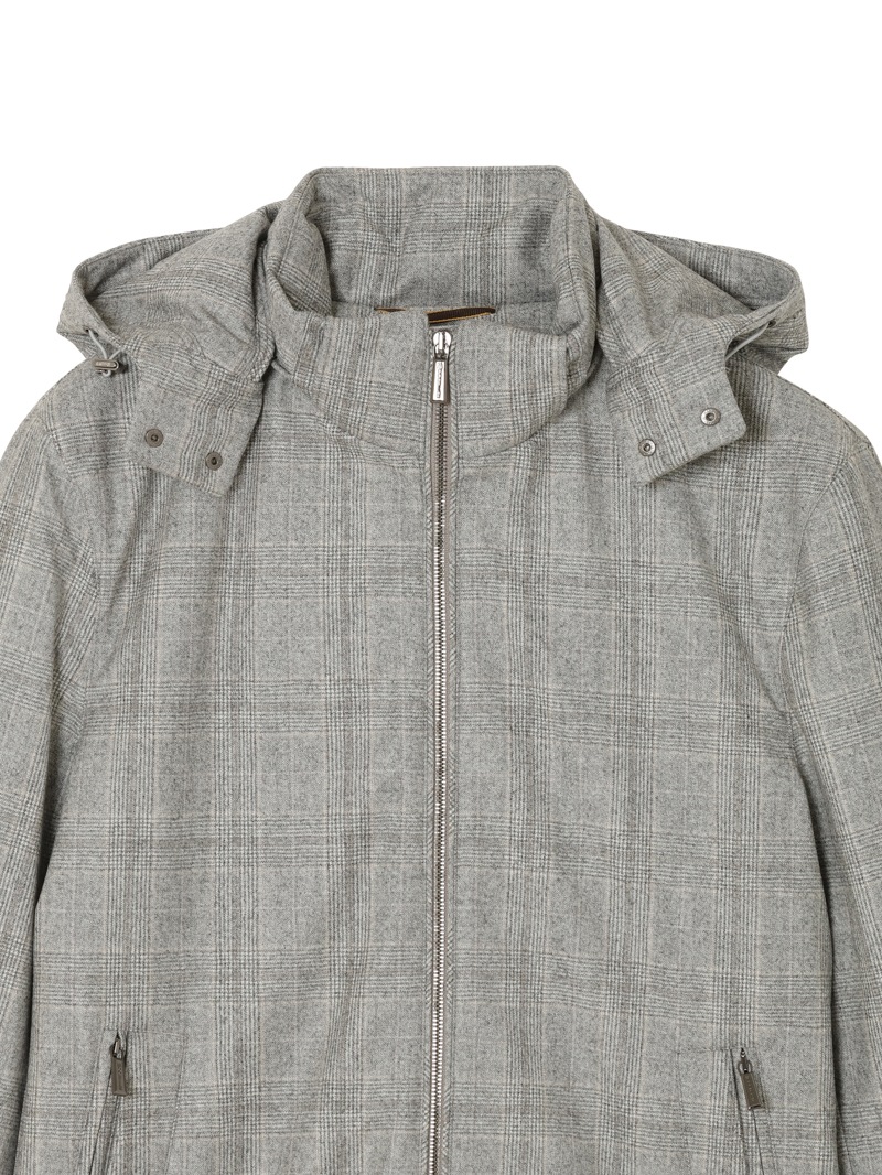 耐水効果を備えたAcquaライン(耐水レベル2)のグースダウンジャケット。ダウン見えしないライトな見た目と着心地が特徴の“ALBINI”を、チェック柄のSuper100's ウールサキソニー素材で仕上げた特別なアイテム。ビジネススーツやフォーマルウェアに使われるSuper100'sは、極細番手のメリノウール糸を使用した、柔らかくしなやかで上品なツヤのある高品質ファブリックです。自然なストレッチ性があり、体の動きにフィットしたシルエットを実現します。