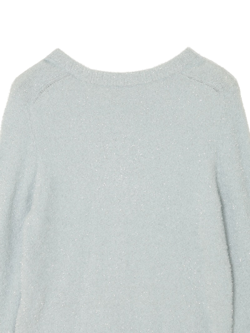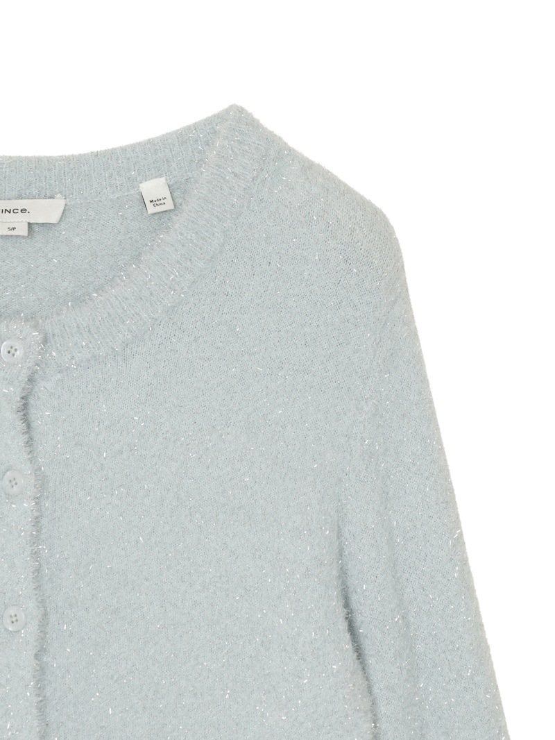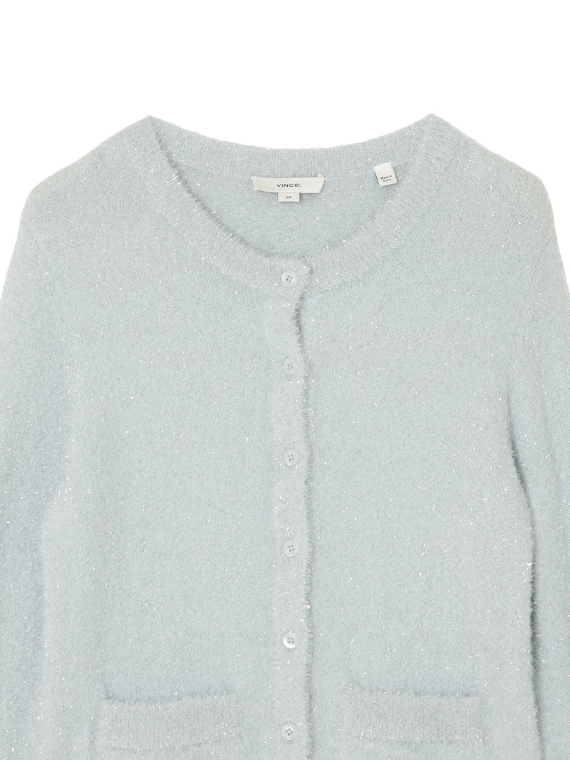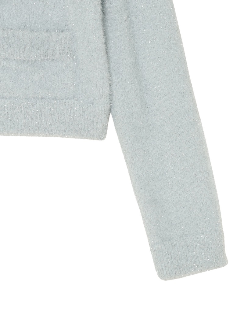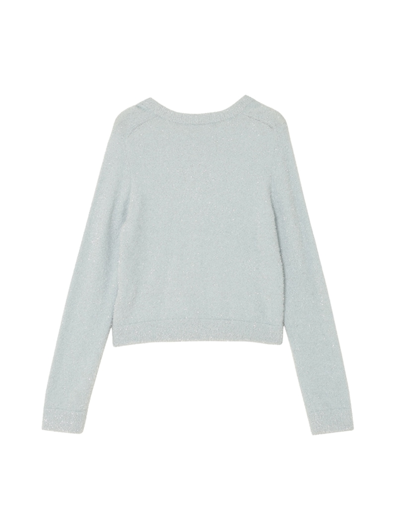 繊細なラメの輝きと、ふわふわとした毛足感が魅力のアイラッシュニットカーディガン。コンパクトな着丈とクルーネックのデザインは、ボタンを留めてプルオーバーのように着こなすのがおすすめ。デニム合わせでデイリーに、サテンスカート合わせでディナーにと、様々なシーンで装いをドラマティックに彩る一着です。