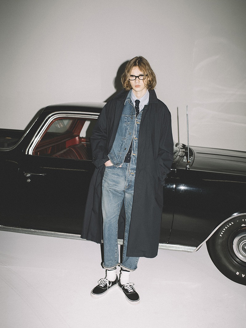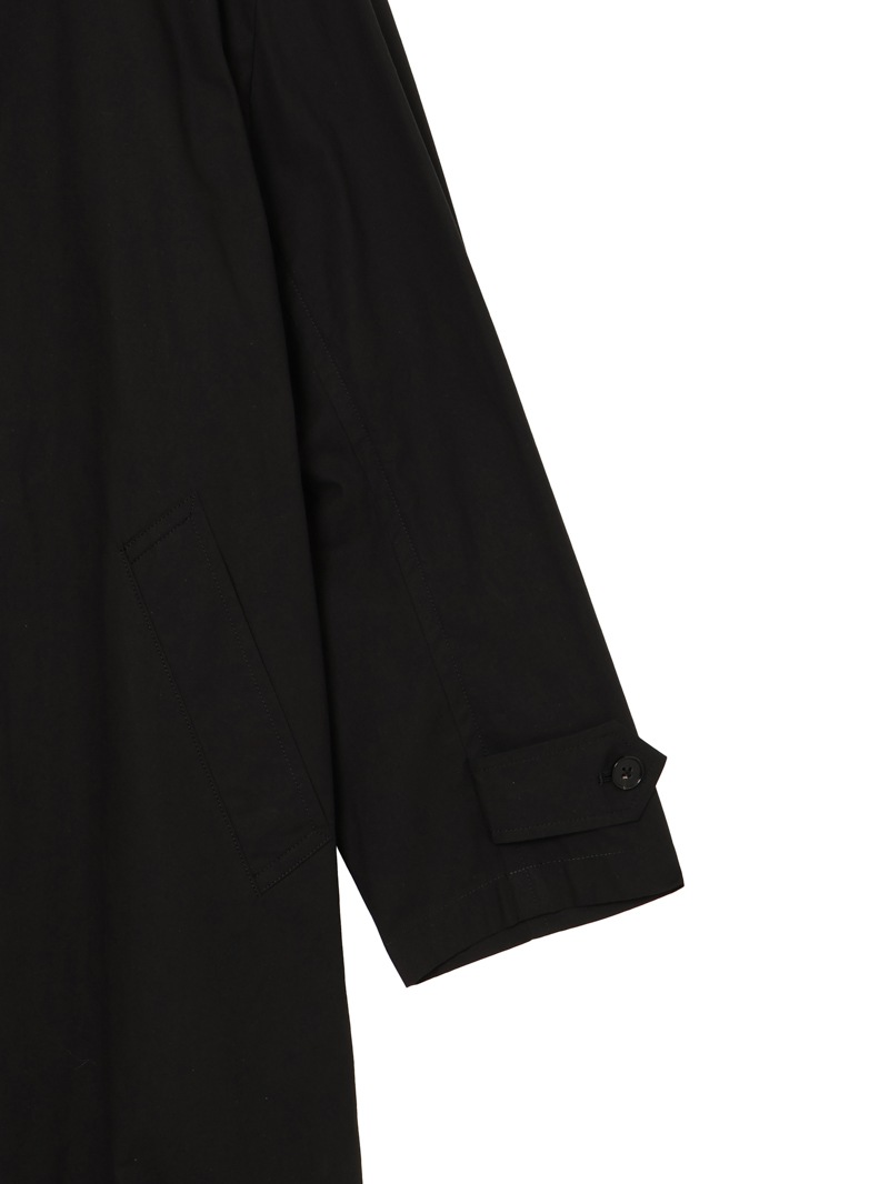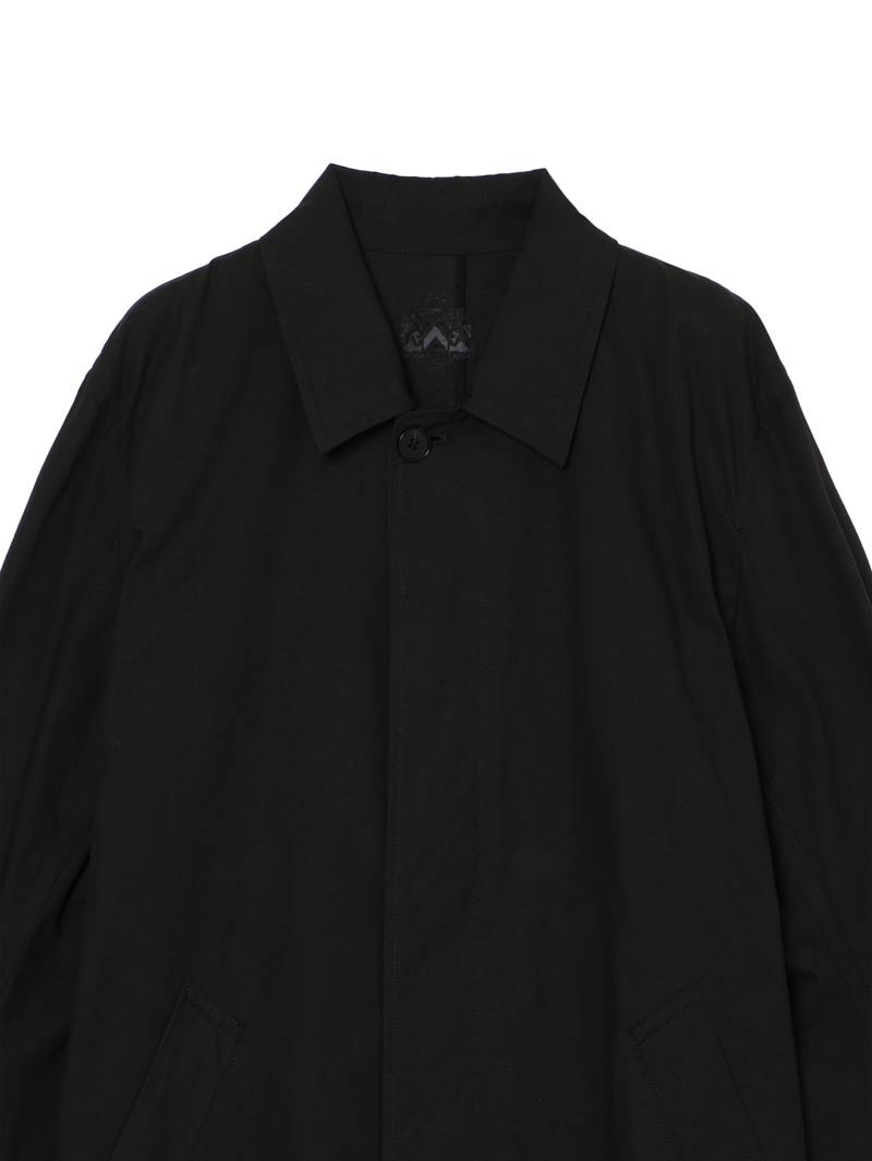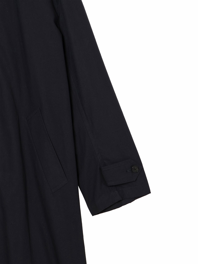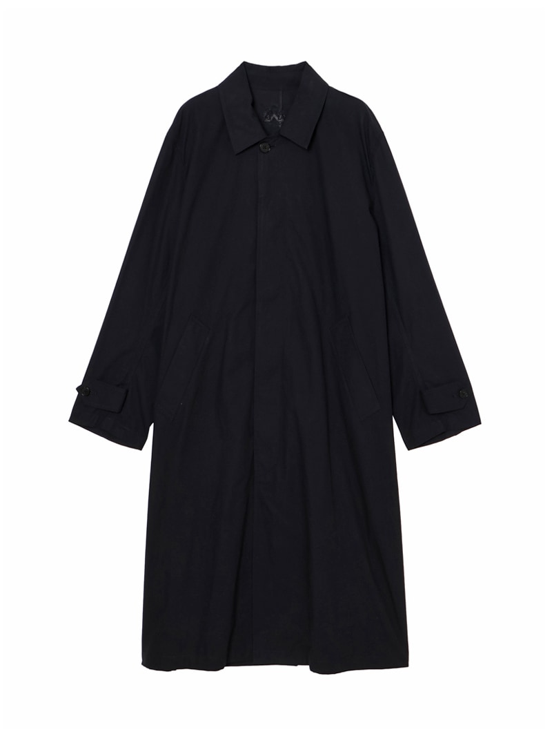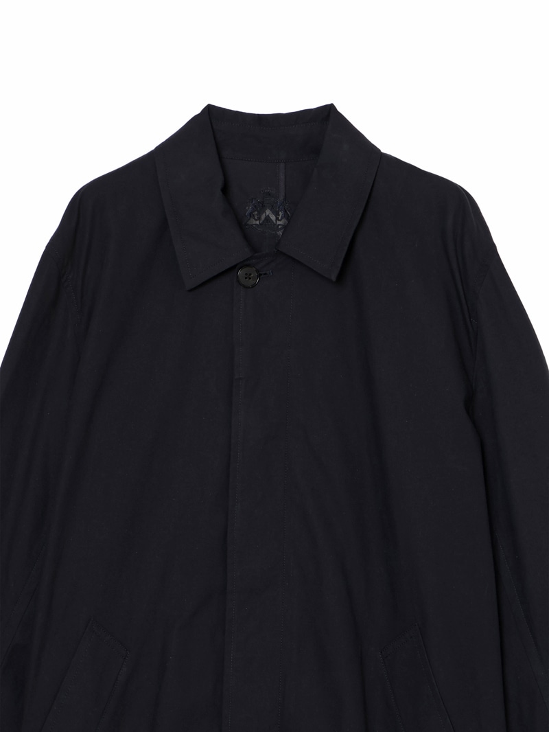 高密度アンティークウェザークロスを使用。元々軍用の耐水服用に開発された生地で撥水性が強いのが特徴。着丈長めのステンカラーコート。