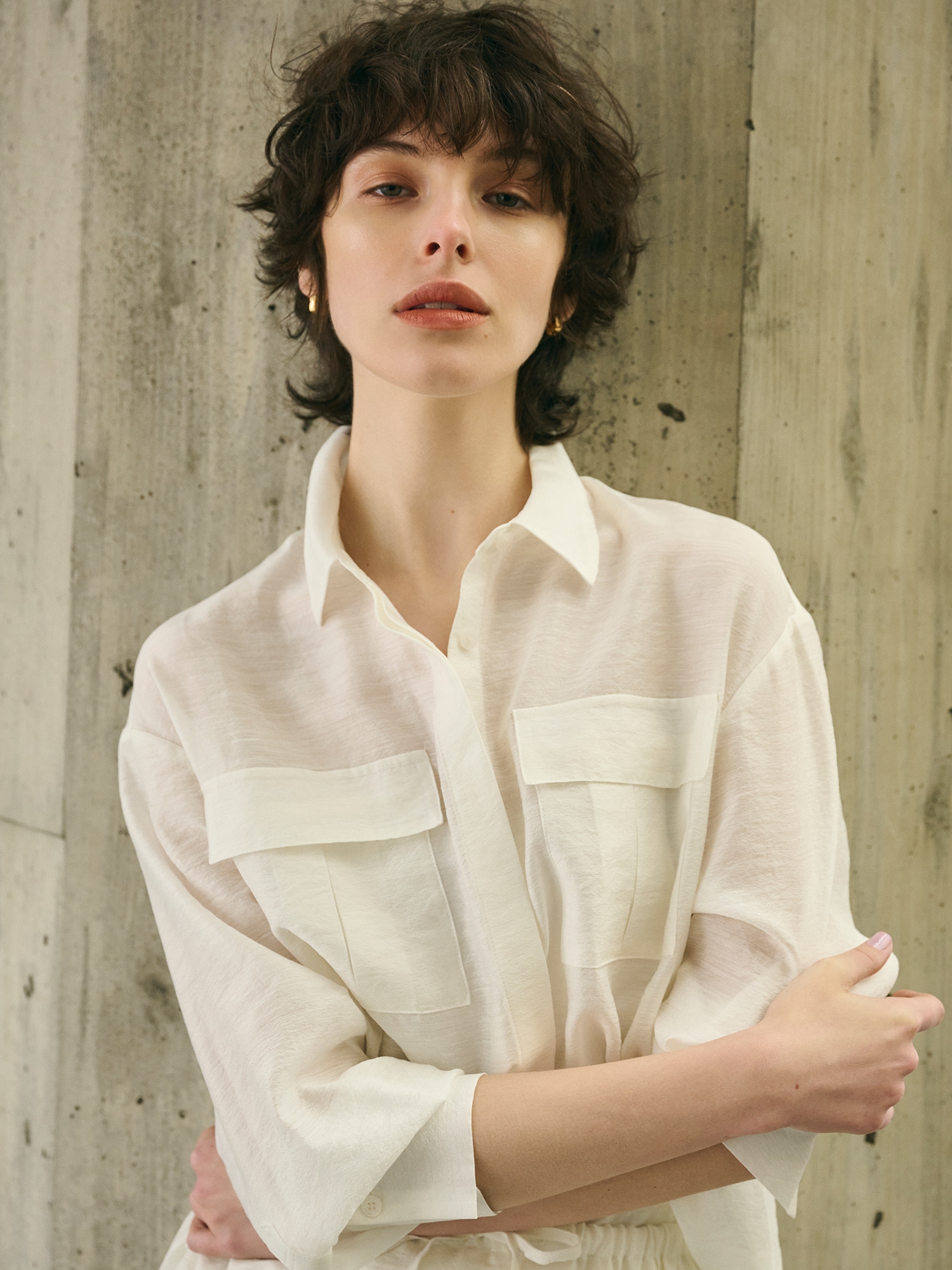 BLOUSE : シアーリネンミックスブラウス¥50,600