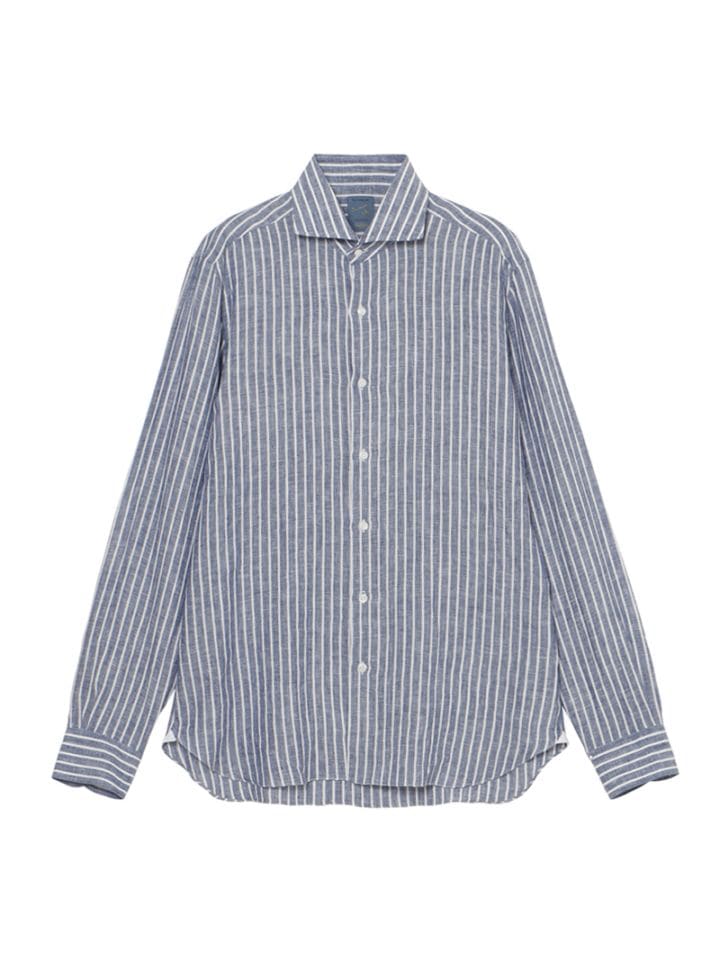 DANDY LIFE リネンストライプ セミワイドカラーシャツ