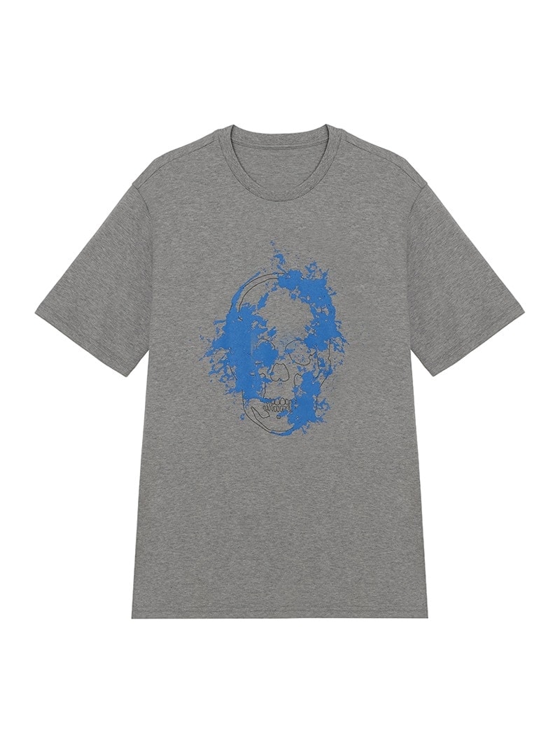 メンズ 半袖Tシャツ ブルー ペイント スカル